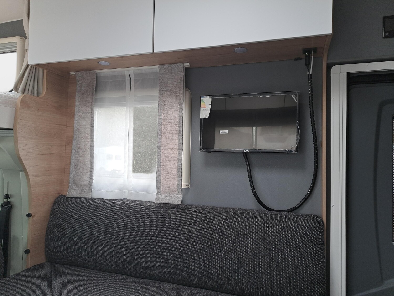AusstattungFahrzeugABS Notbrems-Assistent Einparkhilfe ESP Multifunktionslenkrad Navigationssystem Radio DAB-Radio Russpartikelfilter Servolenkung Tempomat InnenBackofen Isofix Lederlenkrad WC Doppelbett Alkhovenbett Separate Dusche Rundsitzgruppe AussenGFK Markise ExtrasSAT-Antenne TV Beschreibung