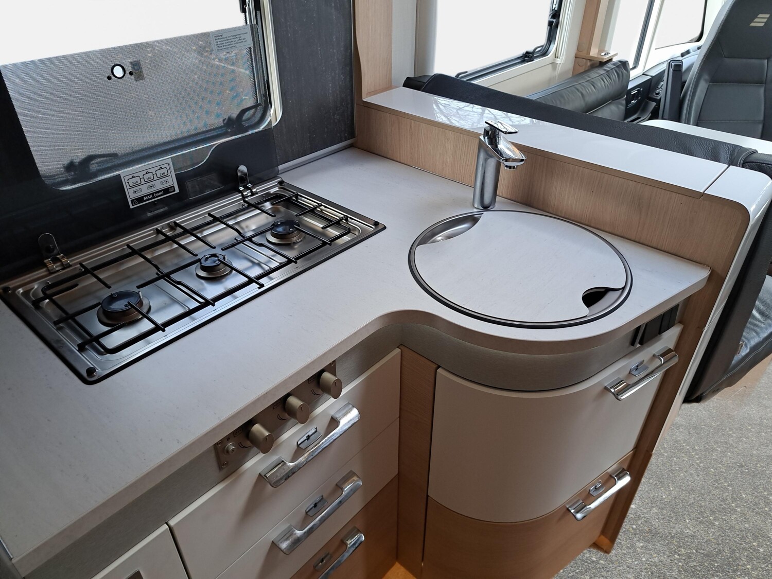 AusstattungFahrzeugABS Abstand-Assistent Fernlicht-Assistent Notbrems-Assistent Einparkhilfe ESP Lichtsensor Multifunktionslenkrad Navigationssystem Radio DAB-Radio Regensensor Russpartikelfilter Servolenkung Tempomat Zentralverriegelung InnenBackofen Doppelboden Isofix Leder Lederlenkrad Rollrost Sitzheizung WC Doppelbett Einzelbetten Hubbett Separate Dusche Seitensitzgruppe AussenAutark Fahrradtraeger GFK Heckgarage Markise Solaranlage ExtrasSAT-Antenne TV Beschreibung