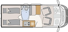 - Komfort Paket (600 ER) (Rahmenfenster, Fenster mit Fliegenschutz und Verdunklungsrollo im Heck links, Markise 3,75 m (600), Innovativer Auszug unter dem Heckbett, Teppich auf Podest (gekettelt, lose verlegt), Vorzeltleuchte, Drehplatte für Tischerweiterung)