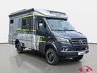 - CrossOver Edition (Mercedes-Benz Sprinter 4,1 t - 419 CDI - 140 KW/190 PS - Euro VI-E, Außenfarbe Fahrerhaus Tenoritgrau (Metallic), Außenfarbe Aufbau Crystal-Silver-Metallic, Allradantrieb (permanent) mit Torque-on-Demand, Automatikgetriebe 9G-TRONIC inkl. Hold-Funktion (x19 CDI), Kühlergrill Chrom, LED-High-Performance-Scheinwerfer, Nebelscheinwerfer mit Abbiegelicht, Stoßfänger, Anbauteile und Kühlergrillrahmen in Wagenfarbe lackiert, Windschutzscheibe beheizbar, 16" Stahlfelgen (schwarz) mit Stollenbereifung (All-Terrain), 16 Stahl Reserverad inkl. Stollenbereifung (All-Terrain) und Halterung außen an der Heckwand, Ablage für Smartphones inkl. wireless charging Funktion und Ladestandsanzeige, Ladepaket Instrumententafel mit 2 x USB-C Stecker 5V / 1x 12V-Steckdose, Navigation & Smartphone-Integration für MBUX-System, Lederlenkrad (bei Automatikgetriebe), vollautomatische Klimaanlage THERMOTRONIC, aktiver Abstands-Assistent DISTRONIC PLUS inkl. LenkradMultifunktionstasten, Fernlicht-Assistent, Verkehrszeichen-Assistent, Markise (schwarz) inkl. dimmbarer LED-Beleuchtung, 400 x 250 cm, Dachreling mit Heckleiter ohne geriffelter AluminiumDachplatte, 44" LED-Lightbar über dem Fahrerhaus, Motor-/Unterfahrschutz, Radlaufverbreiterung vorne, Designbeklebung Crossover, Komfort-Eingangstür mit Fenster, Verdunkelungsrollo, integriertem Mülleimer und 2-fach Verriegelung, Riffelblechboden und Filzverkleidung in Heckgarage, Außendusche in der Garage, Werkzeug-Set (Klappspaten, Axt) im Heckstauraum, Komfort L-Sitzgruppe mit Loungepolstern, längs-/quer verschiebbarem Tisch und 2 integrierten 3-Punkt-Gurten, Bettenbau für Komfort L-Sitzgruppe inkl. Zusatzpolster und absenkbarem Tisch unter Einbeziehung des Fahrersitzes, Schlafkomfortsystem mit Tellerfederrost und MehrzonenKaltschaummatratze(n) für Heckbett(en), Spannbettlaken nach Maß für Heckbetten individuell an Matratzen angepasst, Zusatzpolster zwischen den Längseinzelbetten mit Aufstiegsleiter, 4 Kissen mit Bezug, zweite Toilettenkassette inkl. Halterung in Außenstauraum, Ambiente-Beleuchtung, Lichtpaket (Multifunktionale Pendelleuchte sowie eine Ambiente-Leseleuchte für die Multifunktionswände), 6 kW Diesel-Warmluftheizung mit 10l Warmwasserboiler, Lutdrucksensor (Höhenkit) und 1.800 Watt Elektroheizstab, HYMER-Smart-Battery-System 2.0 - Zusätzlich 3 x 80 Ah LFP (Gesamtleistung 320 Ah), Solaranlage 2 x 95 Watt mit Solarladeregler (MPPT) und Anzeige, Wechselrichter 12 V auf 230 V, 1800 Watt mit Netzvorrangschaltung, 3 x 230 V / 1 x 12 V Zusatzsteckdosen, Wasserfilter für Frischwassersystem