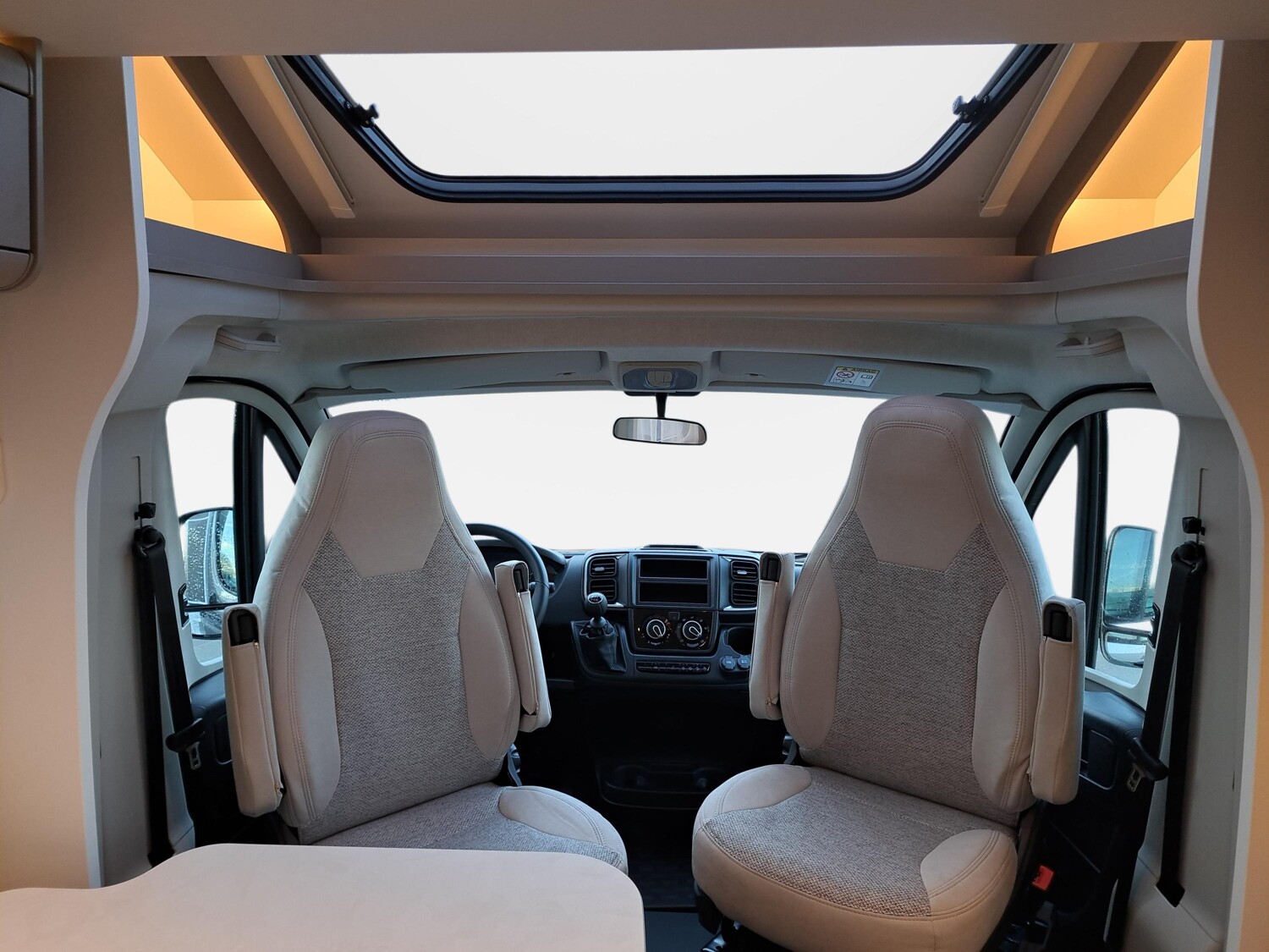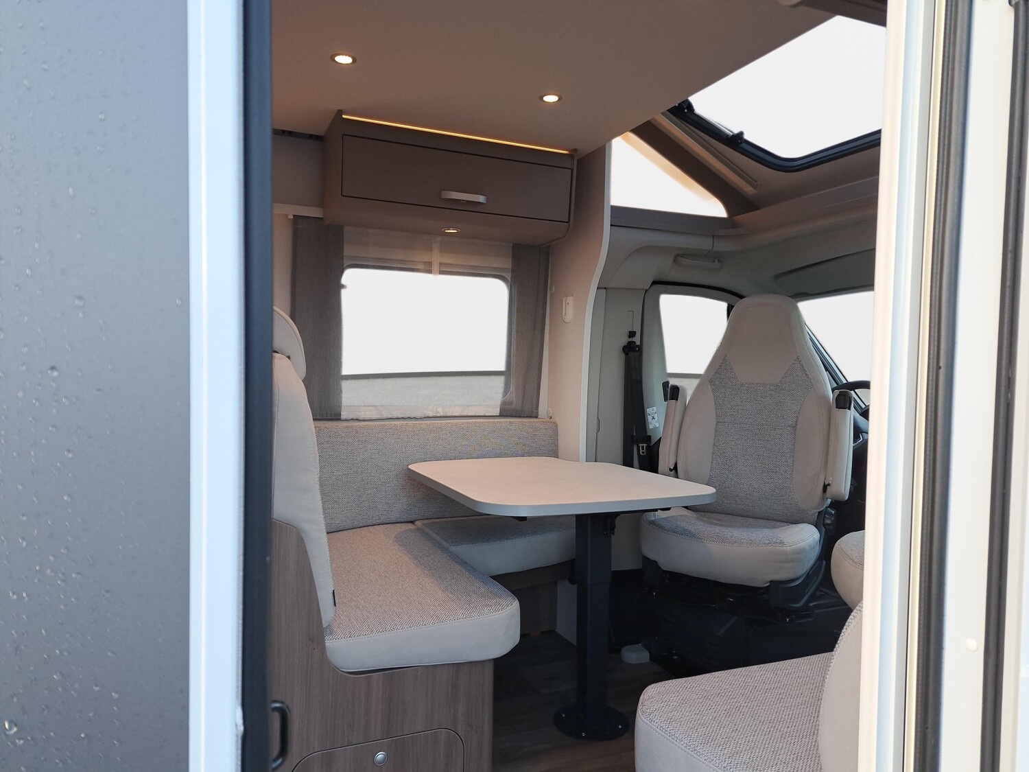 - Pro+ Paket (Optik Paket 1, Optik Paket 2, Chassisfarbe Artense Grau Metallic, Basic Paket, Faltverdunkelung Fahrerhaus, Fenster in Fronthaube, großer Kühlschrank 156 l mit separatem Frosterfach 29 l, Abwassertank isoliert, Markise 4,5 m, Rahmenfenster, Design Applikation Heck, zweite Außenstauraumklappe, Beklebung Pro+)