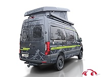 - CrossOver Edition (Mercedes-Benz Sprinter 3,88 t - 419 CDI - 140 KW/190 PS - Euro VI-E, Allradantrieb permanent inkl. Heckleuchten in LED-Technik, Metallic Tenoritgrau, Automatikgetriebe 9G-TRONIC inkl. Hold-Funktion (x19 CDI), Kühlergrill Chrom, LED-High-Performance-Scheinwerfer, Nebelscheinwerfer mit Abbiegelicht, Stoßfänger und Kühlergrillrahmen in Wagenfarbe lackiert, 16" Stahlfelgen (schwarz) mit Stollenbereifung (All-Terrain), Elektrische Schließhilfe Schiebetür rechts, Ablage für Smartphones inkl. wireless charging Funktion und Ladestandsanzeige, Ladepaket Instrumententafel mit 2 x USB-C Stecker 5V / 1x 12V-Steckdose, vollautomatische Klimaanlage THERMOTRONIC, Lederlenkrad (bei Automatikgetriebe), Windschutzscheibe beheizbar, Navigation & Smartphone-Integration für MBUX-System, Park-Paket mit 360° Kamera, aktiver Abstands-Assistent DISTRONIC PLUS inkl. LenkradMultifunktionstasten, Fernlicht-Assistent, Totwinkel-Assistent, Verkehrszeichen-Assistent, Elektrische Offroad-Trittstufe (einklappbar) für mehr Bodenfreiheit, Markise (anthrazit) mit dimmbarer LED-Beleuchtung und Adapter 325 x 250 cm, Motor-/Unterfahrschutz, 44" LED-Lightbar über dem Fahrerhaus, Designbeklebung Crossover, Ambient-Light-System: Mehr-Ebenen Lichtsystem mit dynamischer und individueller Steuerung der Beleuchtung (inkl. Lichttemperatur) sowie stimmungsvoller Sockelbeleuchtung, Spannbettlaken nach Maß für Heckbetten individuell an Matratzen angepasst, Wohnwelt "HOME" (2 Kissen und Stofftasche), Einlegeboden mit Korkoberfläche, zweite Toilettenkassette inkl. Halterung, 2 Klappstühle und Tisch inkl. Befestigung, Werkzeug-Set (Klappspaten, Axt) im Heckstauraum, 6 kW Diesel-Warmluftheizung mit 10l Warmwasserboiler, Lutdrucksensor (Höhenkit) und 1.800 Watt Elektroheizstab, HYMER-Smart-Battery-System 2.0 - Zusätzlich 3 x 80 Ah LFP (Gesamtleistung 320 Ah), Solaranlage 1 x 95 Watt mit Solarladeregler (MPPT) und Anzeige, Wasserfilter für Frischwassersystem)