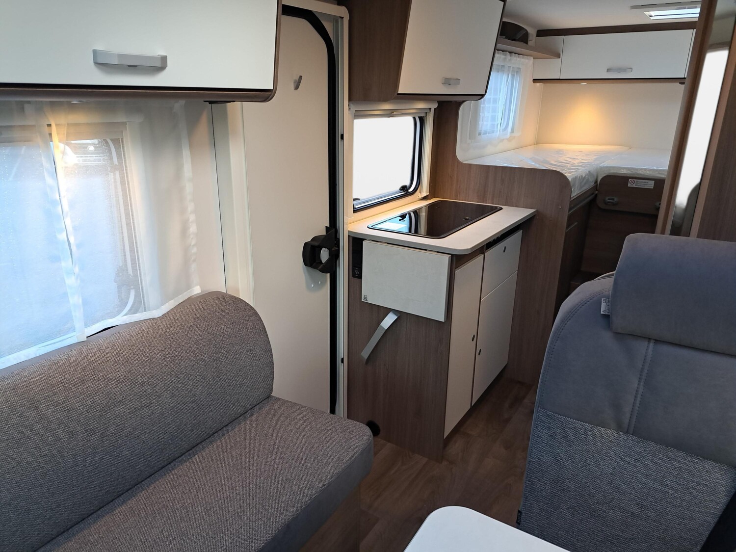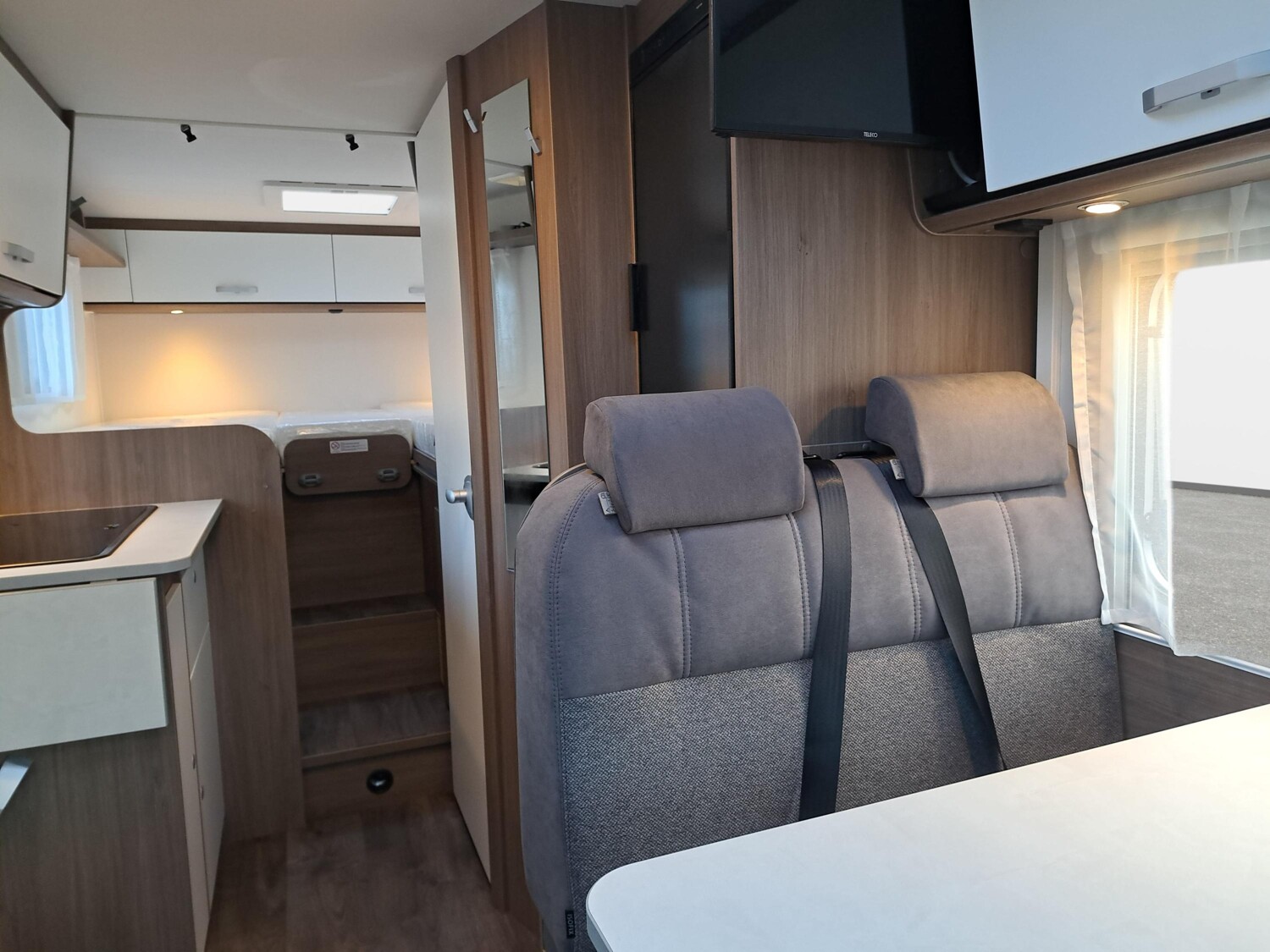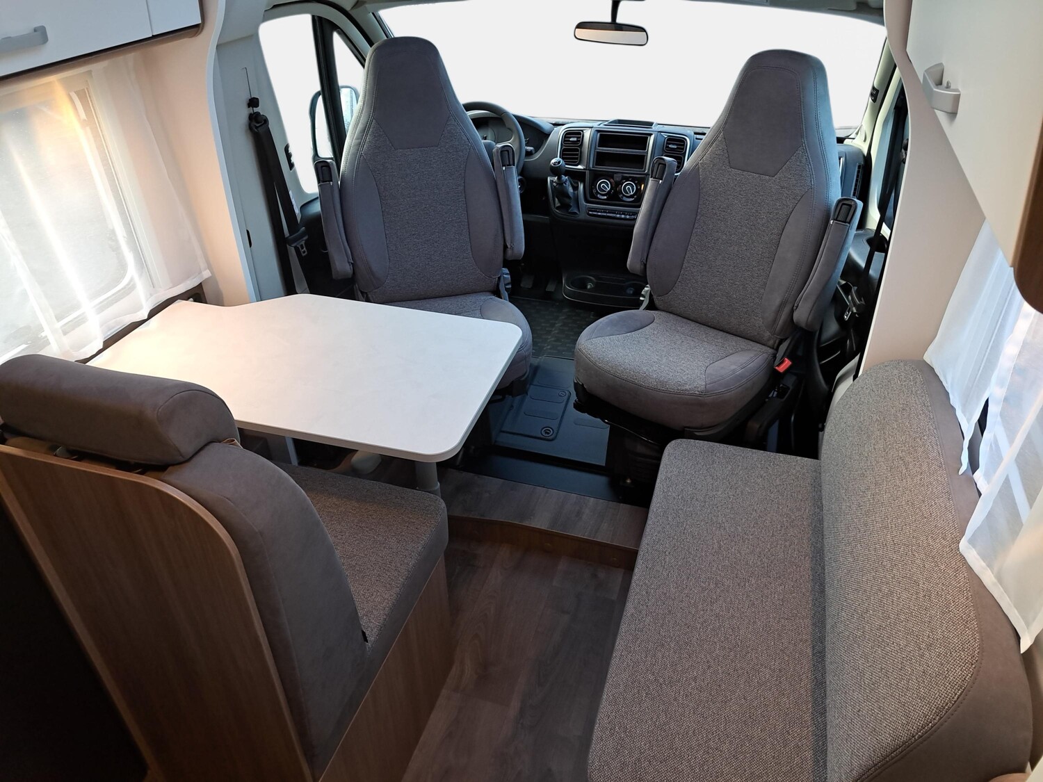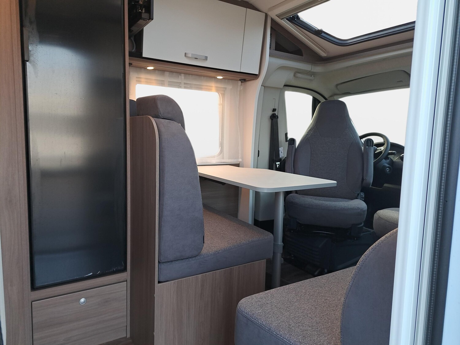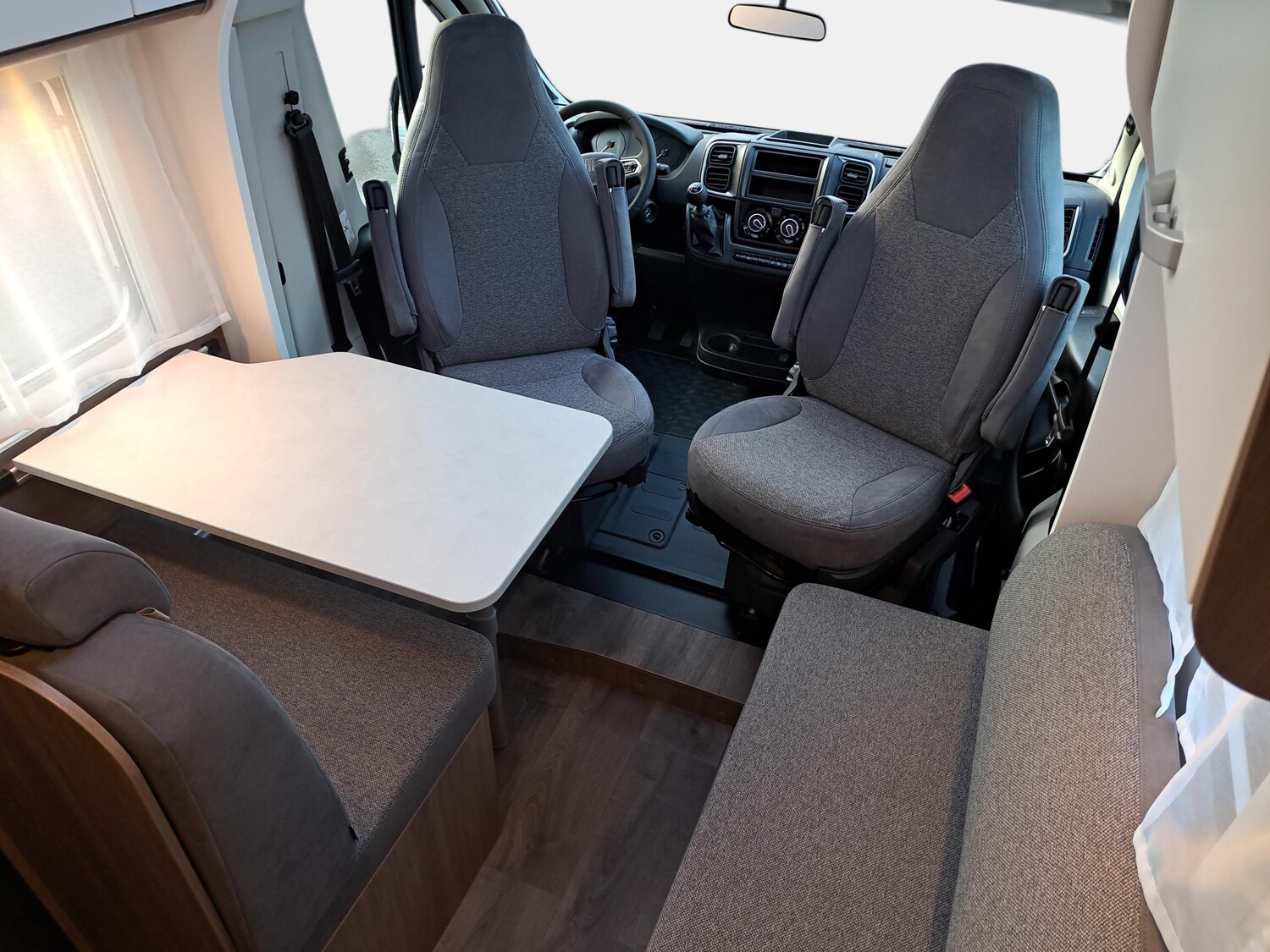 - pro+ Paket V337 & V347 (Optik Paket 1, Optik Paket 2, Basic Paket, Faltverdunkelung Fahrerhaus, Fenster in Fronthaube, Sonderfarbe Dachstauschrankklappen und Türen in Cosy White, Beklebung Pro+, Markise 4 m, Abwassertank isoliert, zweite Außenstauraumklappe)