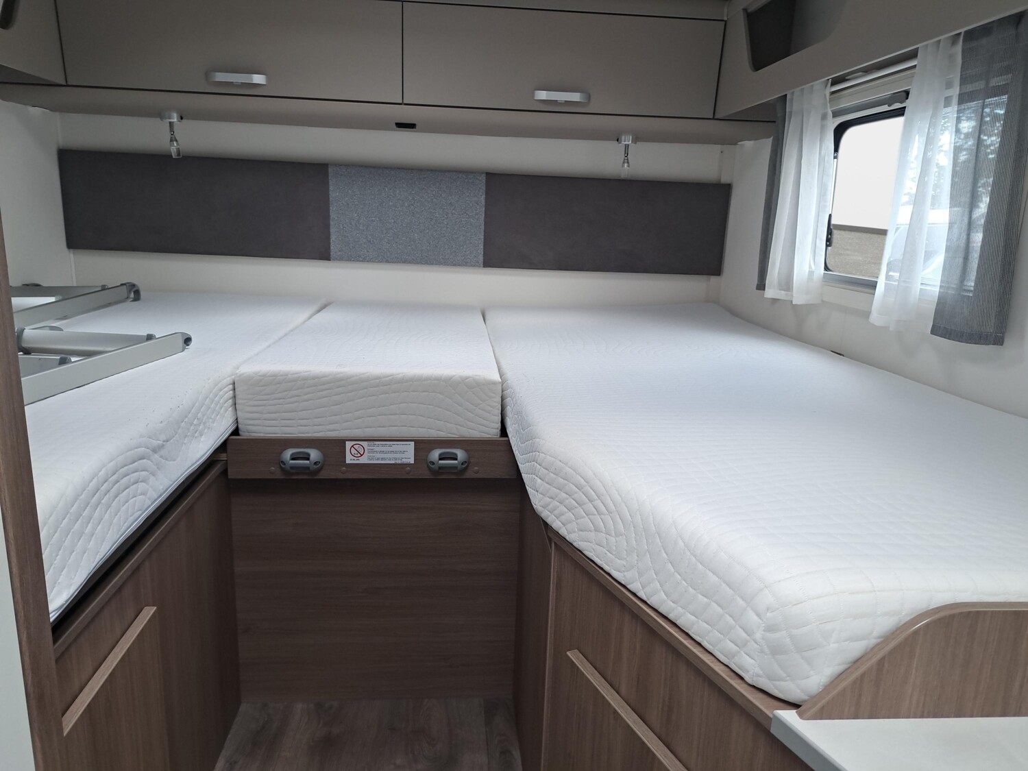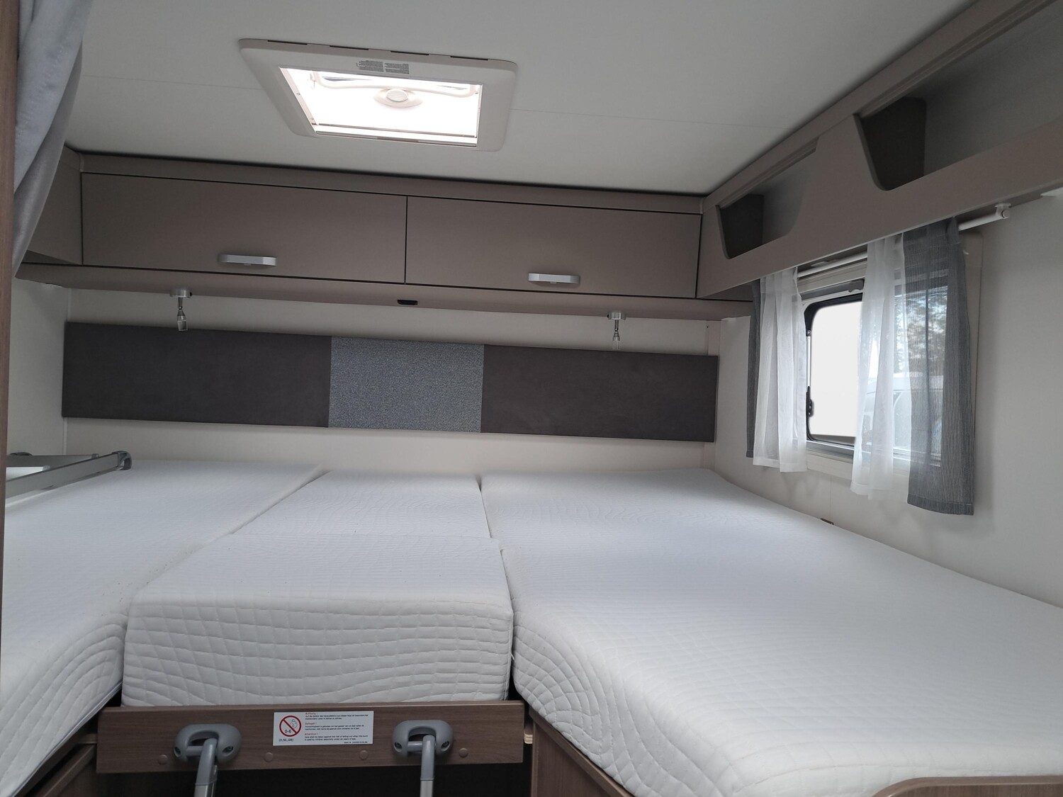 AusstattungFahrzeugABS Einparkhilfe ESP Multifunktionslenkrad Radio DAB-Radio Russpartikelfilter Servolenkung Tempomat Zentralverriegelung InnenIsofix Lederlenkrad Rollrost WC Doppelbett Einzelbetten Hubbett Seitensitzgruppe AussenFahrradtraeger GFK Heckgarage Markise ExtrasSAT-Antenne TV Beschreibung