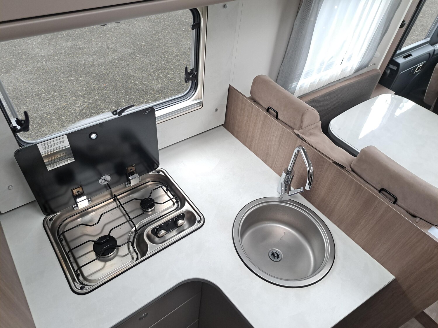 - pro+ Paket (Basic Paket, Style Paket, 16" Alufelgen, Großer Kühlschrank 156 l mit separatem Frosterfach 29 l, Abwassertank isoliert, Rahmenfenster, Markise 5 m, TV Paket (22" Flachbildschirm + Halter, Satantenne Flatsat Classic 65), Design Applikation Heck, Beklebung pro+)