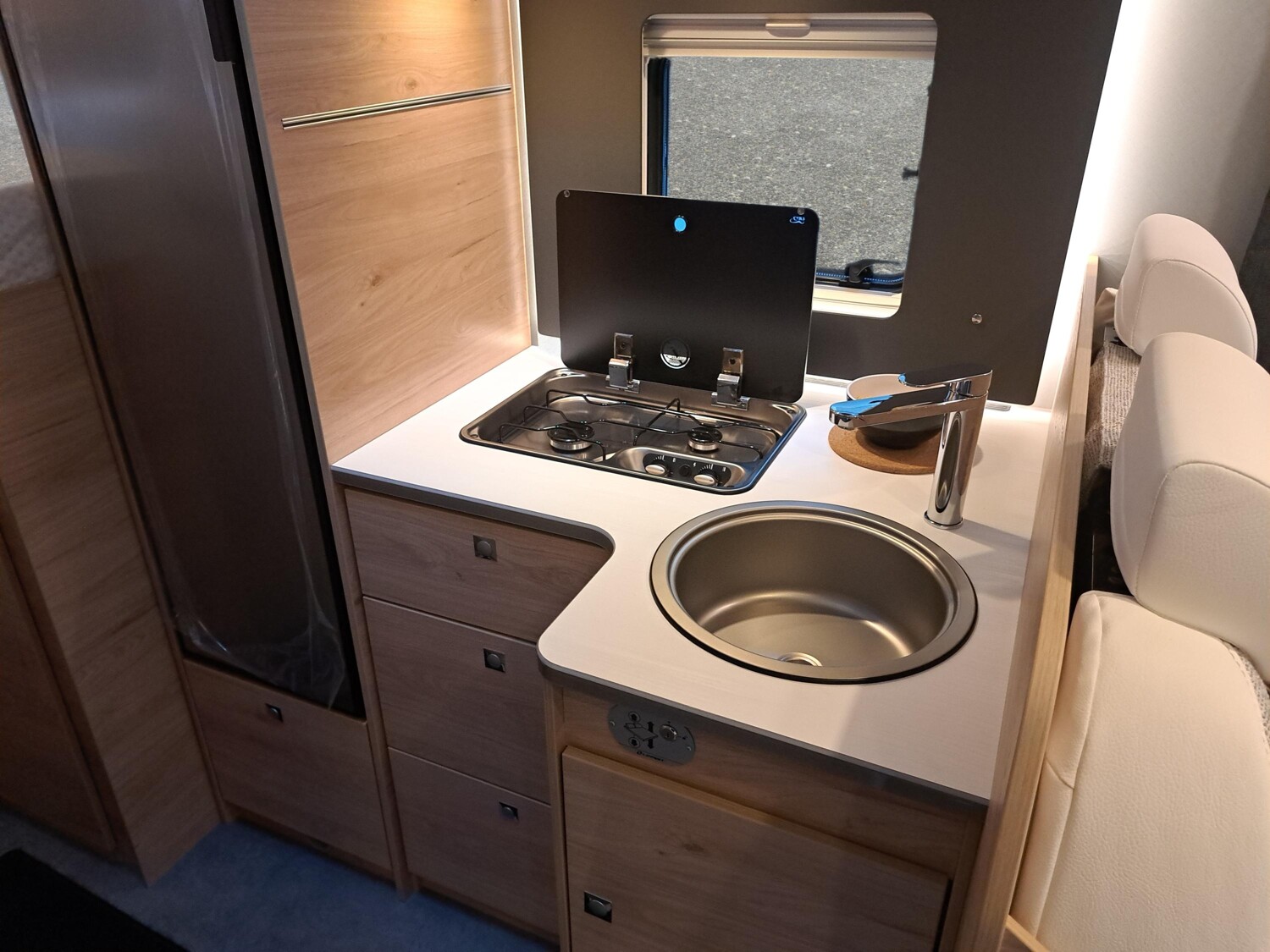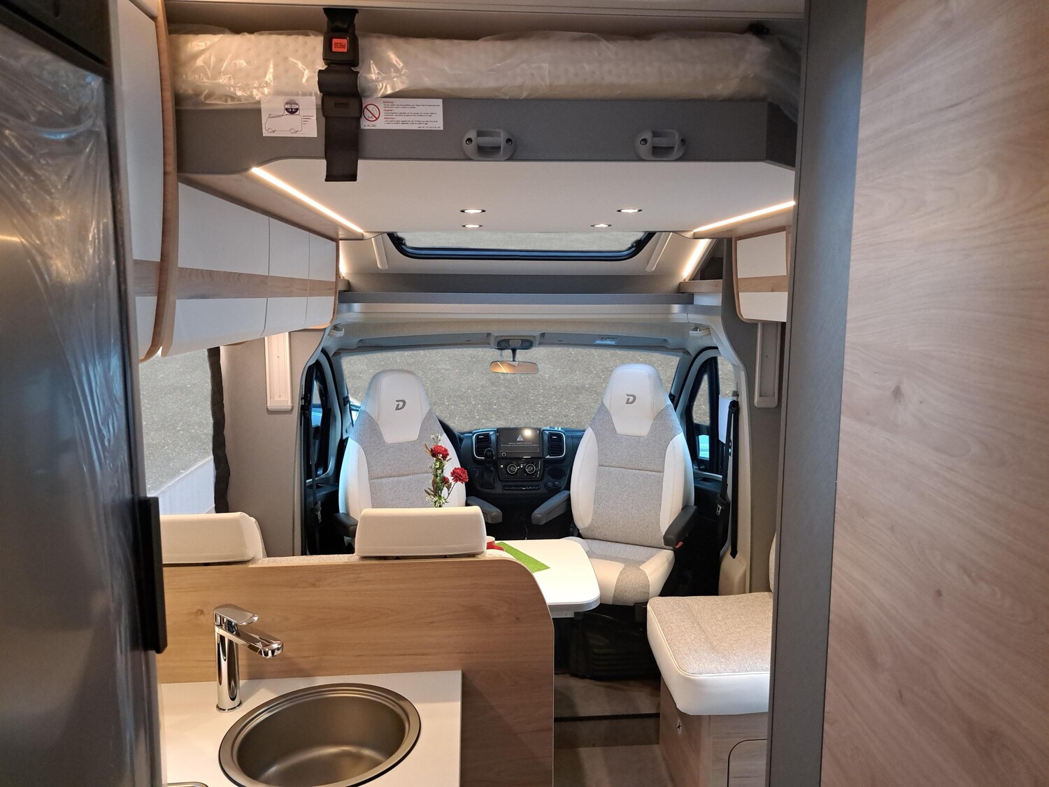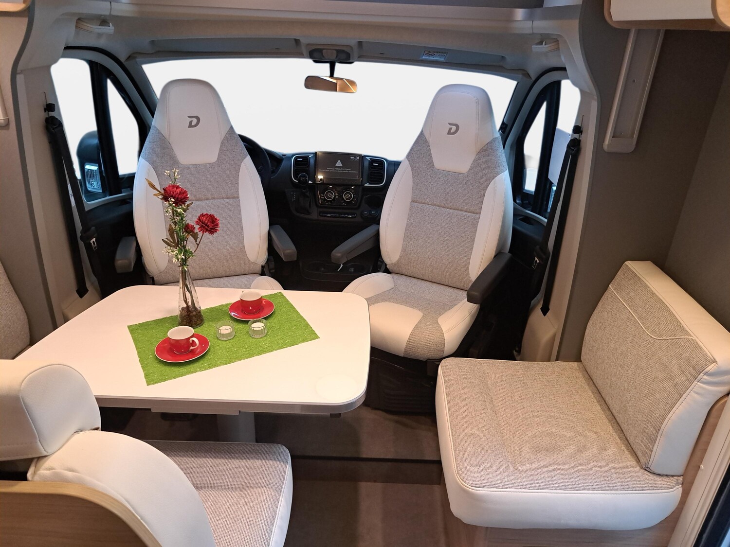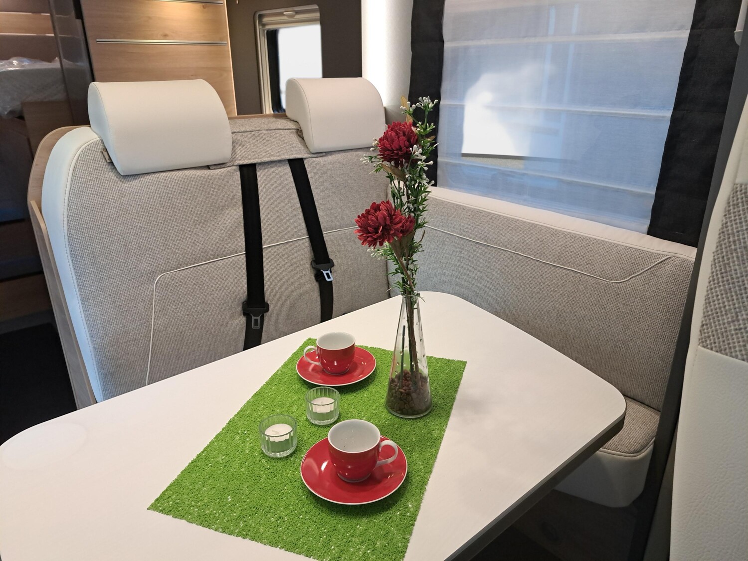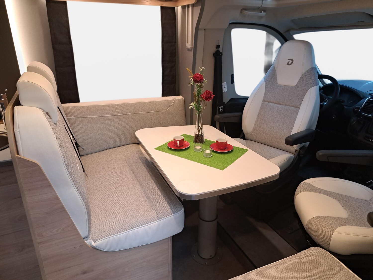 - Active-Paket T 6812 EB (Ausstellfenster in der T-Haube, Wohnraumtür mit Fenster inkl. Verdunkelung und Zentralverriegelung (inkl. Fahrerhaustür), Verdunklungsjalousien im Fahrerhaus, Panorama-Dachhaube 70 x 50 cm im Wohnraum, Light Moments: Indirekte Ambientebeleuchtung über den Dachstauschränken, Light Moments: Indirekte Wandflächen-Ambientebeleuchtung, Stauraum-Türe links, Doppelverglaste Rahmenfenster mit Verdunklung & Mückenschutz inkl. verkleidete Küchenrückwand, Textilleder-Wohnwelt Heron, Vorbereitung Solar, Light Moments: Küchenrückwand beleuchtet, Vorbereitung Dach-Klimaanlage, Digitales Bedienelement für Warmluftheizung, Dethleffs Naviceiver inkl. DAB+, Truck Navigation, Wireless Apple CarPlay und Android Auto, Rückfahrkamera (Einfachkamera), Vorbereitung SAT-Anlage, Active Außendesign (Heckleuchtenträger mit schwarzem Diffusor, erweiterte Beklebung, Skidplate "rot"), Bettumbau Einzelbetten zu Doppelbett, Gemütliche L-Sitzgruppe mit freistehendem, absenkbarem Tischfuß und 2 integrierte 3-Punkt-Gurte, Duschrost, Cassettenmarkise Omnistor 4.0 m (manuell))