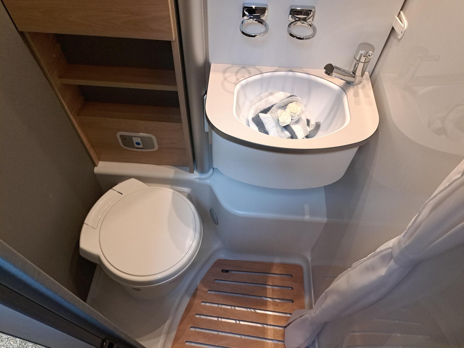 absenkbarem Tischfuß und 2 integrierte 3-Punkt-Gurte, Duschrost, Cassettenm