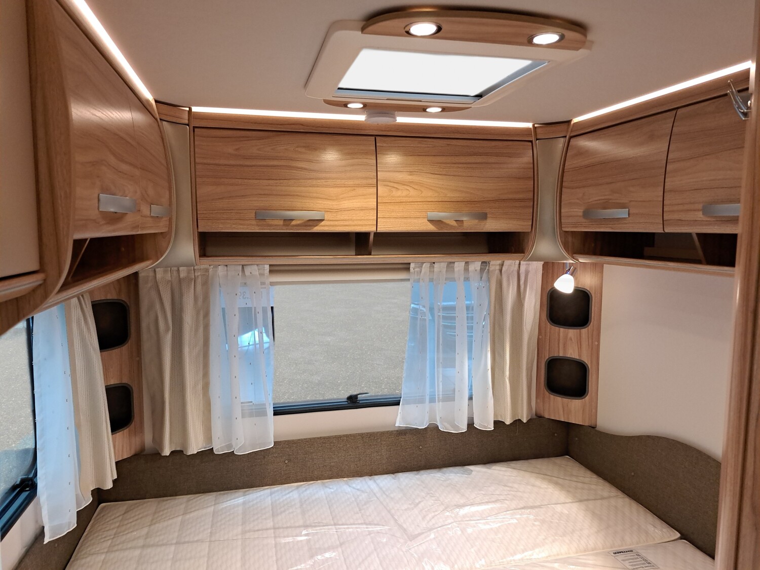 - Moving-Paket (Autarkpaket (95 Ah AGM-Aufbaubatterie, Ladegerät mit integriertem Booster), Fliegenschutz-Rolltür (gesamte Türhöhe), bedienfreundlich durch seitliche Führung, Deichsel-Fahrradträger Thule Caravan Superb für zwei Fahrräder, max. Traglast 60 kg (für E-Bikes geeignet), Abstützfuß (4 Stk.) für Caravanstützen: Verhindert Einsinken oder Wegrutschen der Stützen, Deichselstützrad mit integrierter Stützlastanzeige, 22 l Abwassertank, rollbar (Unterbringung im Gaskasten), Steckdosenpaket (2 x 230 V Zusatzsteckdosen im Wohnraum und in der Küche))