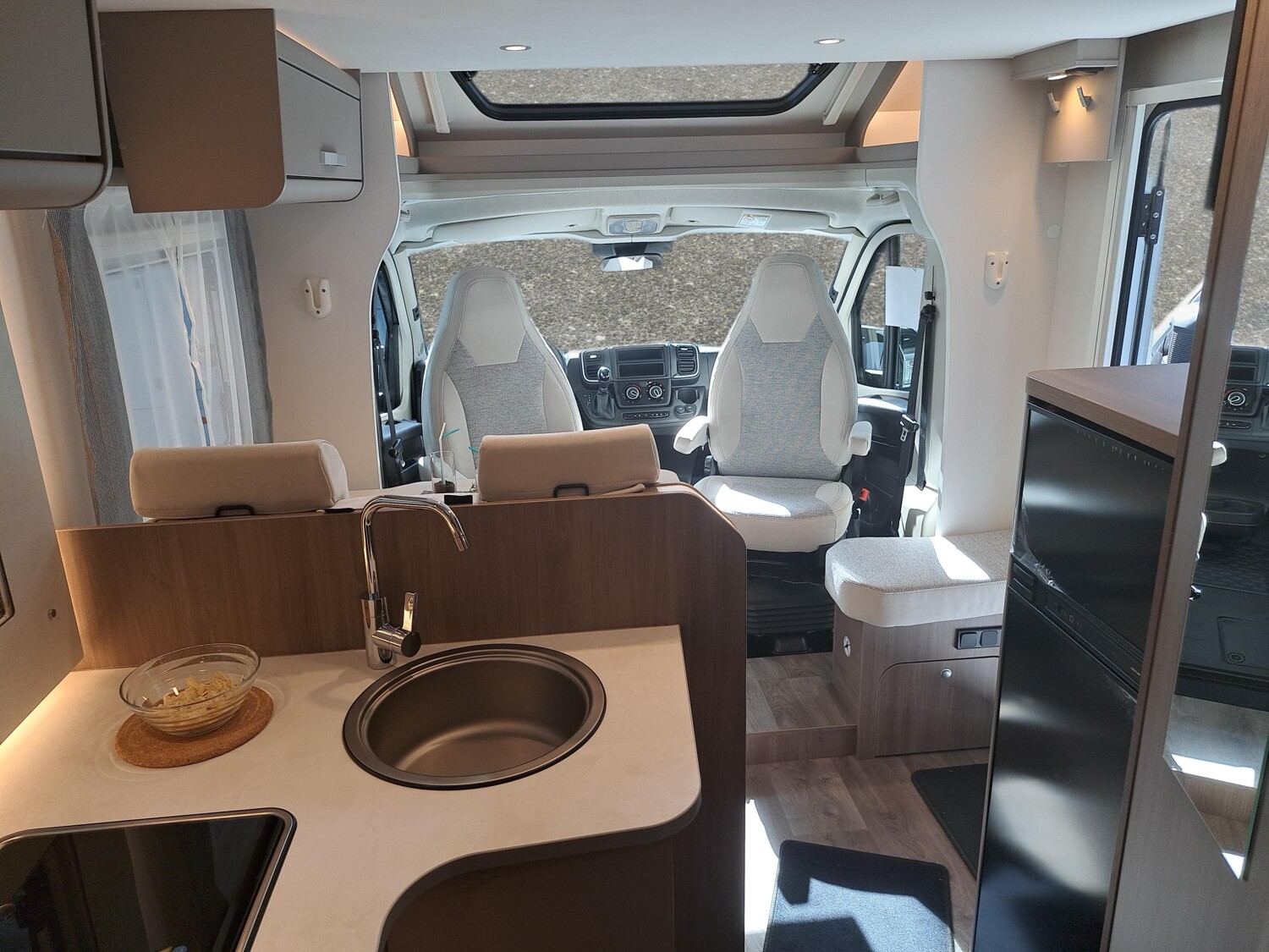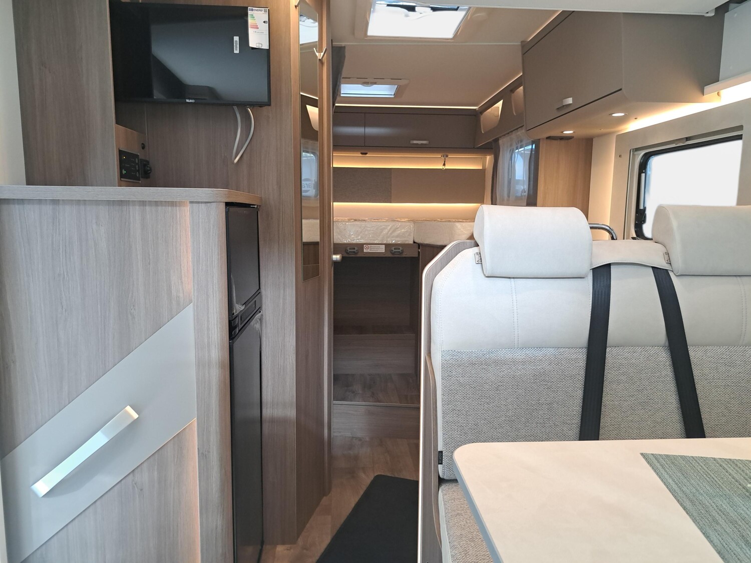 AusstattungFahrzeugABS Notbrems-Assistent Spurhalte-Assistent Verkehrszeichen-Assistent ESP Lichtsensor Multifunktionslenkrad Regensensor Russpartikelfilter Servolenkung Tempomat InnenBackofen Isofix Lederlenkrad Rollrost WC Doppelbett Einzelbetten Hubbett Seitensitzgruppe AussenGFK Heckgarage Markise ExtrasSAT-Antenne TV Beschreibung