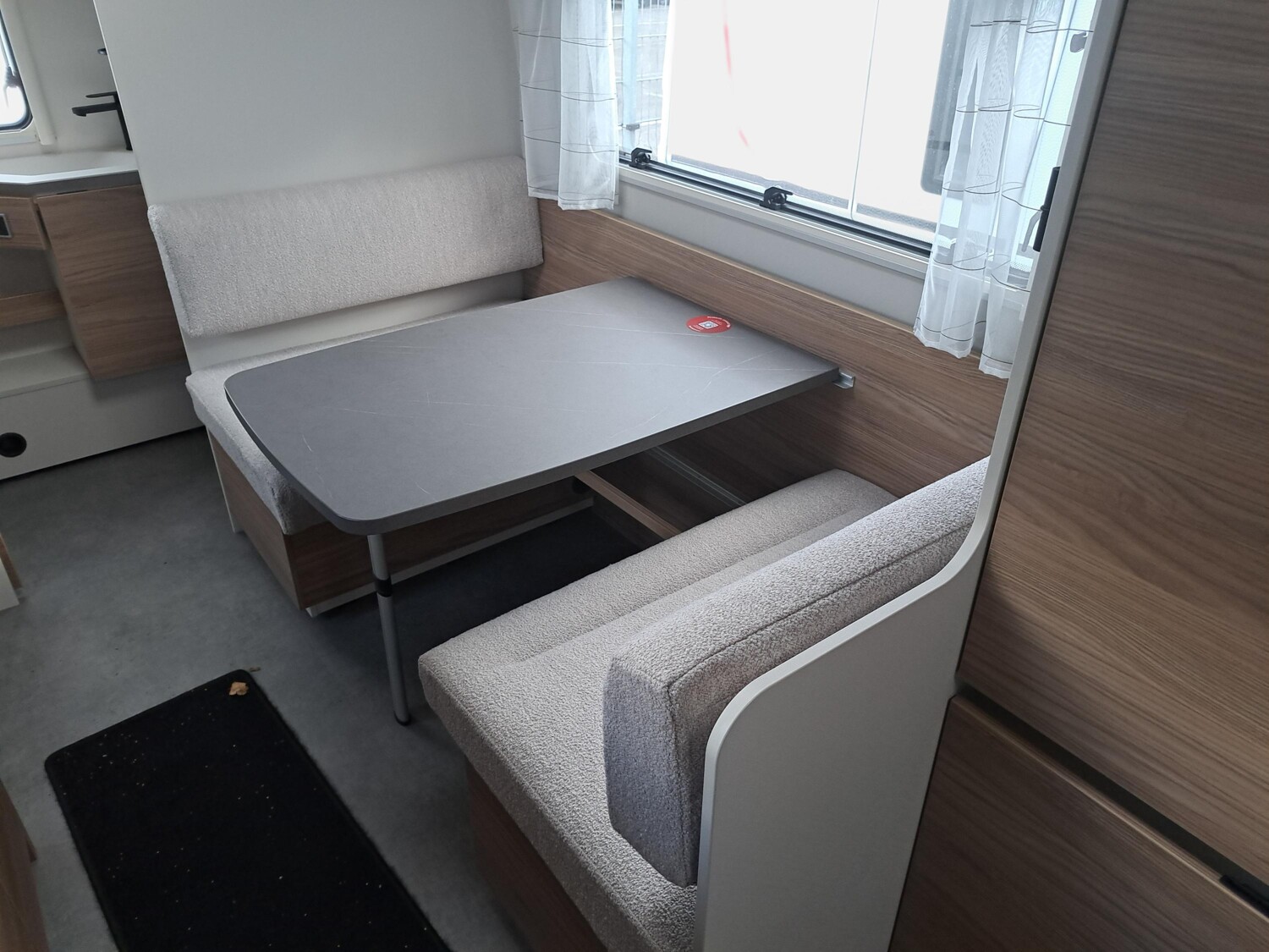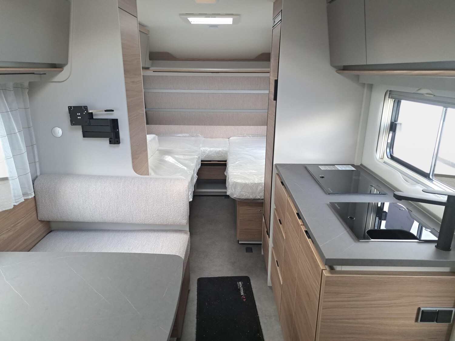 AusstattungFahrzeugAntischlingerkupplung InnenWC Doppelbett Einzelbetten Seitensitzgruppe Fussbodenheizung AussenExtrasBeschreibung