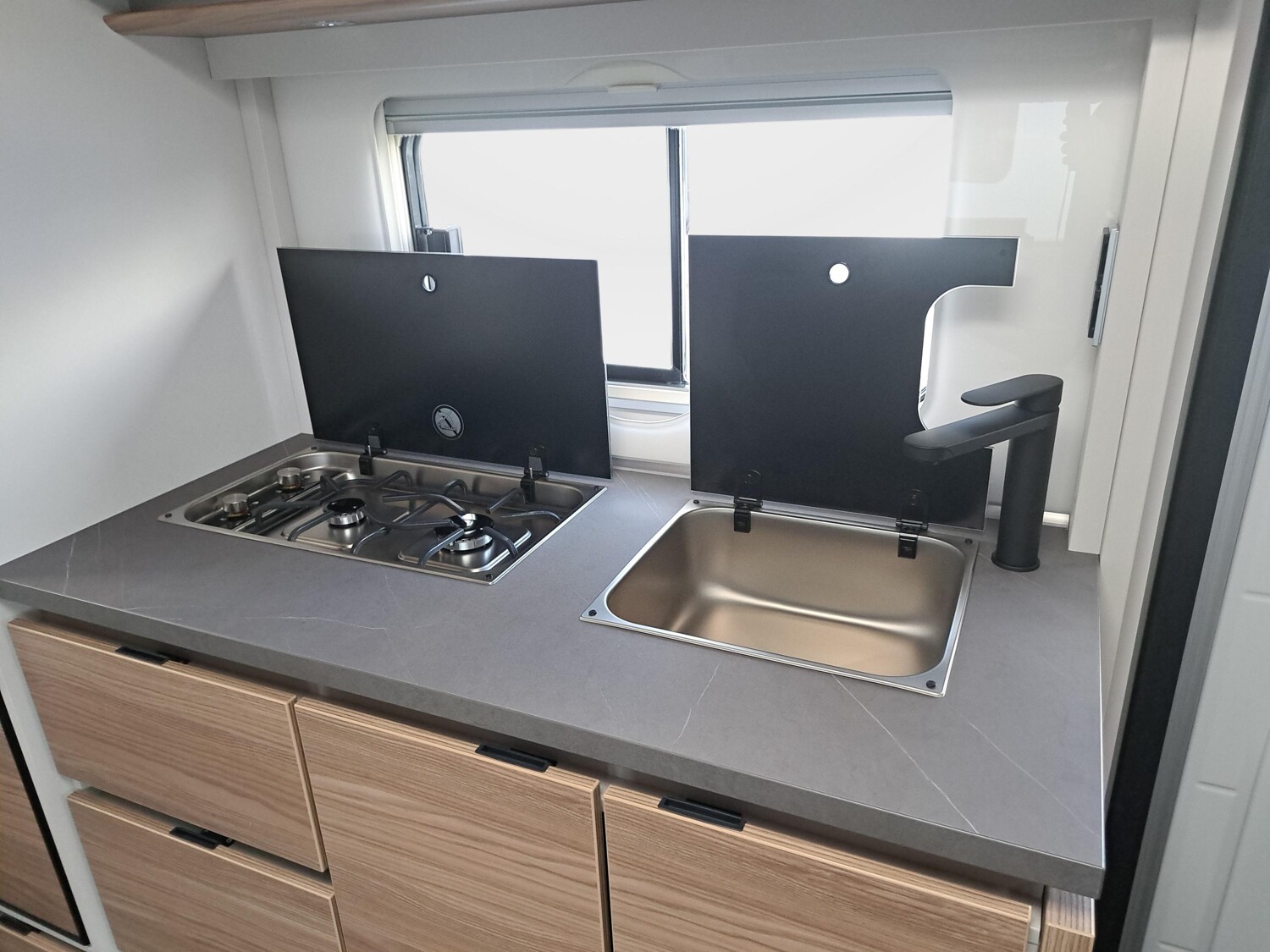 n zu Doppelbett, Multifunktions-Außenanschluss 12V, 220V, TV und SAT, Dusch