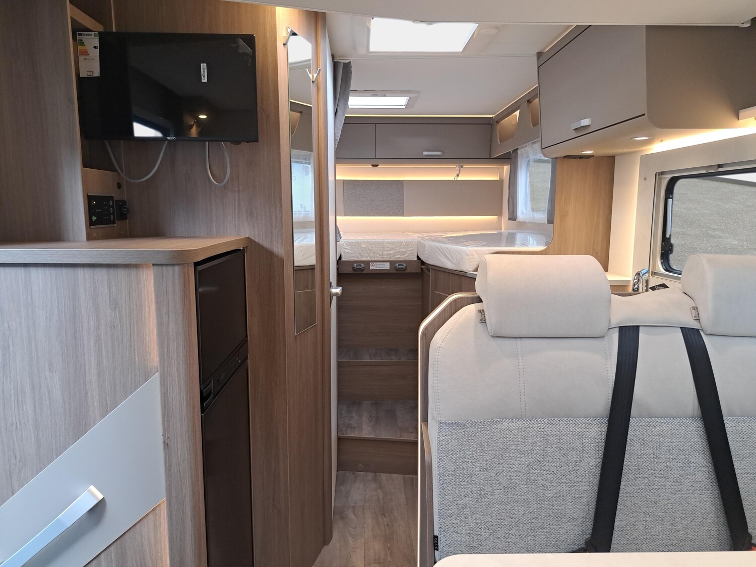 - pro+ Paket T338 (Optik Paket 1, Optik Paket 2, Basic Paket, TV Paket, Chassisfarbe Artense Grau Metallic, Faltverdunkelung Fahrerhaus, Fenster in Fronthaube, Großer Kühlschrank 156 l mit separatem Frosterfach 29 l, Abwassertank isoliert, Markise 4 m, Rahmenfenster, Design Applikation Heck, Zweite Außenstauraumklappe, Beklebung pro+)