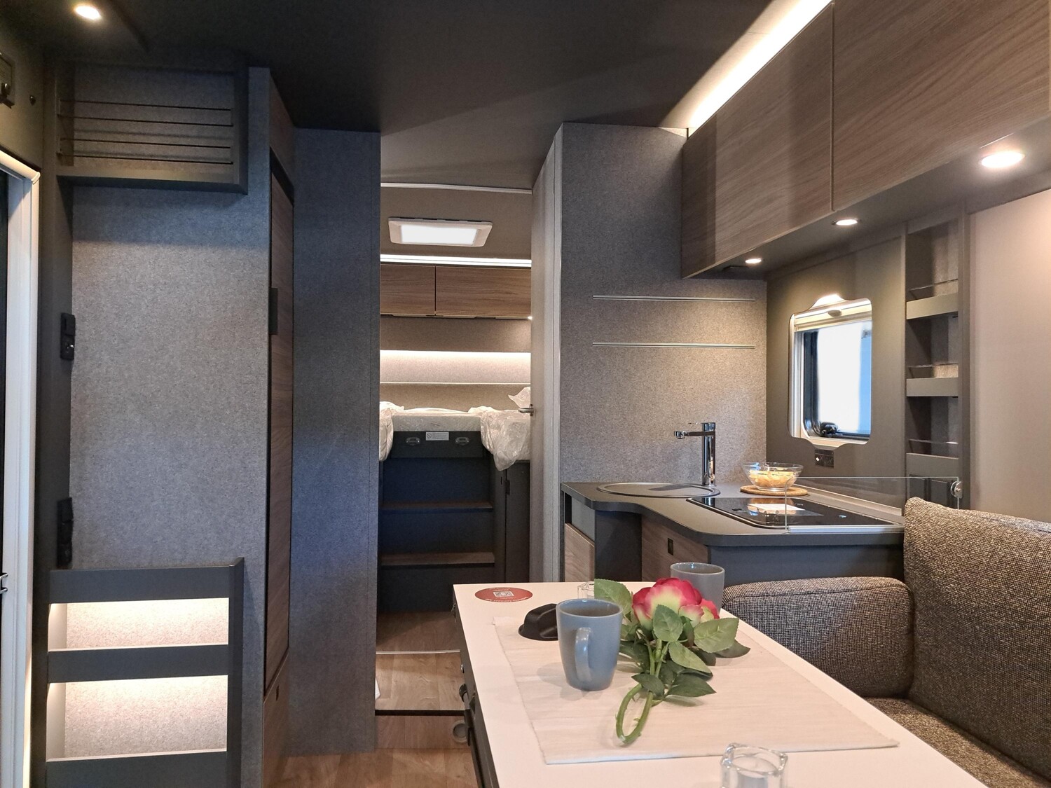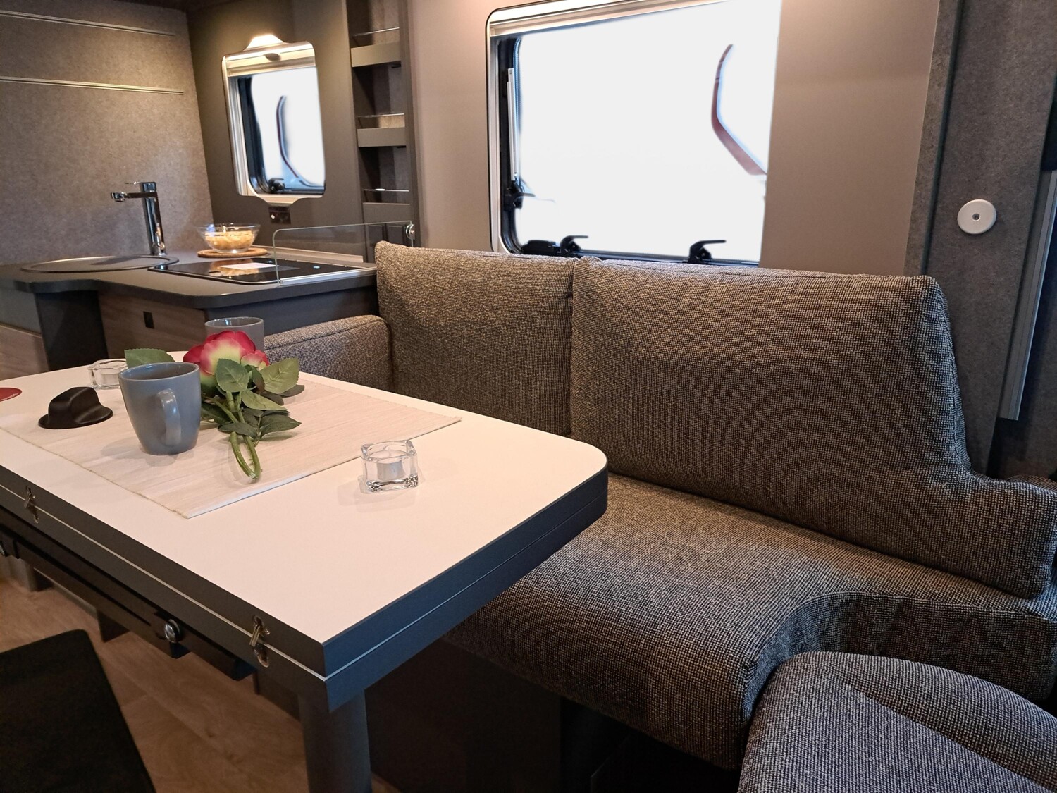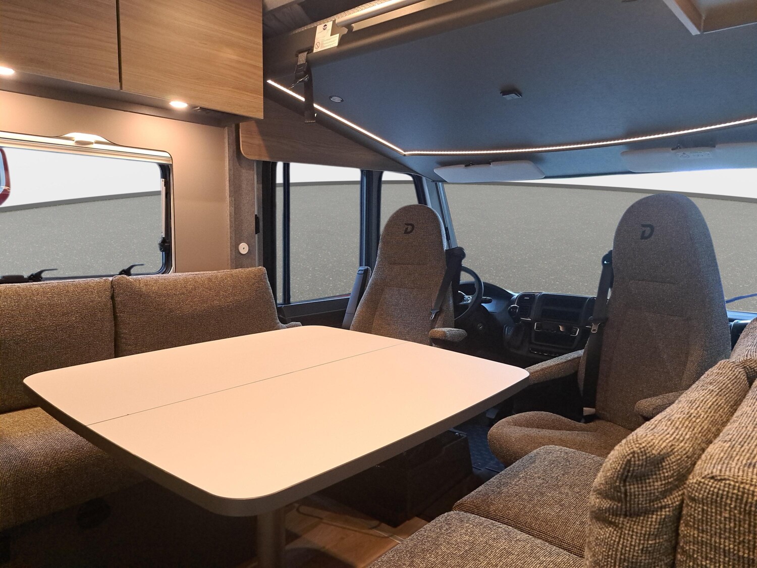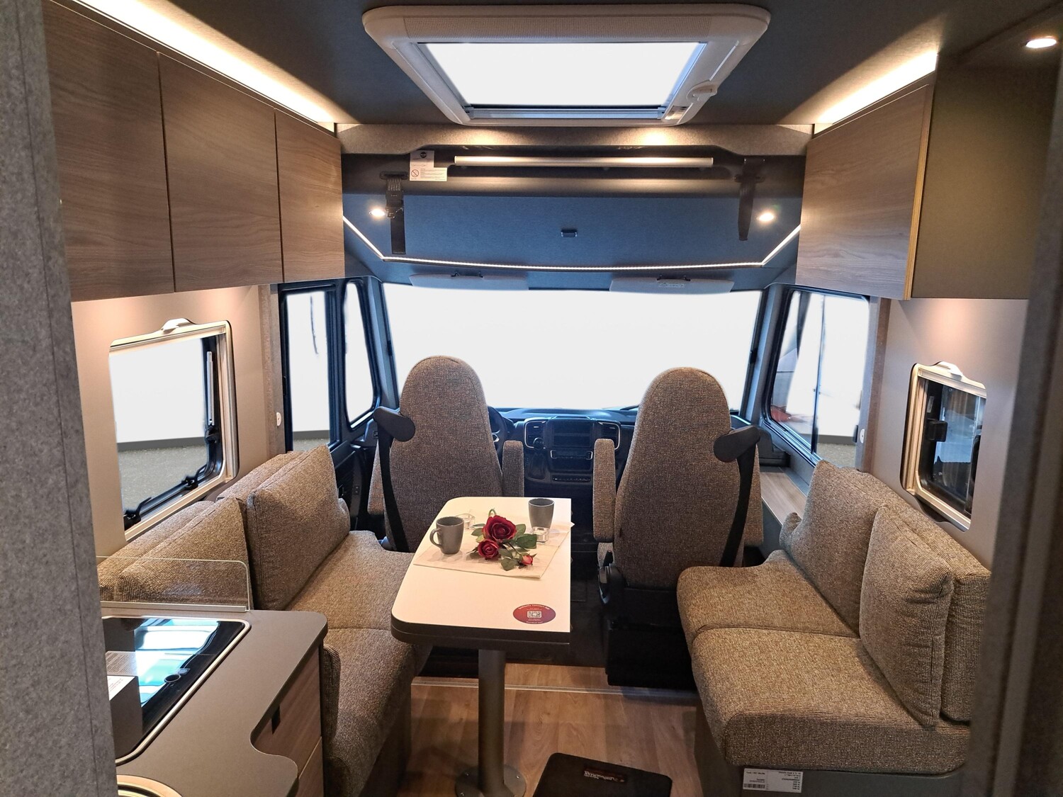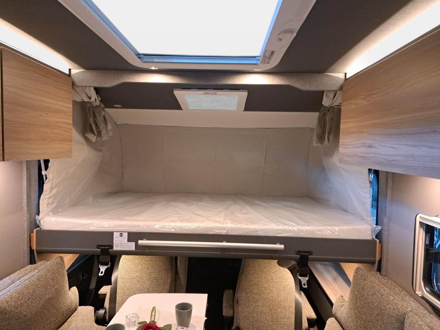 - Family-Paket I 7057 EBL (Wohnraumtür mit Fenster inkl. Verdunkelung und Zentralverriegelung (inkl. Fahrerhaustür), Light Moments: Indirekte Ambientebeleuchtung über den Dachstauschränken, Light Moments: Indirekte Wandflächen-Ambientebeleuchtung, Light Moments: Küchenrückwand beleuchtet, Light Moments: Indirekte Beleuchtung im Badezimmer mit beleuchteter Duschkonsole, Radioantenne DAB+ auf dem Dach montiert, Vorbereitung für Radiosystem inkl. Soundpaket im Fahrerhaus, Light Moments: Eingangsmodul mit indirekter Beleuchtung, Bettumbau Einzelbetten zu Doppelbett)