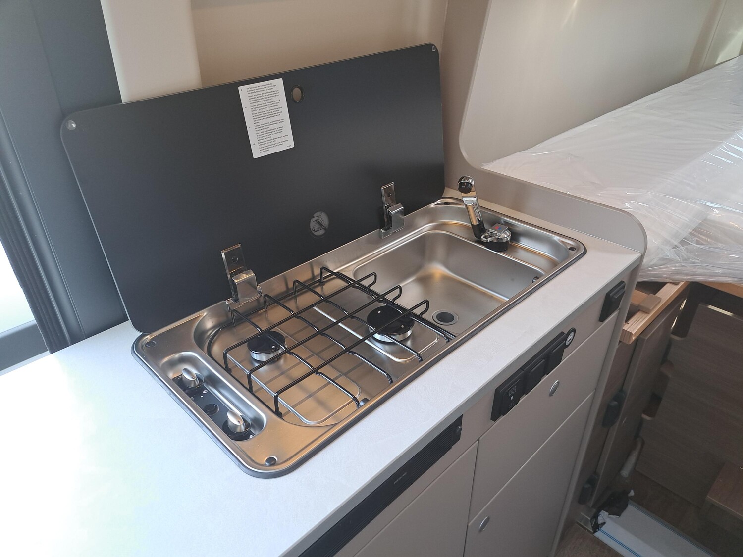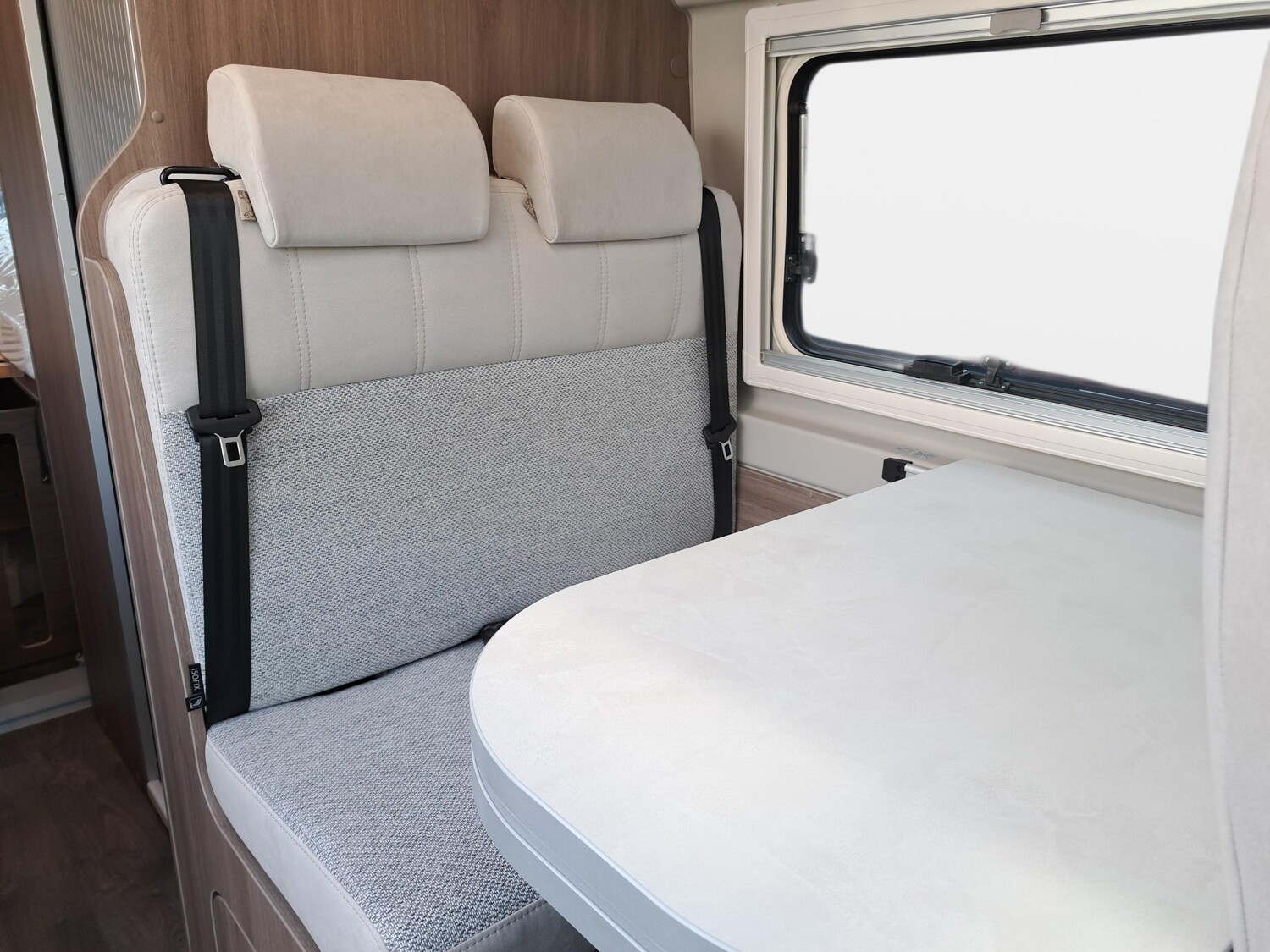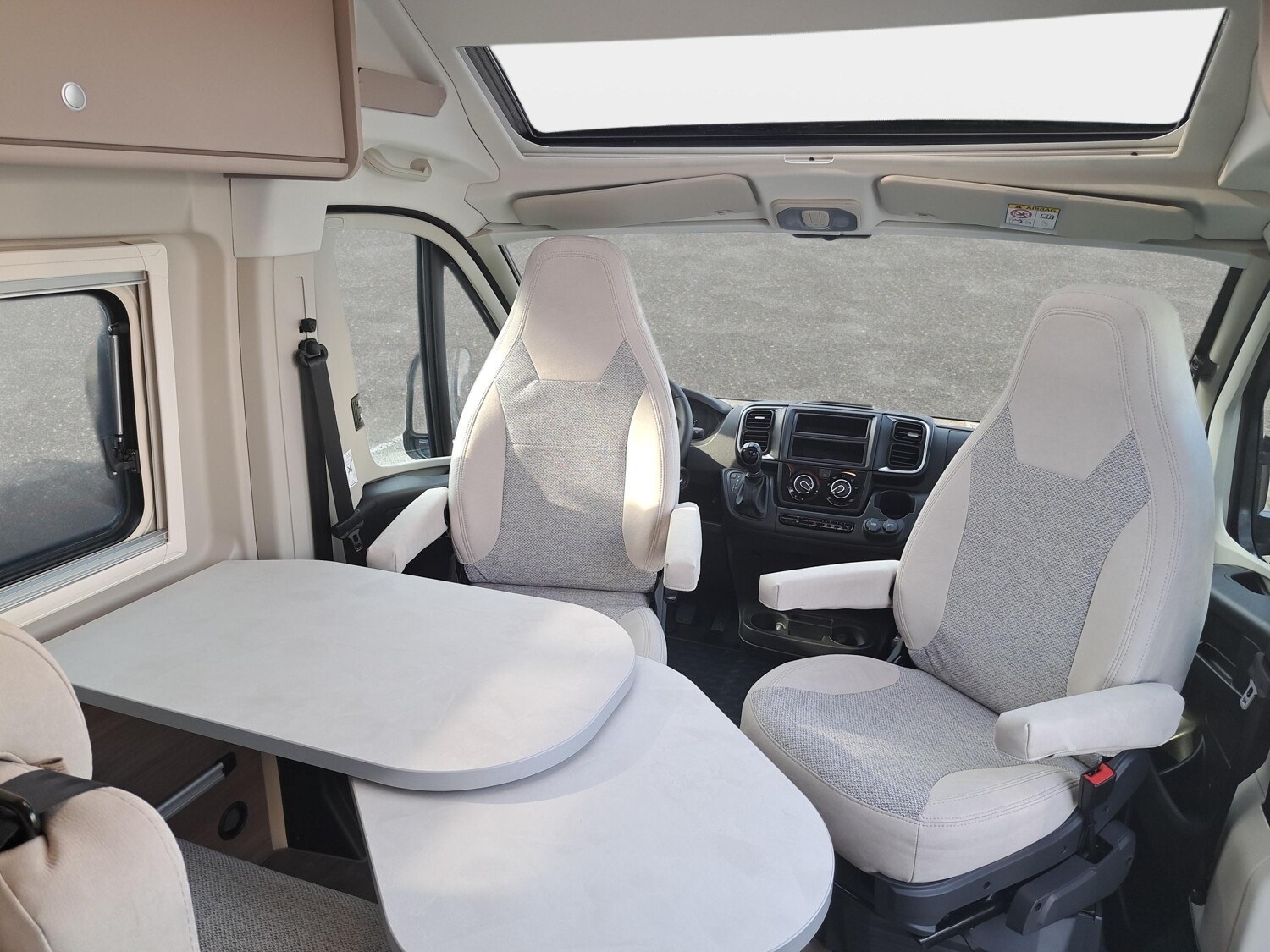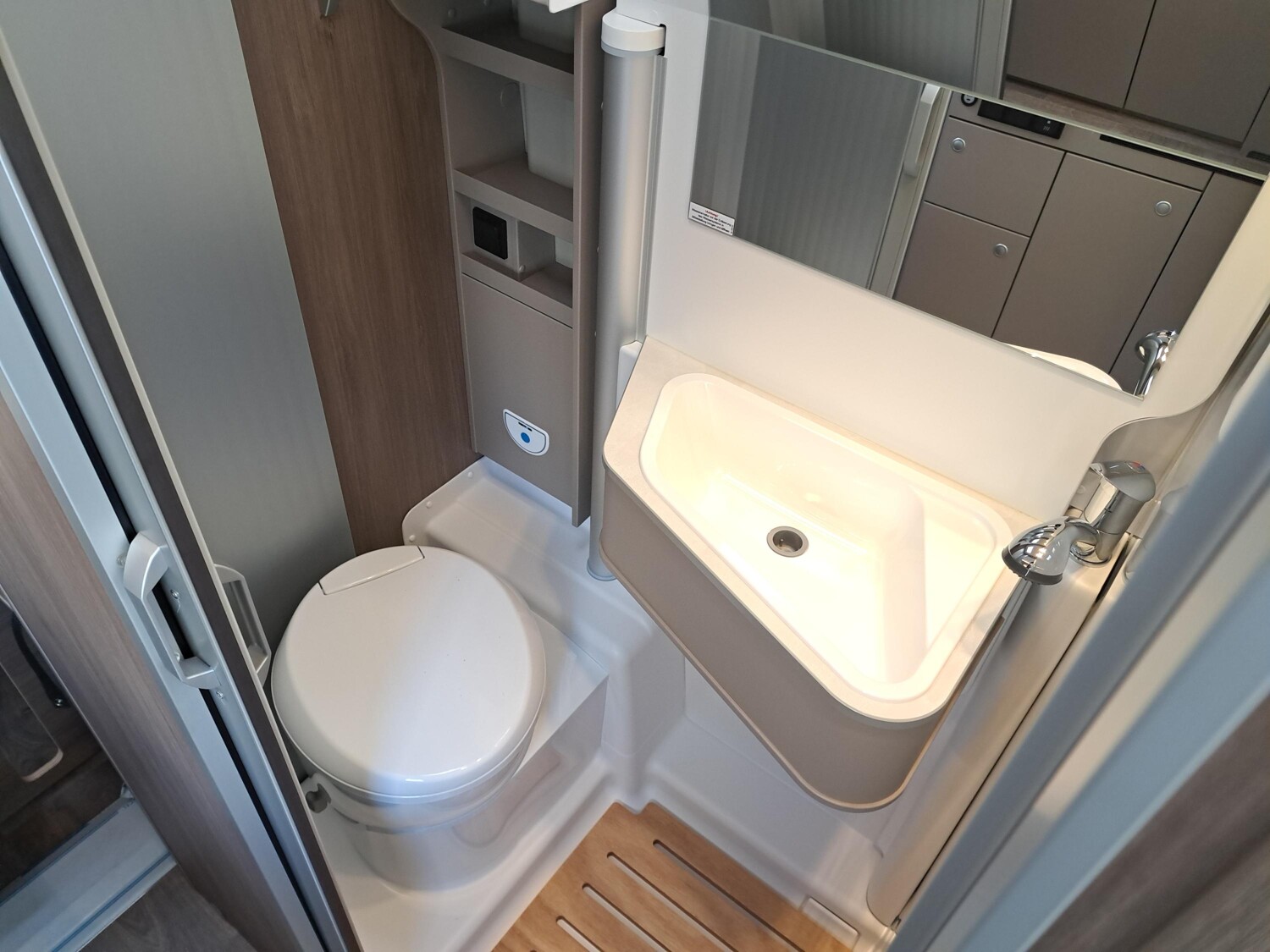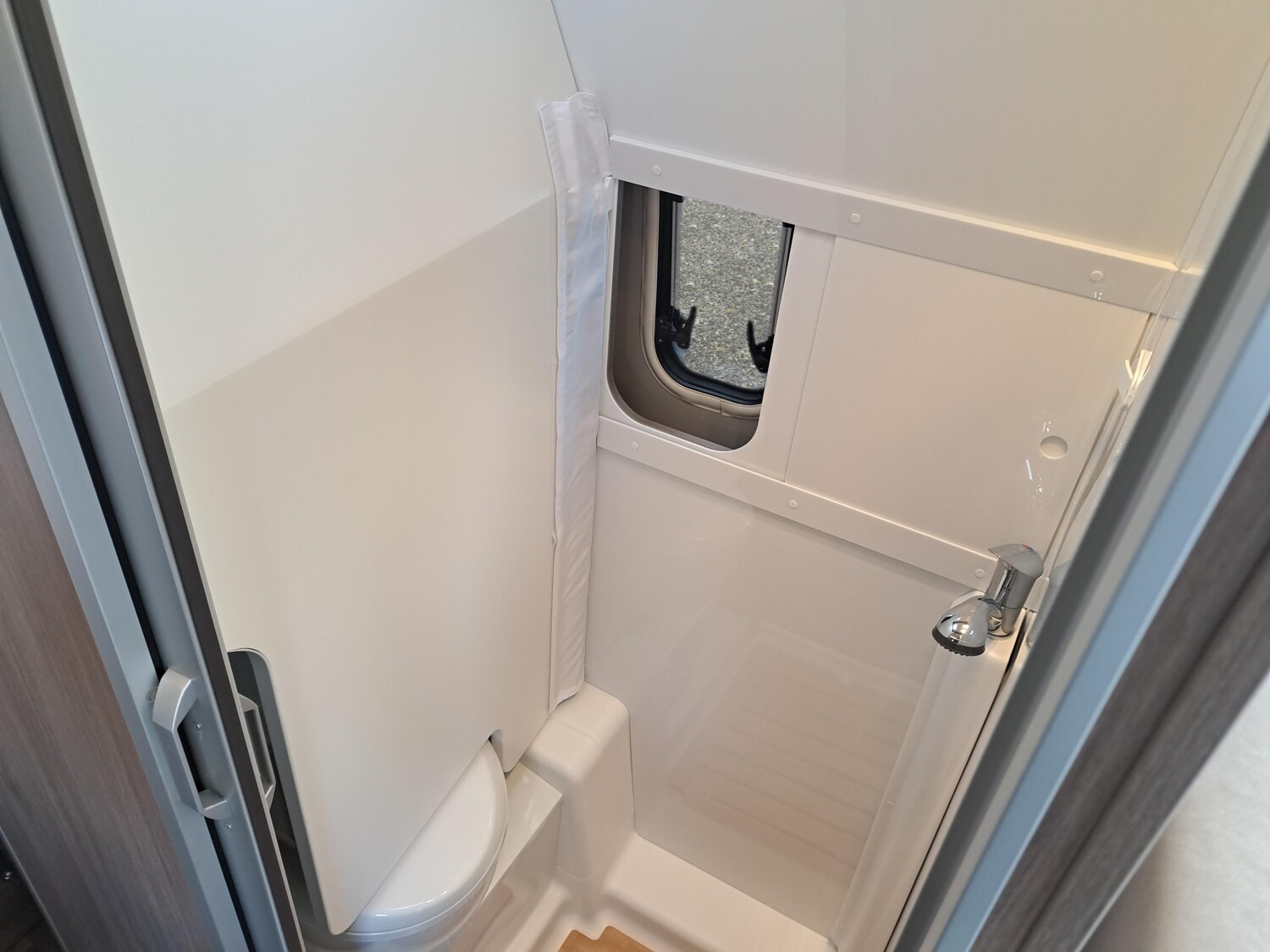 - Basic Paket (Dachhaube Midi- Heki 70 x 50 cm über Sitzgruppe, Duschausstattung (Brausekopf ausziehbar, Duschvorhang, Führungsschiene, Brausehalter), Fenster im Bad, Kleiderstange in der Nasszelle, Breite Einstiegsstufe, Drehplatte für Tischerweiterung an der Sitzgruppe)