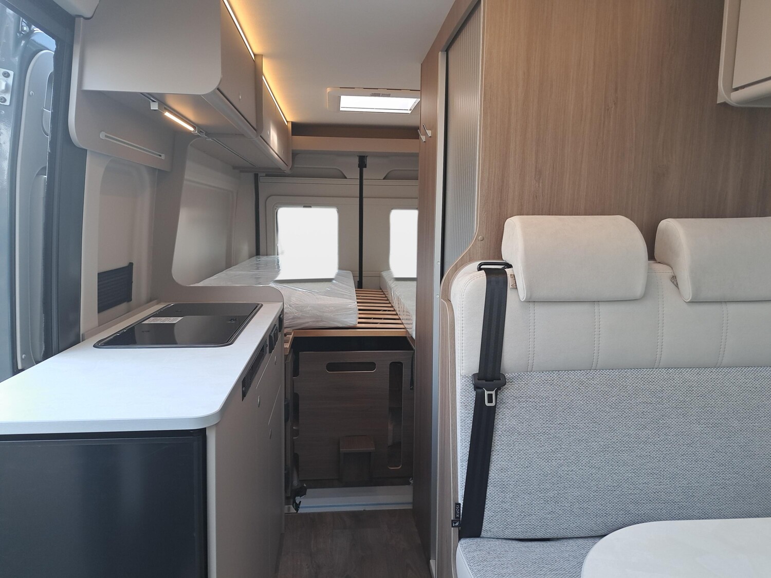 - Pro+ Paket (Optik Paket 1, Optik Paket 2, Basic Paket, Dieseltank 90l, Rahmenfenster, Beklebung Alternativ, Markise 4,0 m schwarz, Faltverdunklung Fahrerhaus, LED-Beleuchtung integriert über den Dachschränken, Panoramafenster über Fahrer- und Beifahrersitz,Heckdachstauschrank umlaufend)