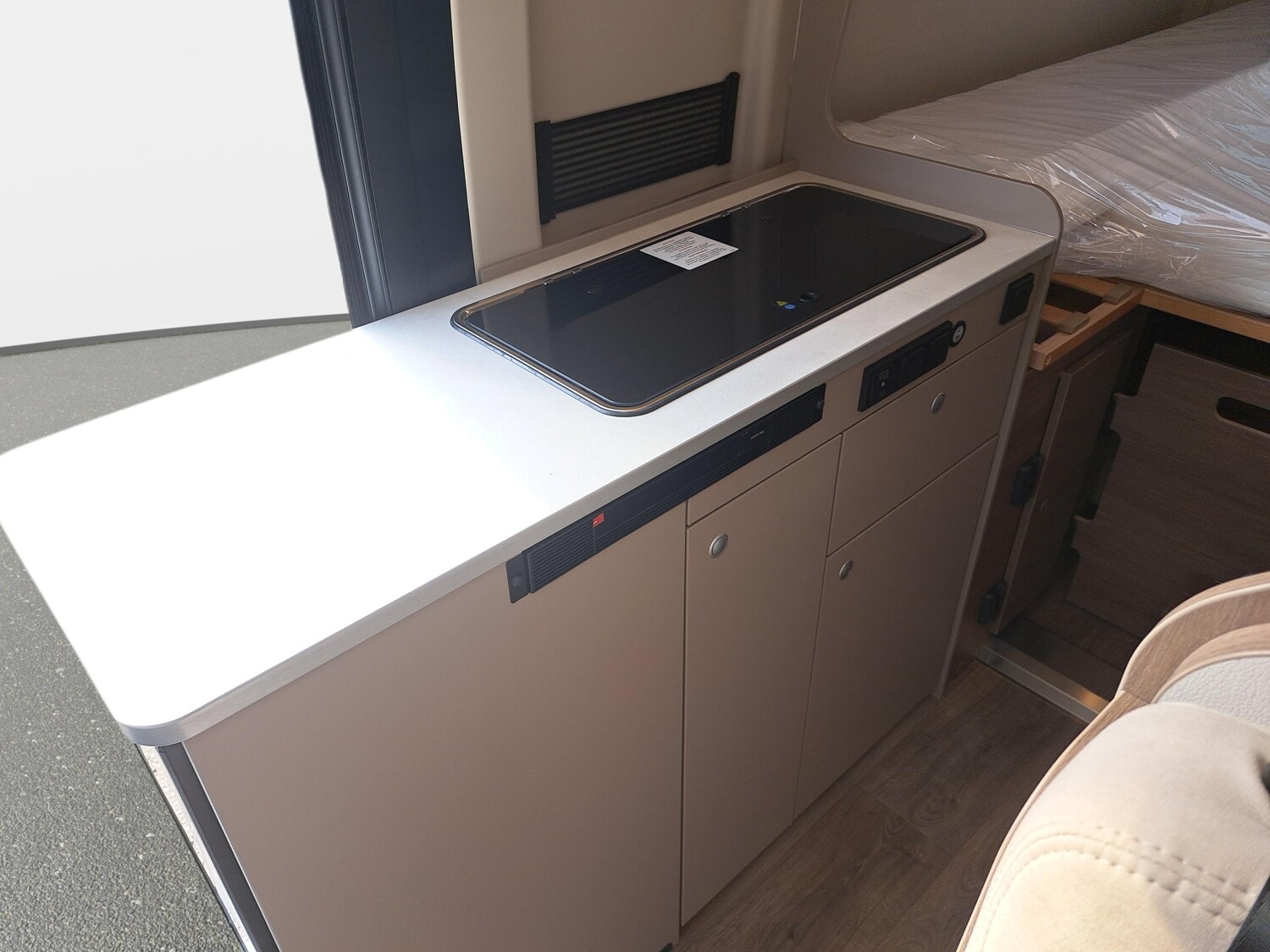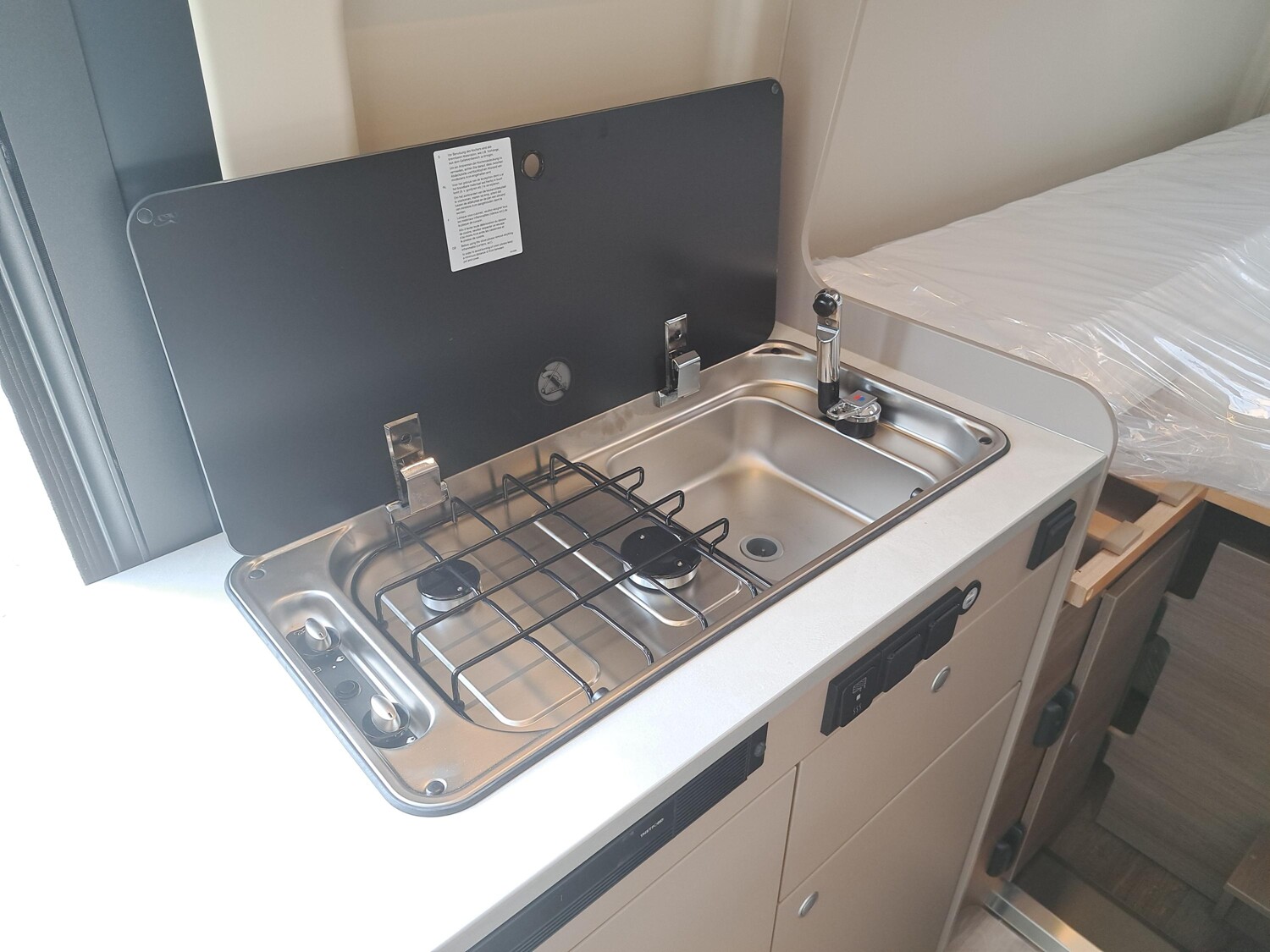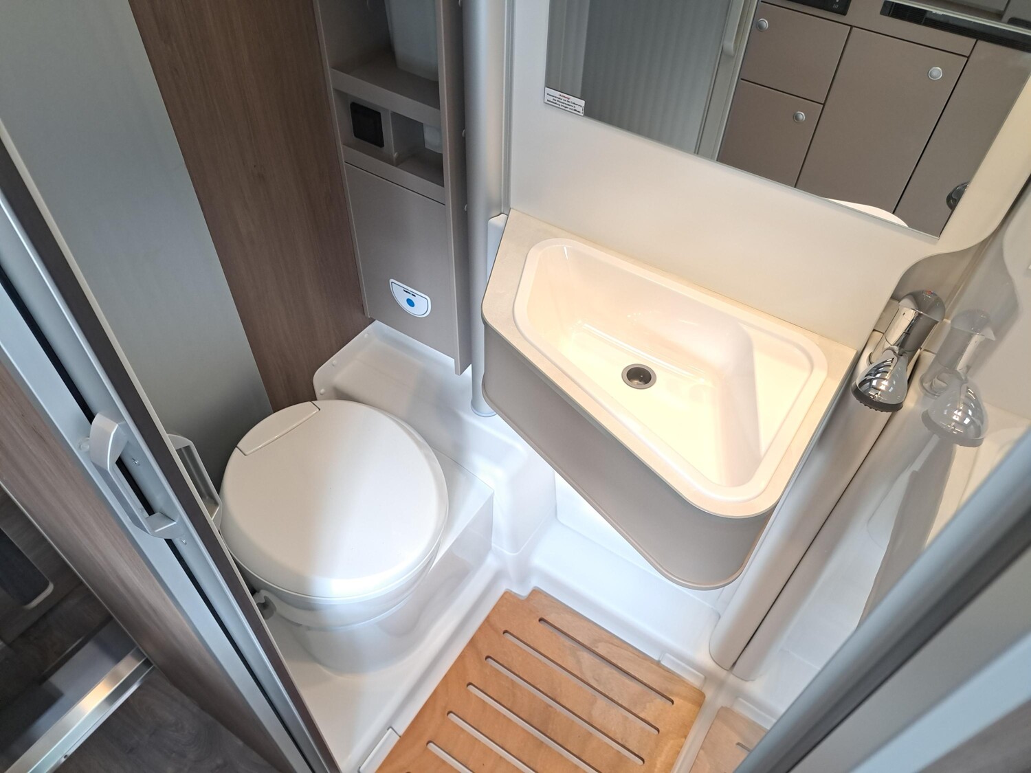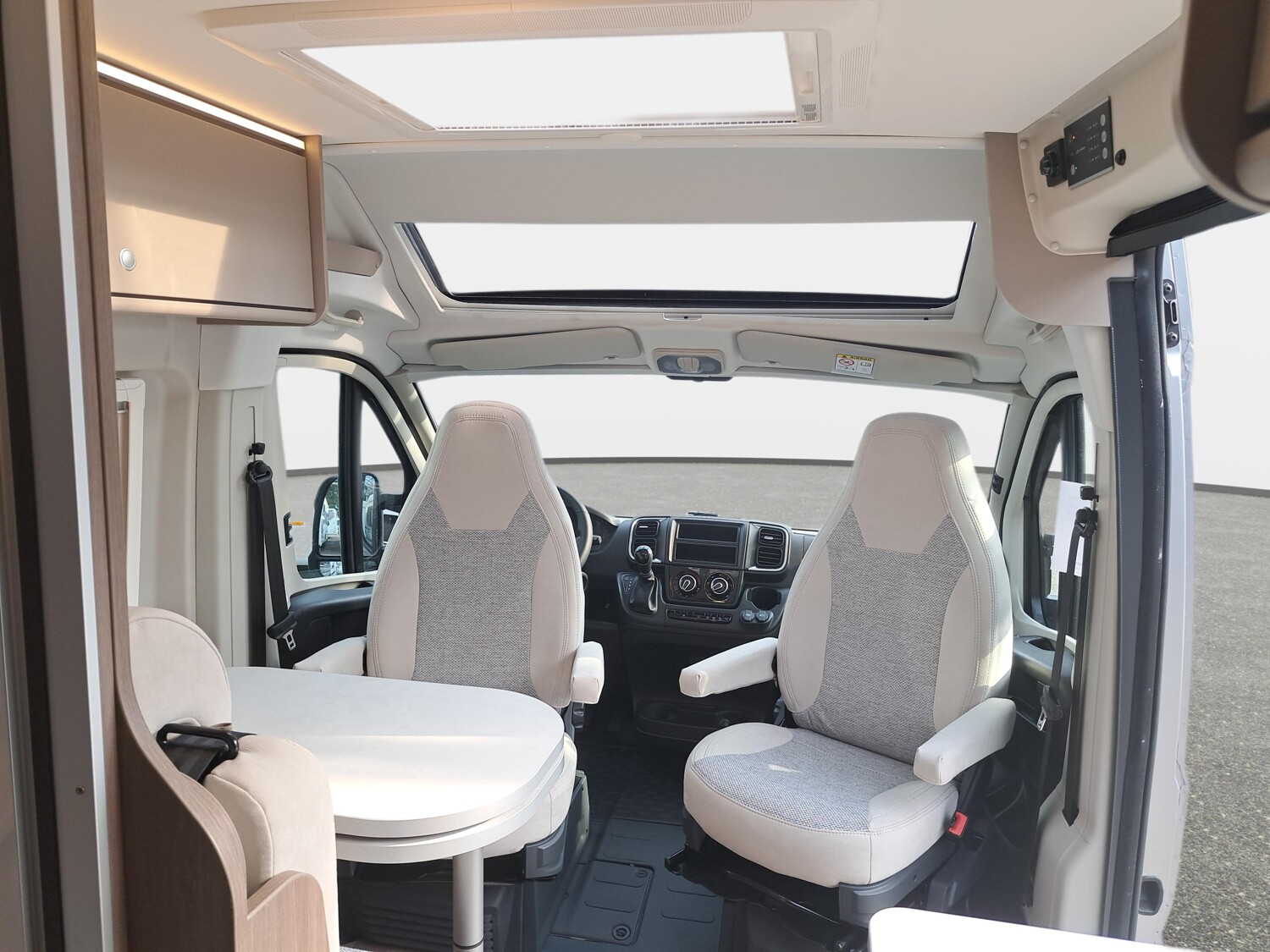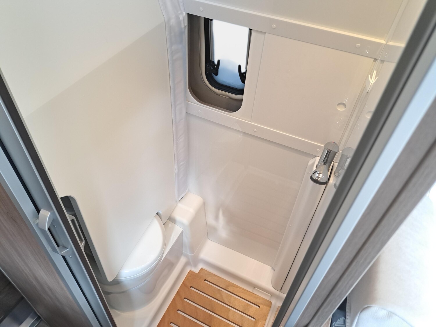 - Basic Paket (Dachhaube Midi- Heki 70 x 50 cm über Sitzgruppe, Duschausstattung (Brausekopf ausziehbar, Duschvorhang, Führungsschiene, Brausehalter), Fenster im Bad, Kleiderstange in der Nasszelle, Breite Einstiegsstufe, Drehplatte für Tischerweiterung an der Sitzgruppe)