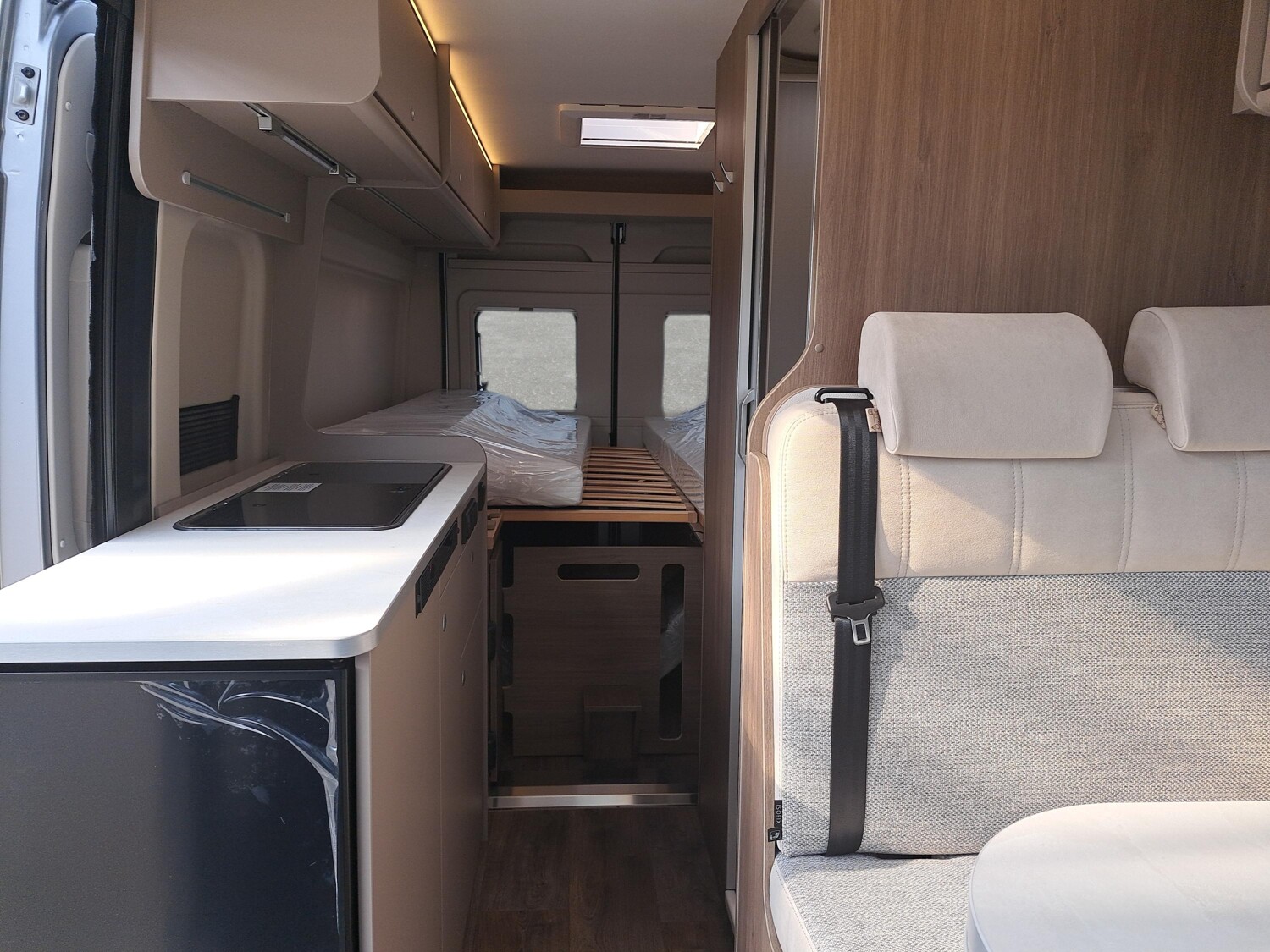 - Pro+ Paket (Optik Paket 1, Optik Paket 2, Basic Paket, Dieseltank 90l, Rahmenfenster, Beklebung Alternativ, Markise 4,0 m schwarz, Faltverdunklung Fahrerhaus, LED-Beleuchtung integriert über den Dachschränken, Panoramafenster über Fahrer- und Beifahrersitz,Heckdachstauschrank umlaufend)