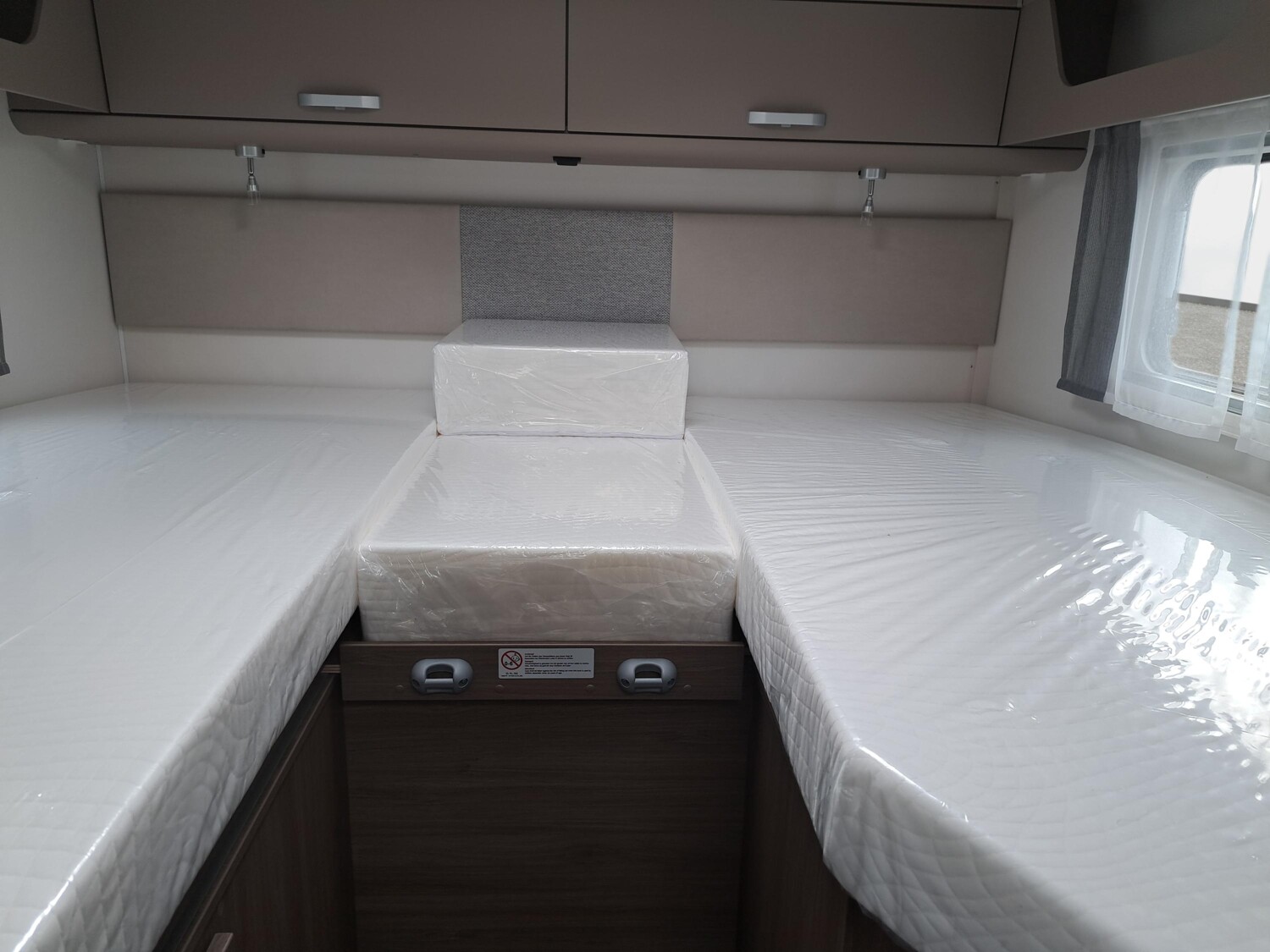 AusstattungFahrzeugABS ESP Multifunktionslenkrad Russpartikelfilter Servolenkung Tempomat InnenIsofix Lederlenkrad Rollrost WC Doppelbett Einzelbetten Hubbett Seitensitzgruppe AussenGFK Heckgarage Markise ExtrasSAT-Antenne TV Beschreibung