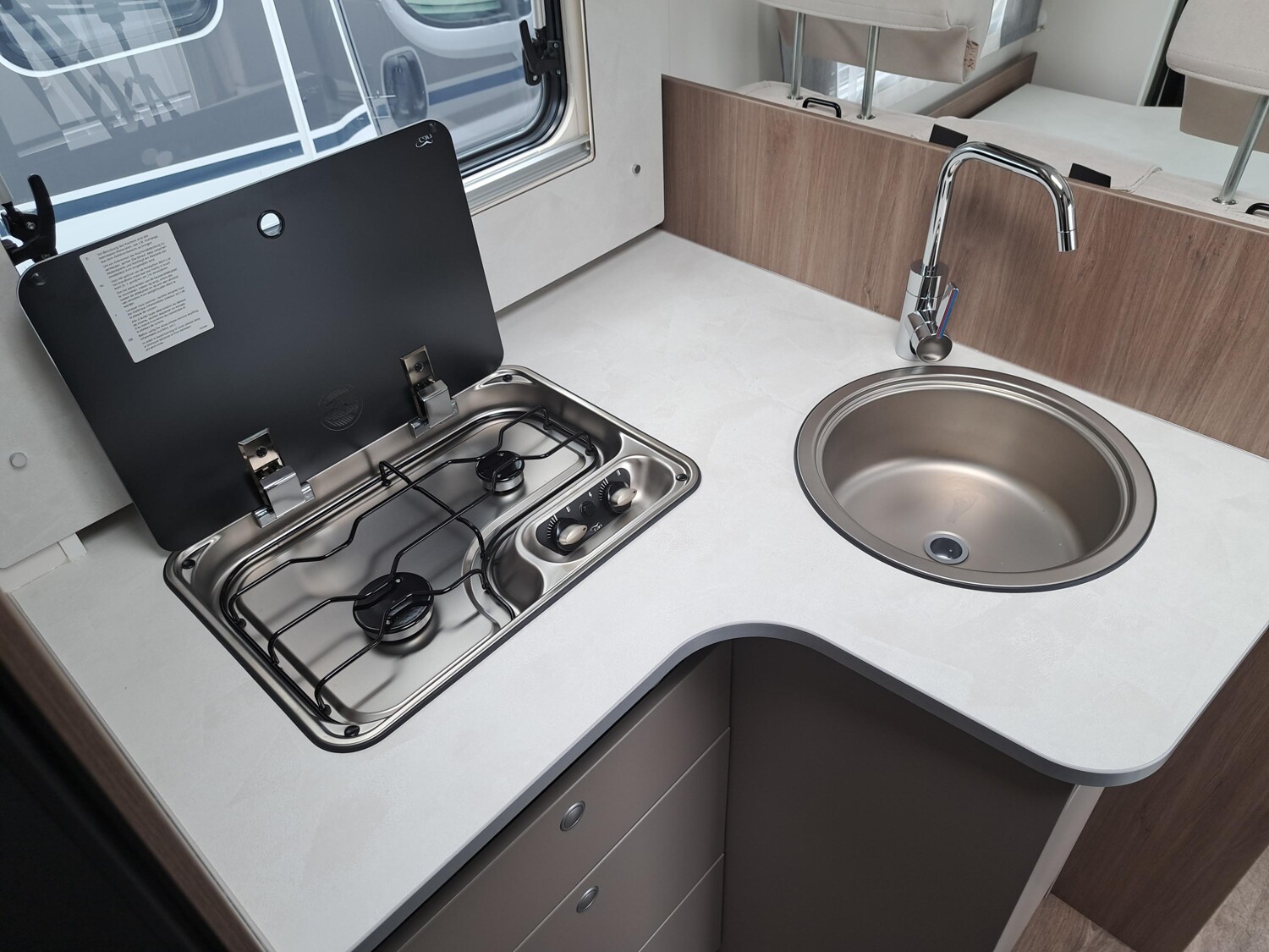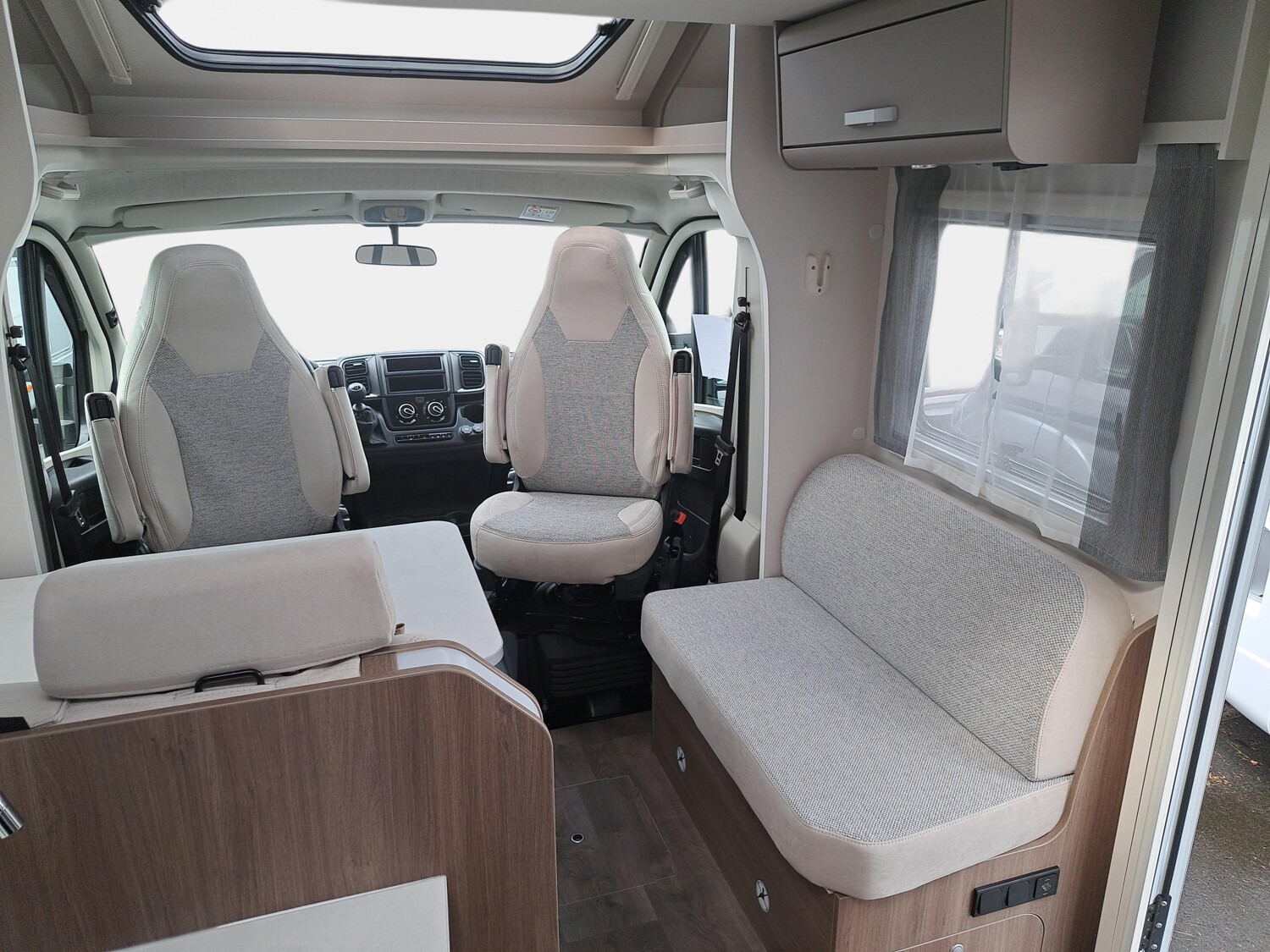 - Pro+ Paket (Optik Paket 1, Optik Paket 2, Chassisfarbe Artense Grau Metallic, Basic Paket, Faltverdunkelung Fahrerhaus, Fenster in Fronthaube, Großer Kühlschrank 156 l mit separatem Frosterfach 29 l, Abwassertank isoliert, Markise 4,5 m, TV Paket, Rahmenfenster, Design Applikation Heck, Zweite Außenstauraumklappe, Beklebung pro+)