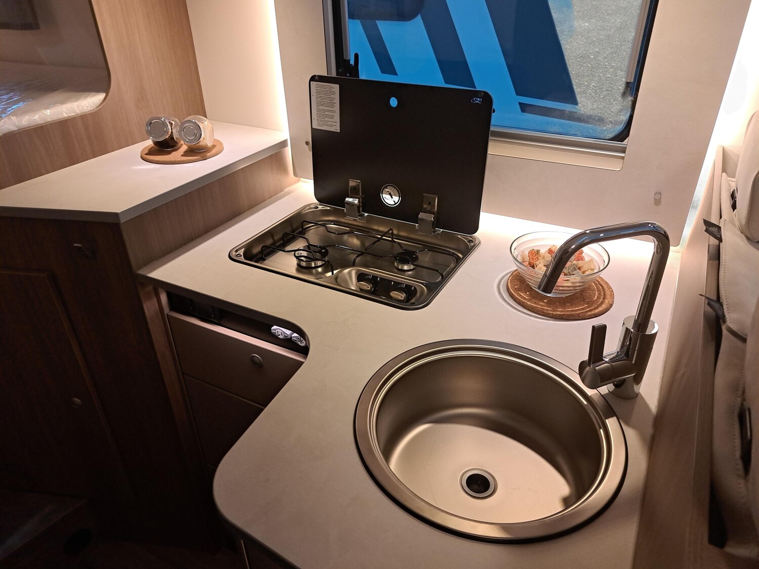 mit separatem Frosterfach 29 l, Abwassertank isoliert, Rahmenfenster, Marki