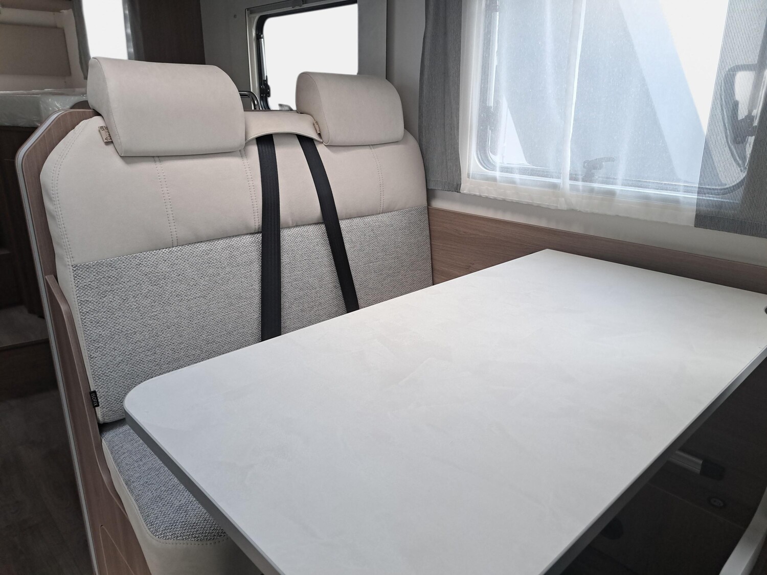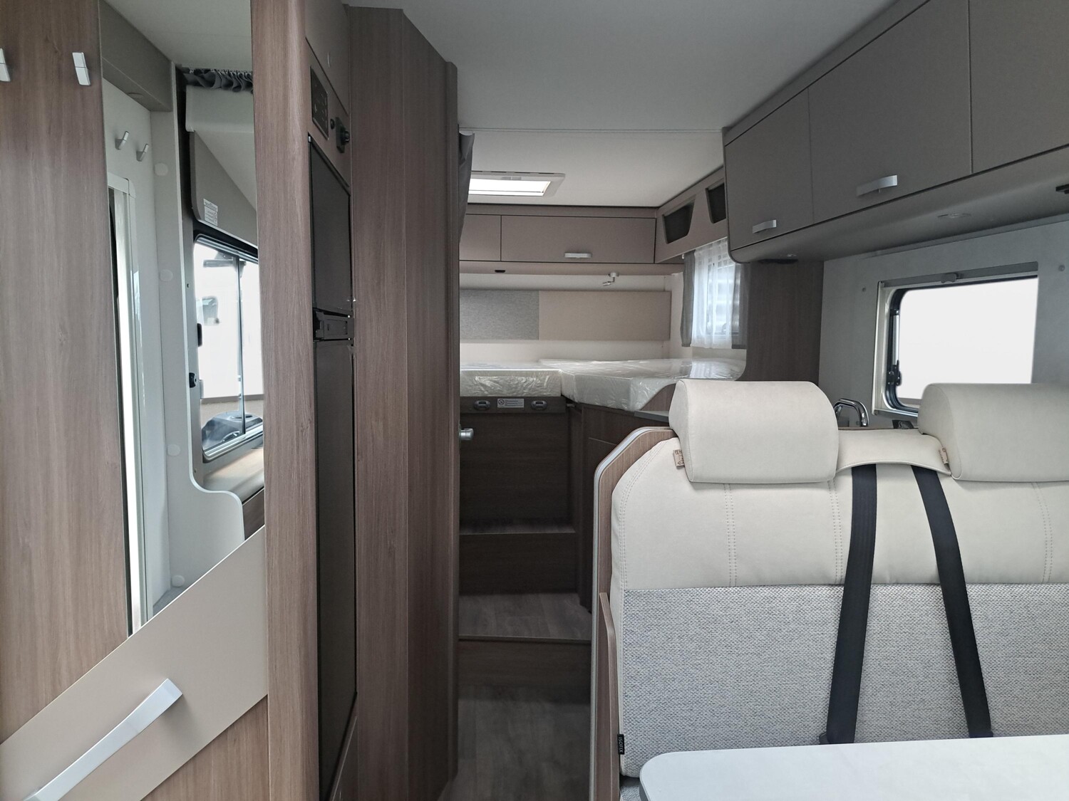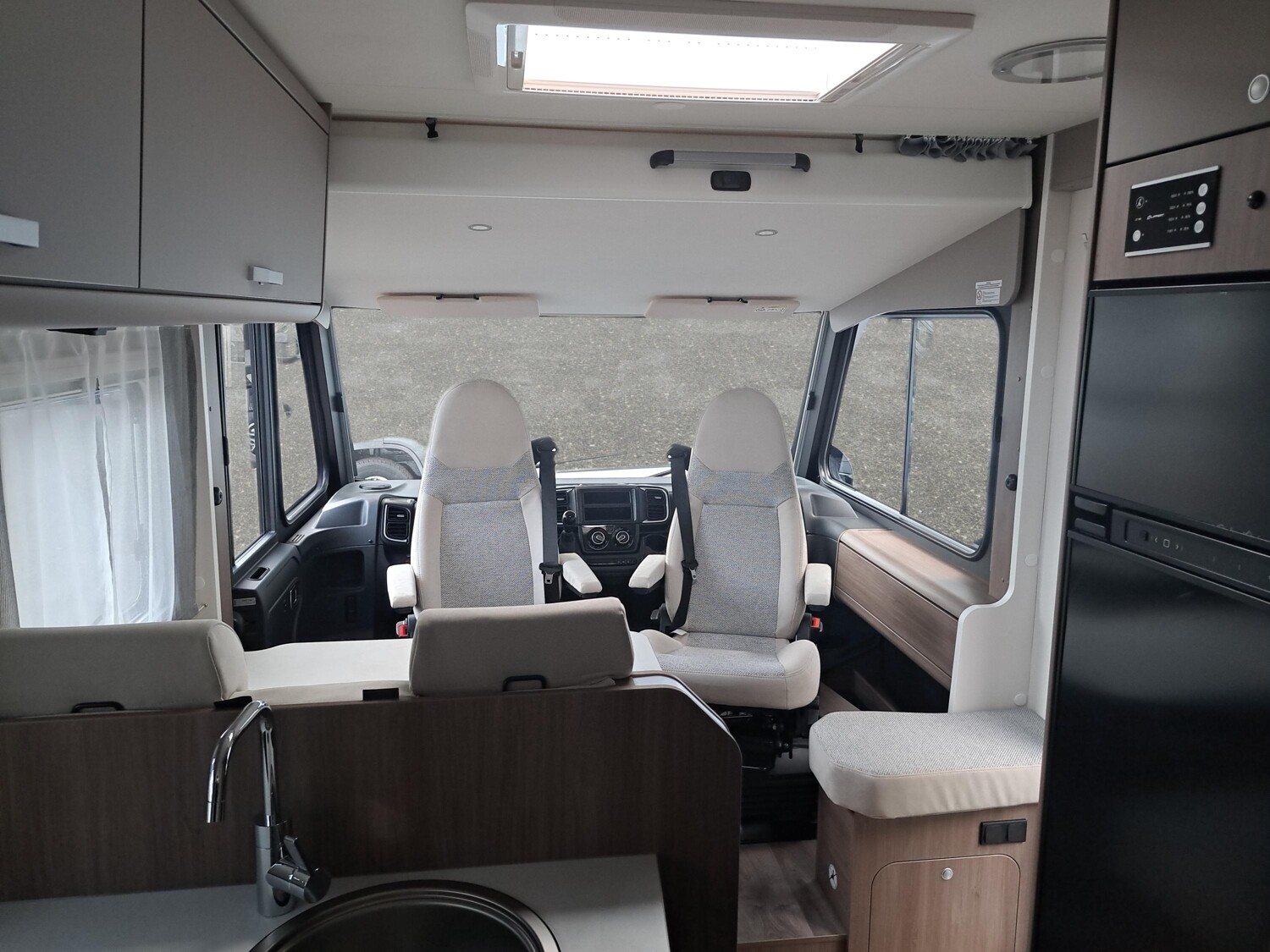 - pro+ Paket (Basic Paket, Optik Paket 2, TV Paket, großer Kühlschrank 156 l mit separatem Frosterfach 29 l, Abwassertank isoliert, Rahmenfenster, Markise 4,5 m, Design Applikation Heck, Zweite Außenstauraumklappe, Beklebung pro+)