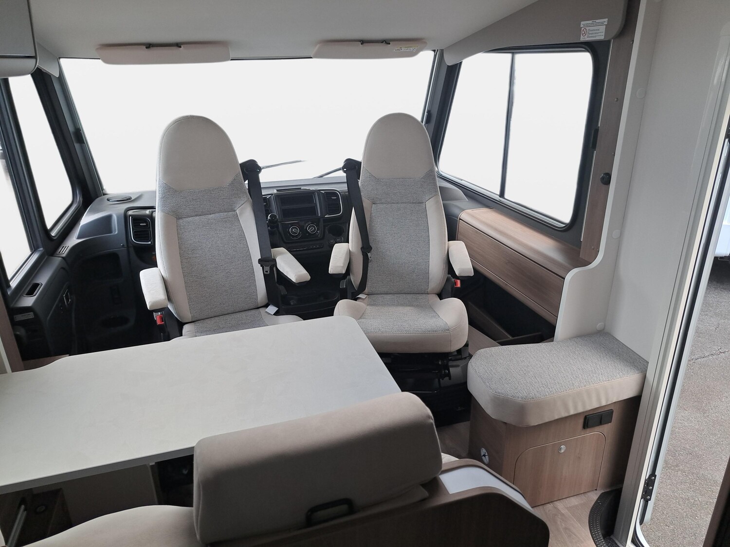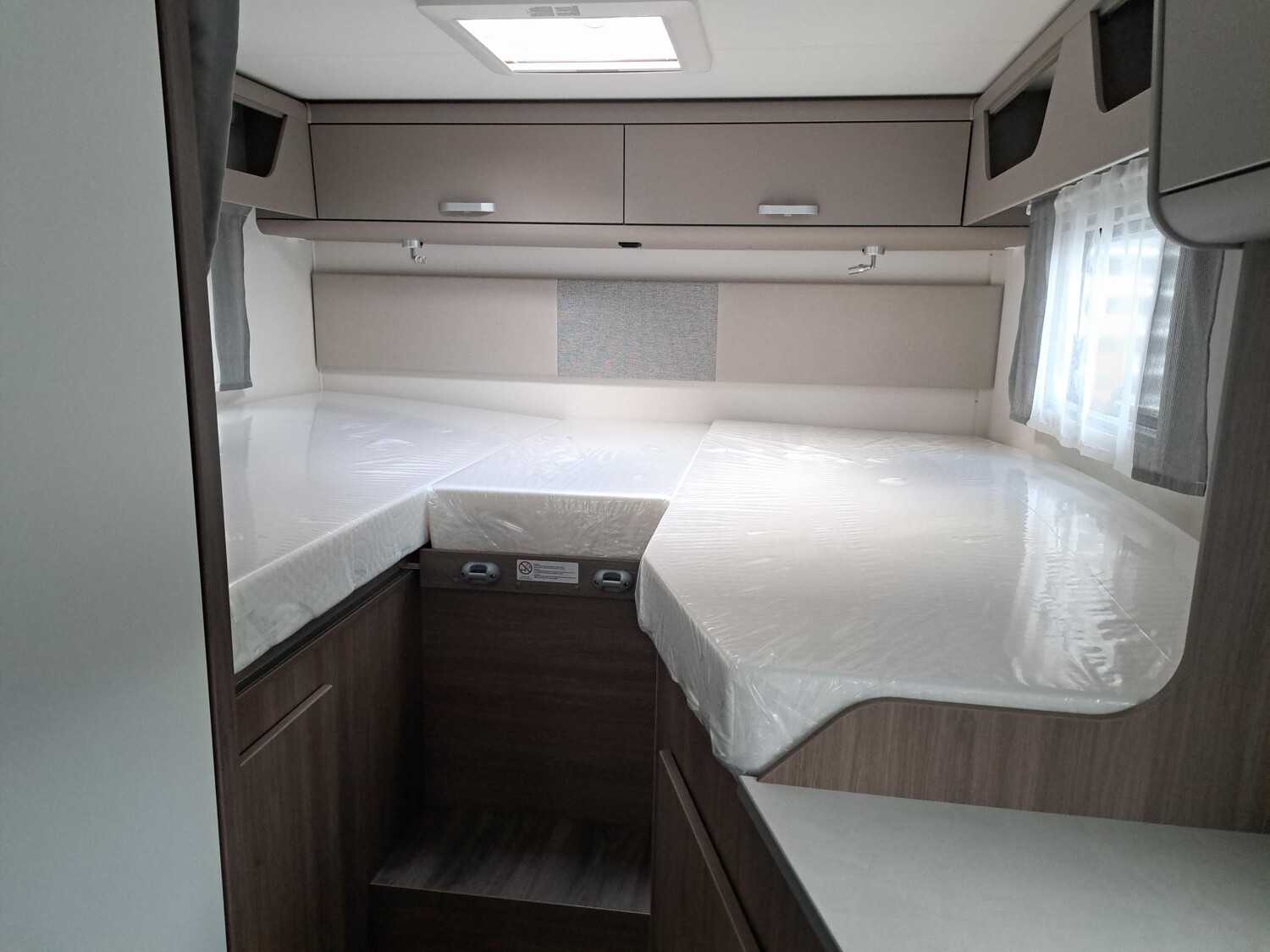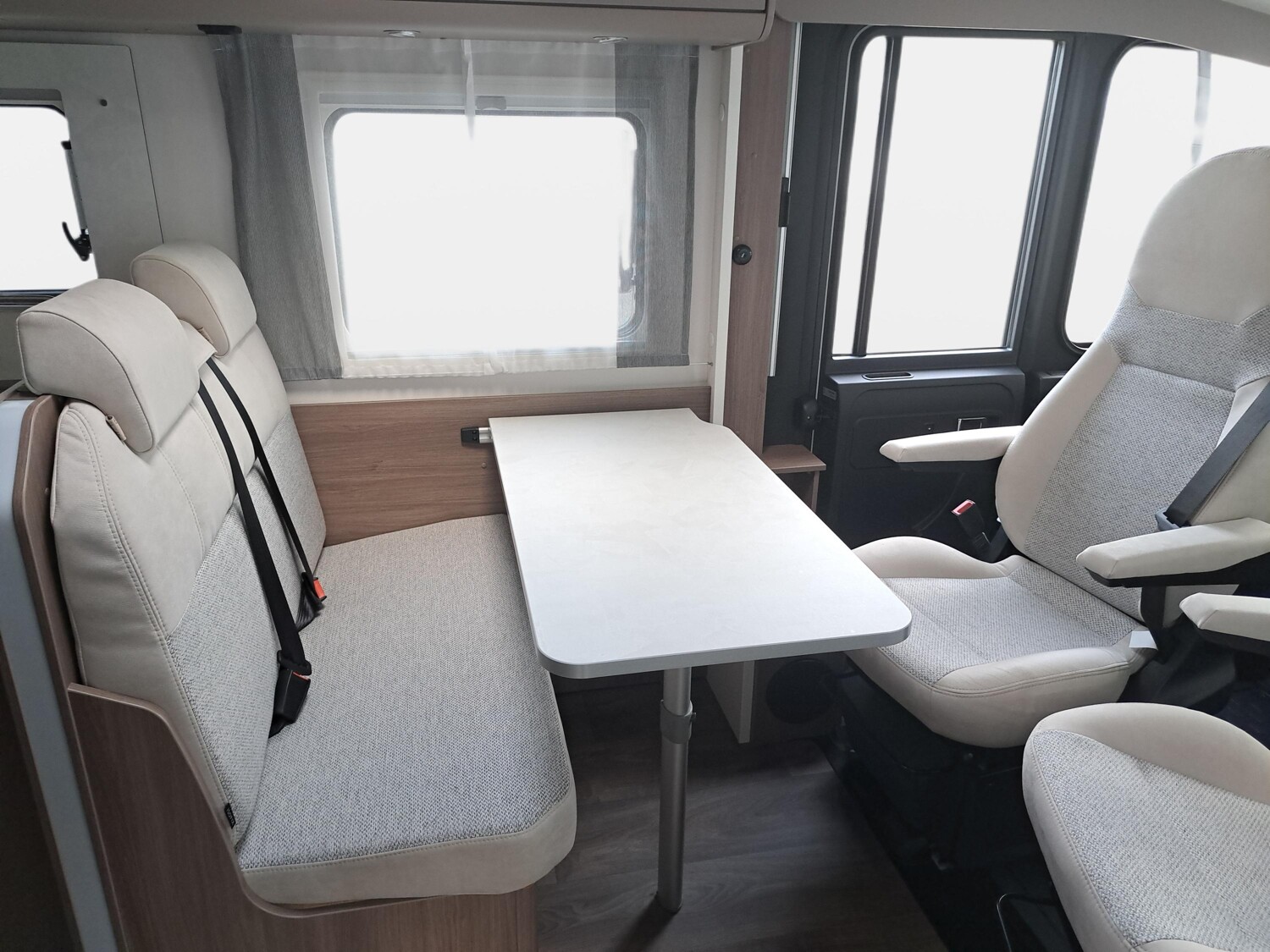 - pro+ Paket (Basic Paket, Optik Paket 2, TV Paket, großer Kühlschrank 156 l mit separatem Frosterfach 29 l, Abwassertank isoliert, Rahmenfenster, Markise 4,5 m, Design Applikation Heck, Zweite Außenstauraumklappe, Beklebung pro+)