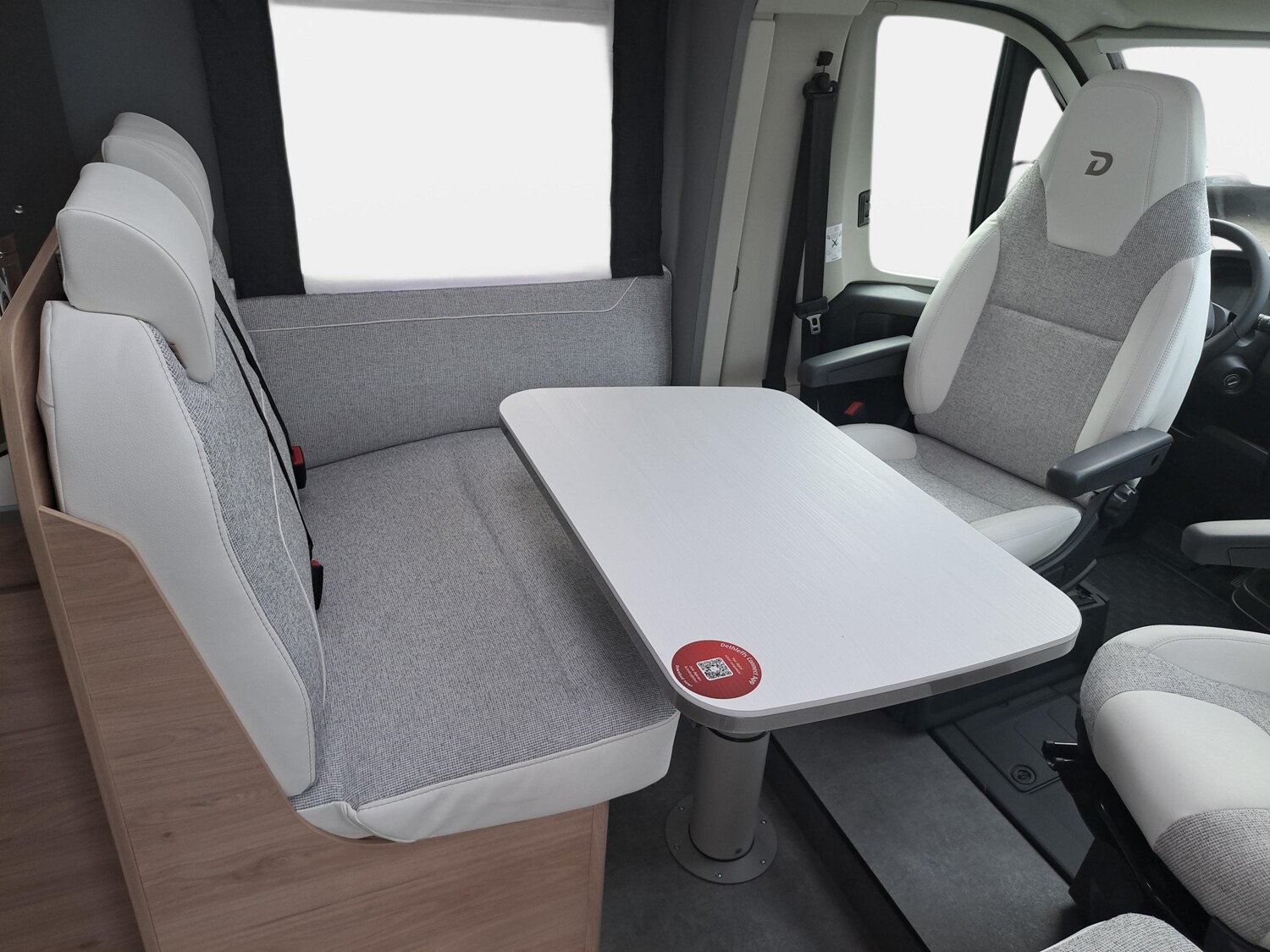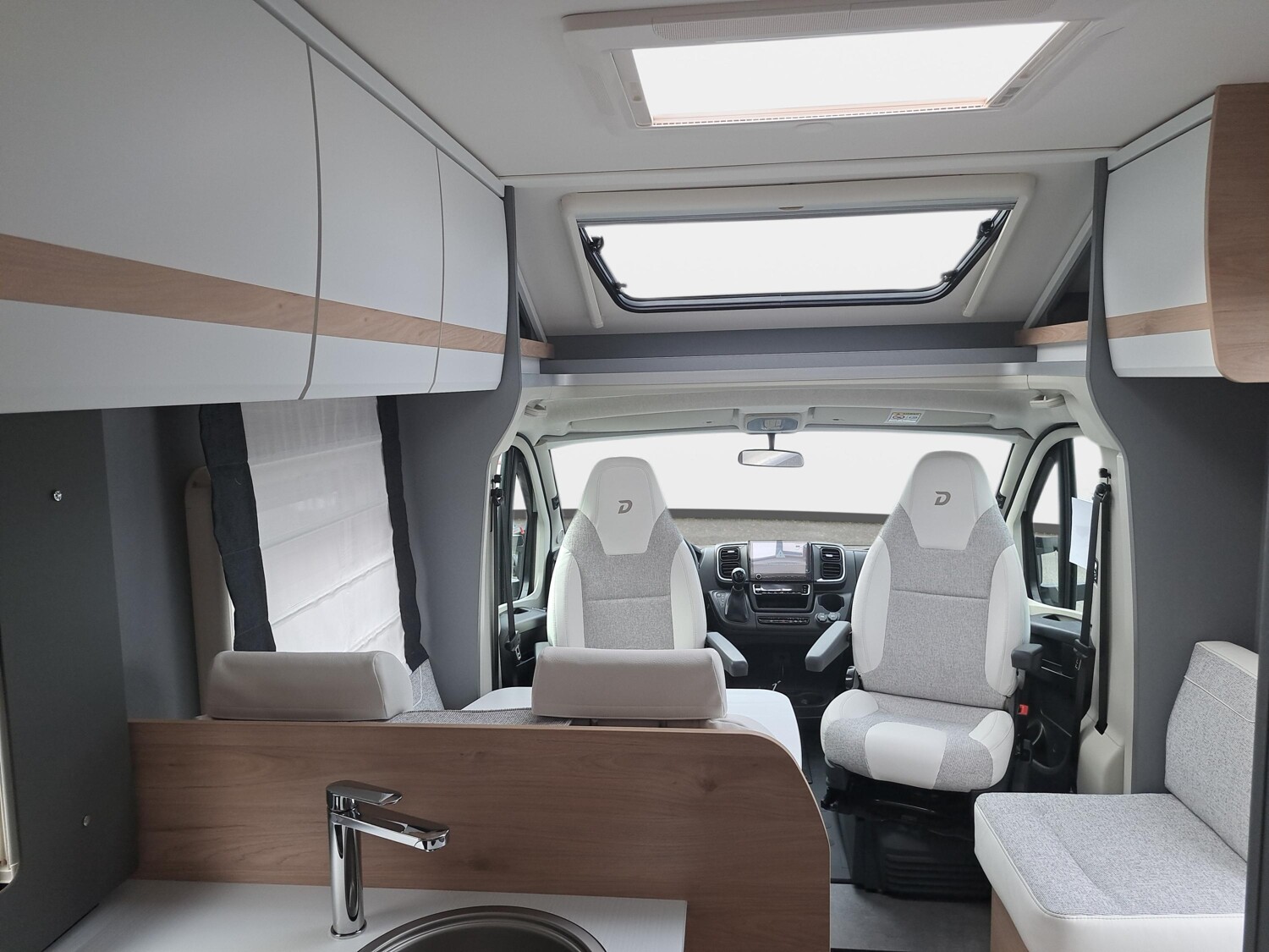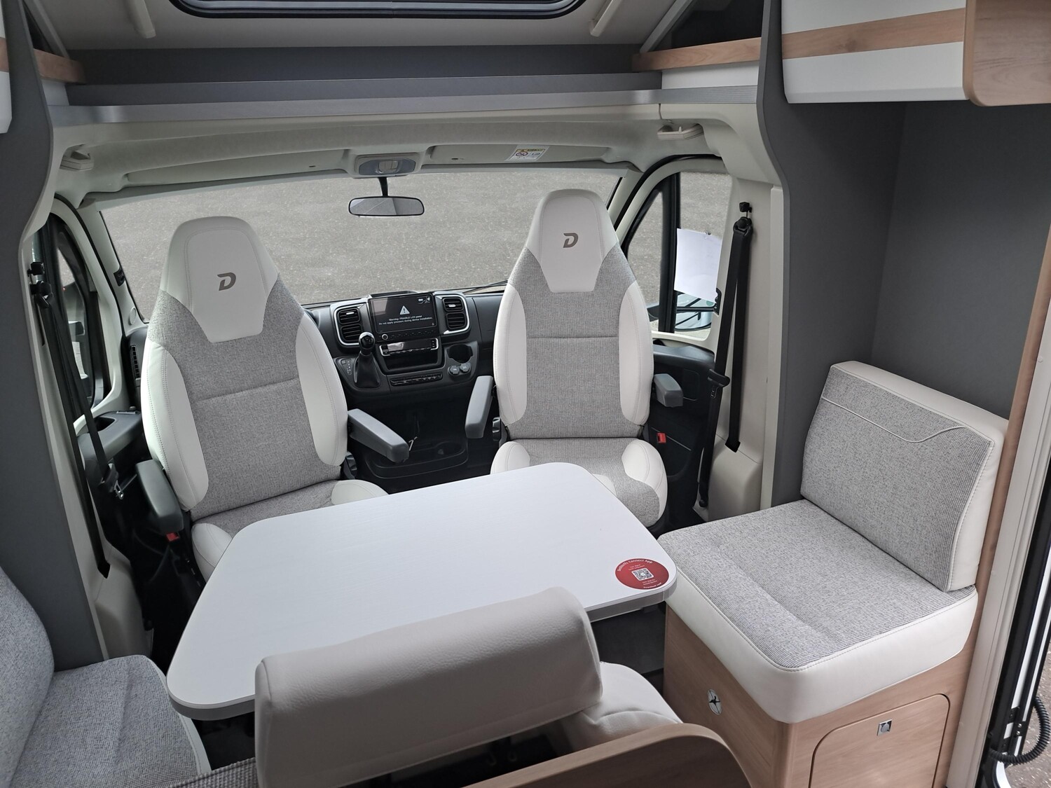 - Active-Paket T 6812 EB (Ausstellfenster in der T-Haube, Wohnraumtür mit Fenster inkl. Verdunkelung und Zentralverriegelung (inkl. Fahrerhaustür), Verdunklungsjalousien im Fahrerhaus, Panorama-Dachhaube 70 x 50 cm im Wohnraum, Light Moments: Indirekte Ambientebeleuchtung über den Dachstauschränken, Light Moments: Indirekte Wandflächen-Ambientebeleuchtung, Stauraum-Türe links, Doppelverglaste Rahmenfenster mit Verdunklung & Mückenschutz inkl. verkleidete Küchenrückwand, Textilleder-Wohnwelt Heron, Vorbereitung Solar, Light Moments: Küchenrückwand beleuchtet, Vorbereitung Dach-Klimaanlage, Digitales Bedienelement für Warmluftheizung, Dethleffs Naviceiver inkl. DAB+, Truck Navigation, Wireless Apple CarPlay und Android Auto, Rückfahrkamera (Einfachkamera), Vorbereitung SAT-Anlage, Active Außendesign (Heckleuchtenträger mit schwarzem Diffusor, erweiterte Beklebung, Skidplate "rot"), Bettumbau Einzelbetten zu Doppelbett, Gemütliche L-Sitzgruppe mit freistehendem, absenkbarem Tischfuß und 2 integrierte 3-Punkt-Gurte, Duschrost, Cassettenmarkise Omnistor 4.0 m (manuell))