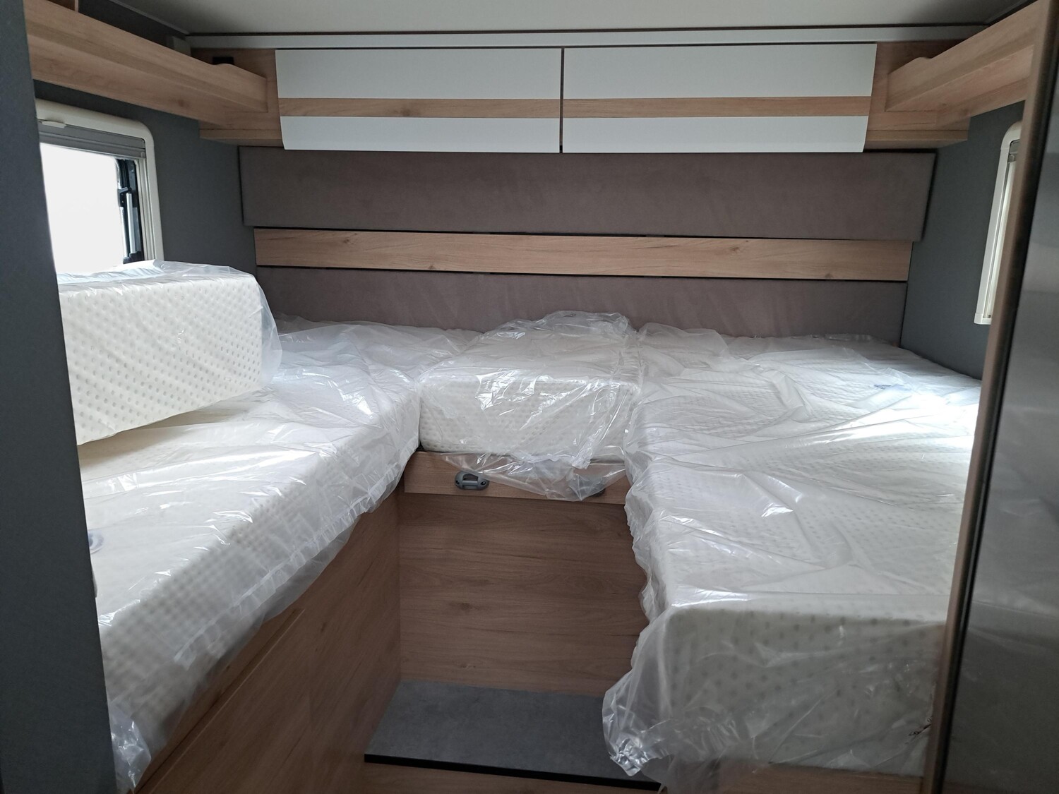 AusstattungFahrzeugABS Einparkhilfe ESP Multifunktionslenkrad Navigationssystem Radio DAB-Radio Russpartikelfilter Servolenkung Tempomat Zentralverriegelung InnenLederlenkrad Rollrost WC Doppelbett Einzelbetten L-Sitzgruppe AussenGFK Heckgarage Markise ExtrasSAT-Antenne TV Beschreibung