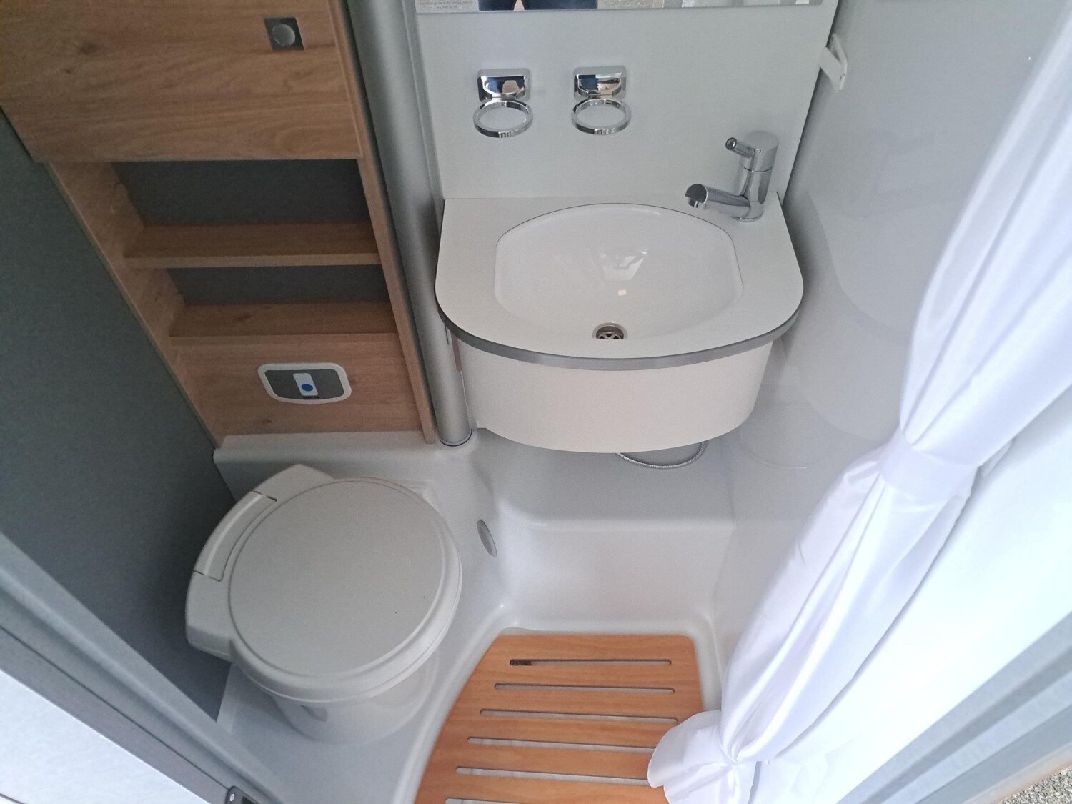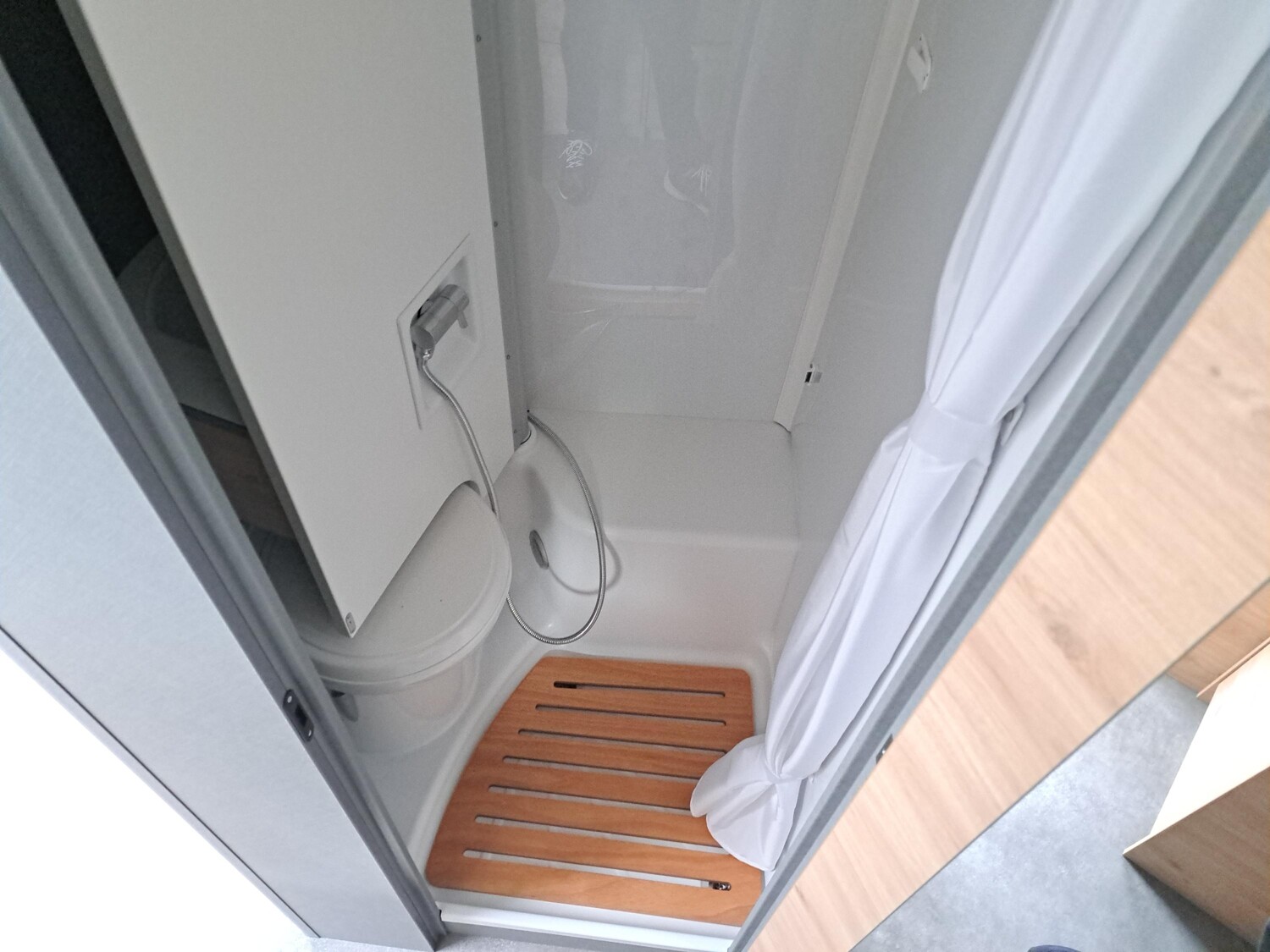 absenkbarem Tischfuß und 2 integrierte 3-Punkt-Gurte, Duschrost, Cassettenm