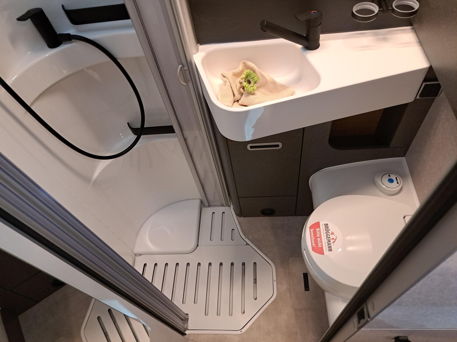 enEinlegeboden in der Dusche für ebenen LaufbodenHYMER-Smart-Battery-System