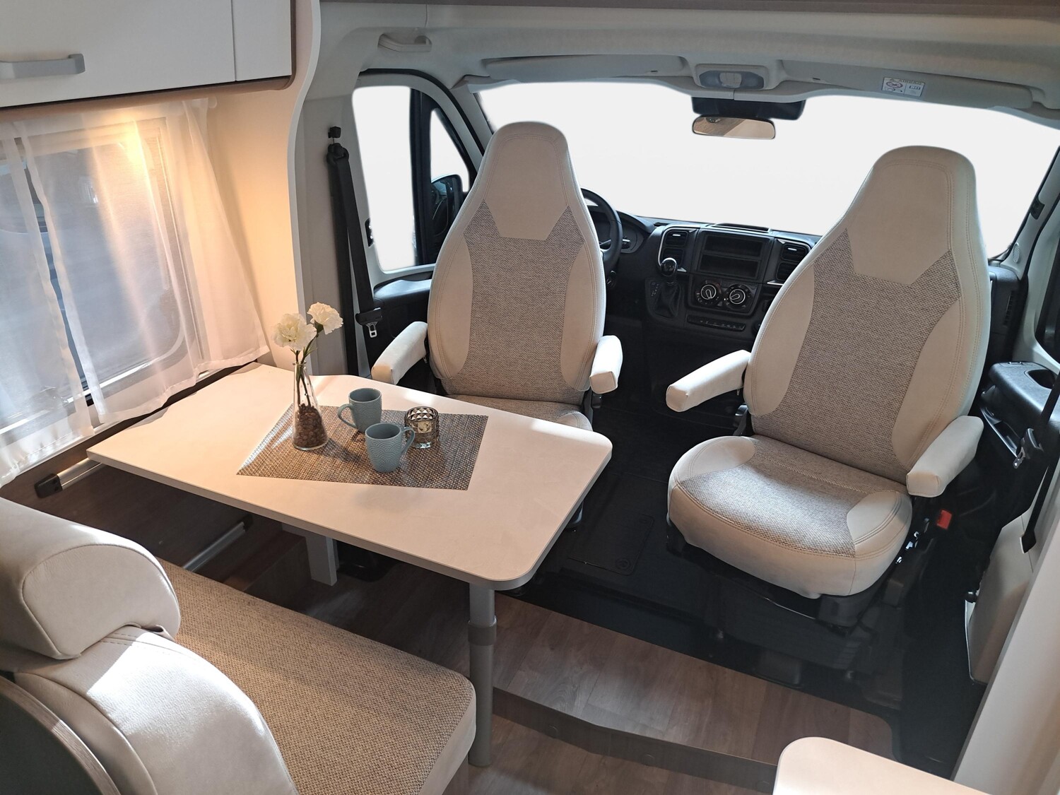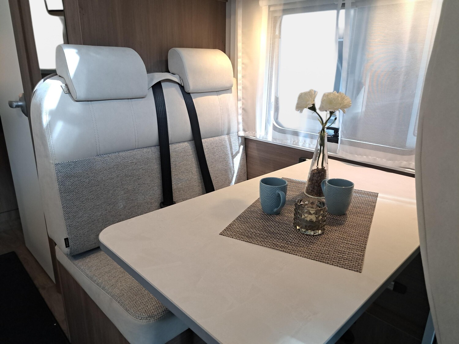 - pro+ Paket V339 (Optik Paket 1, Optik Paket 2, Basic Paket, Chassisfarbe Artense Grau Metallic, Faltverdunkelung Fahrerhaus, Fenster in Fronthaube, Sonderfarbe Dachstauschrankklappen und Türen in Cosy White, Beklebung pro+, Markise 4 m, TV Paket, Abwassertank isoliert)