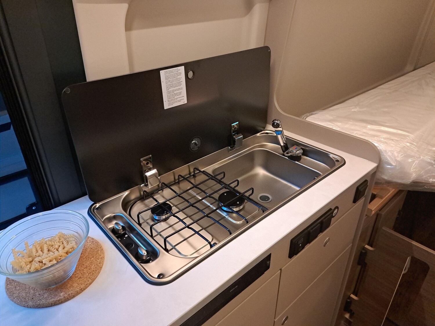 -Pannenset</li><li>Abwassertank isoliert und beheizt</li><li>Holzrost in der