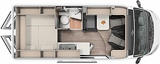- Pro+ Paket (Optik Paket 1, Optik Paket 2, Basic Paket, Dieseltank 90l, Faltverdunklung Fahrerhaus, Rahmenfenster, Markise 3,75m schwarz, Beklebung Pro+, LED-Beleuchtung integriert über den Dachschränken, Panoramafenster über Fahrer- und Beifahrersitz, Heckdachstauschrank umlaufend)