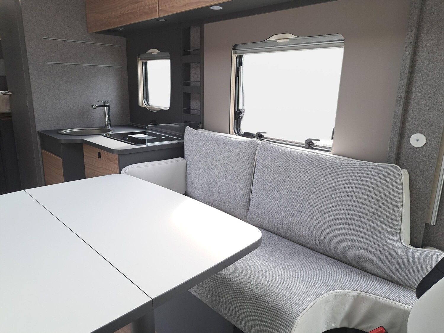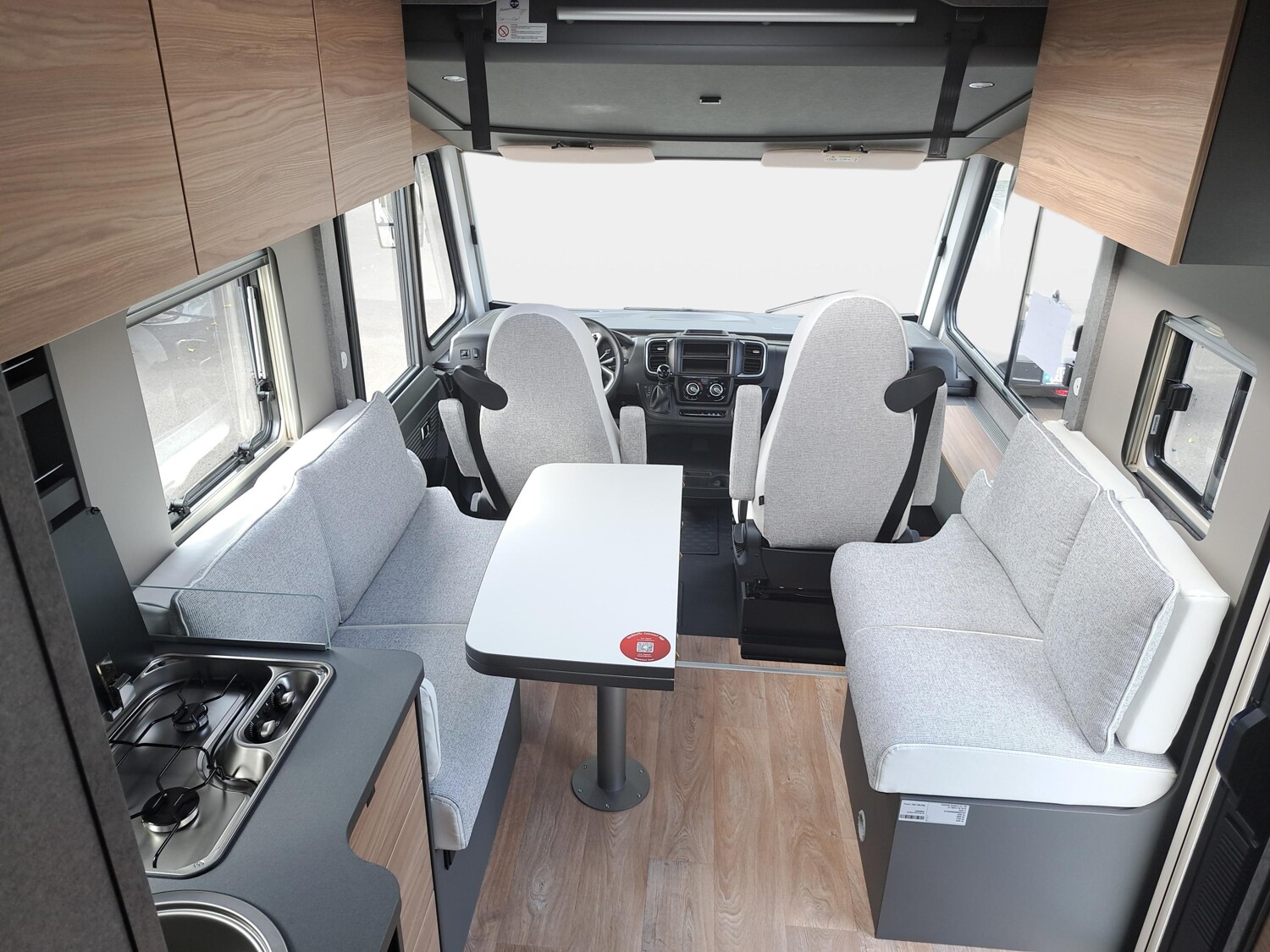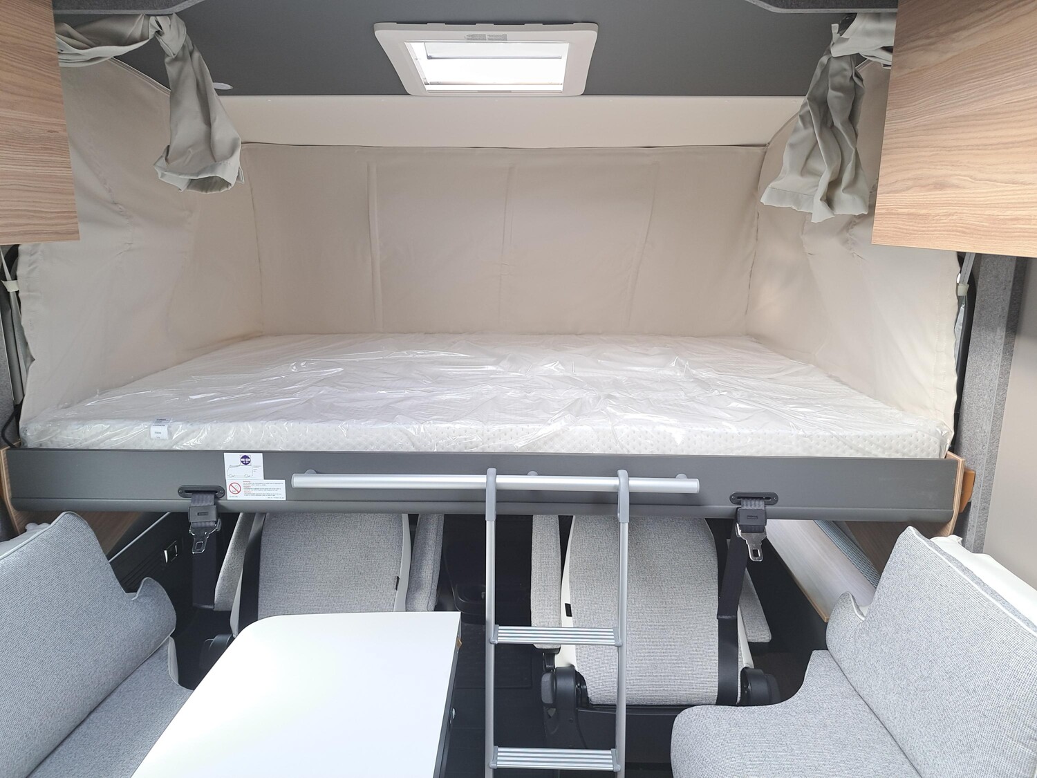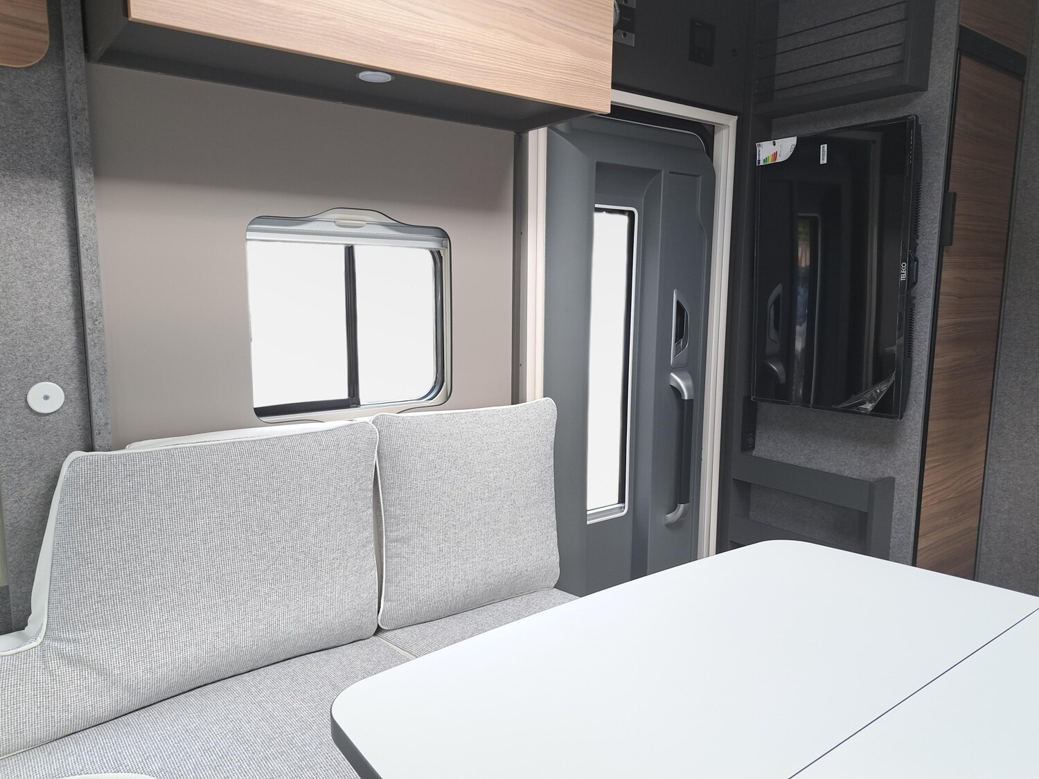 - Family-Paket I 7057 EBL (Wohnraumtür mit Fenster inkl. Verdunkelung und Zentralverriegelung (inkl. Fahrerhaustür), Light Moments: Indirekte Ambientebeleuchtung über den Dachstauschränken, Light Moments: Indirekte Wandflächen-Ambientebeleuchtung, Light Moments: Küchenrückwand beleuchtet, Light Moments: Indirekte Beleuchtung im Badezimmer mit beleuchteter Duschkonsole, Radioantenne DAB+ auf dem Dach montiert, Vorbereitung für Radiosystem inkl. Soundpaket im Fahrerhaus, Light Moments: Eingangsmodul mit indirekter Beleuchtung, Bettumbau Einzelbetten zu Doppelbett)
