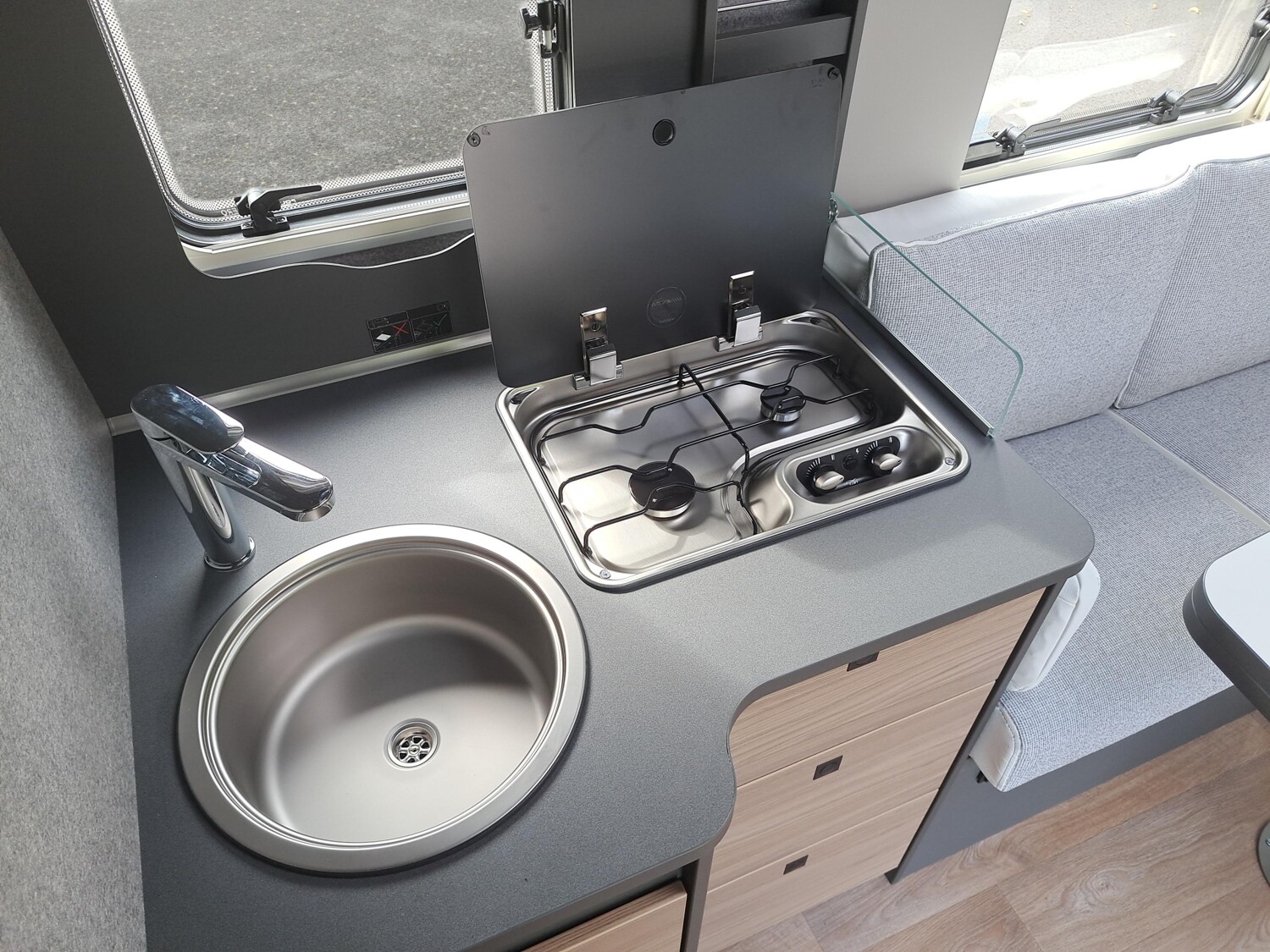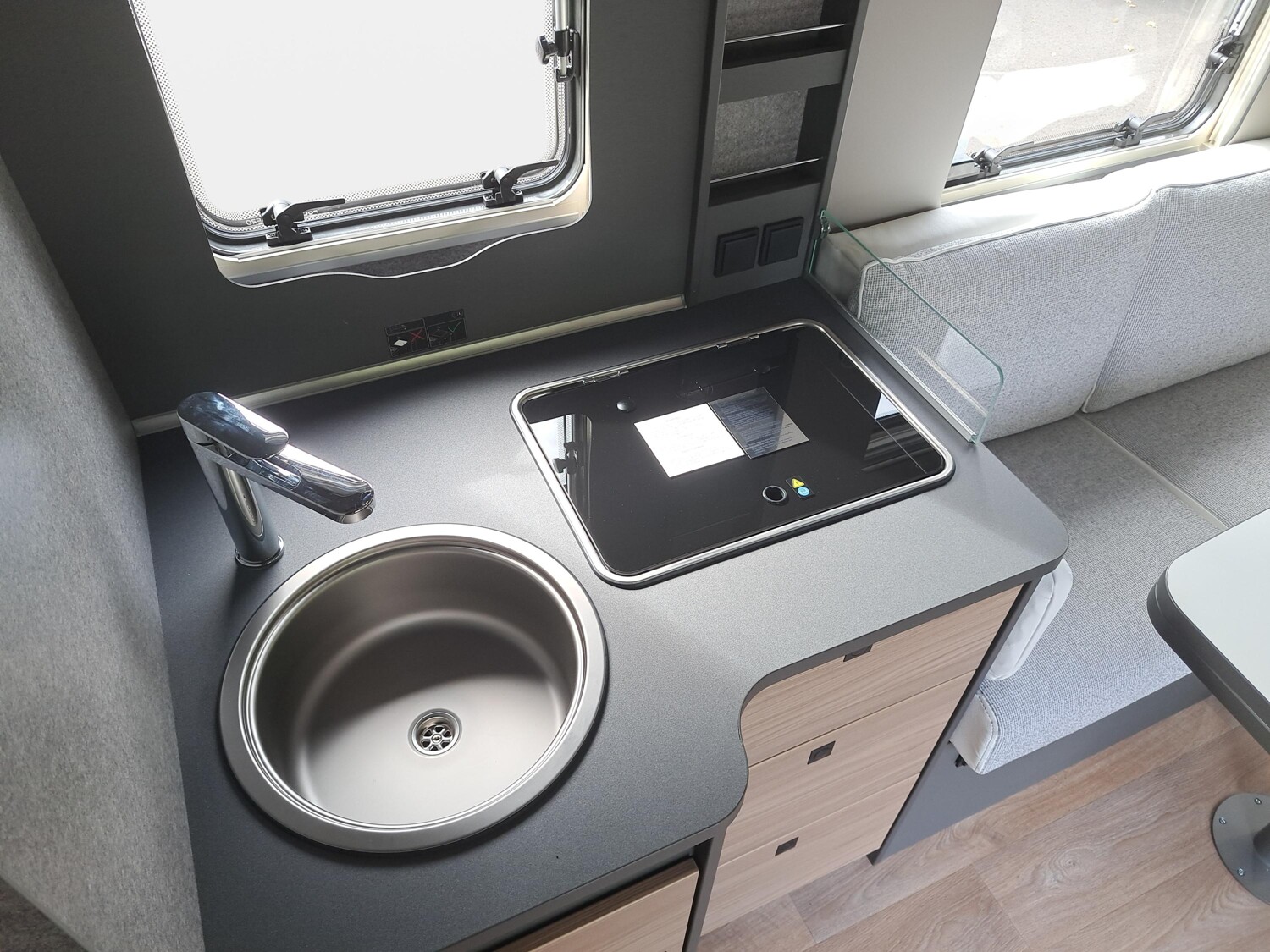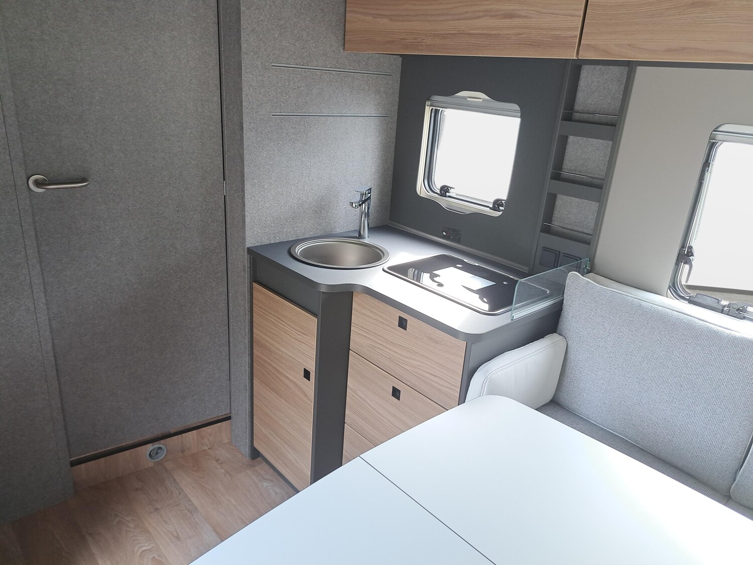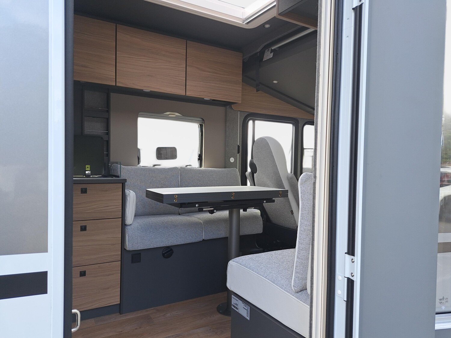 - Family-Paket I 7057 EBL (Wohnraumtür mit Fenster inkl. Verdunkelung und Zentralverriegelung (inkl. Fahrerhaustür), Light Moments: Indirekte Ambientebeleuchtung über den Dachstauschränken, Light Moments: Indirekte Wandflächen-Ambientebeleuchtung, Light Moments: Küchenrückwand beleuchtet, Light Moments: Indirekte Beleuchtung im Badezimmer mit beleuchteter Duschkonsole, Radioantenne DAB+ auf dem Dach montiert, Vorbereitung für Radiosystem inkl. Soundpaket im Fahrerhaus, Light Moments: Eingangsmodul mit indirekter Beleuchtung, Bettumbau Einzelbetten zu Doppelbett)