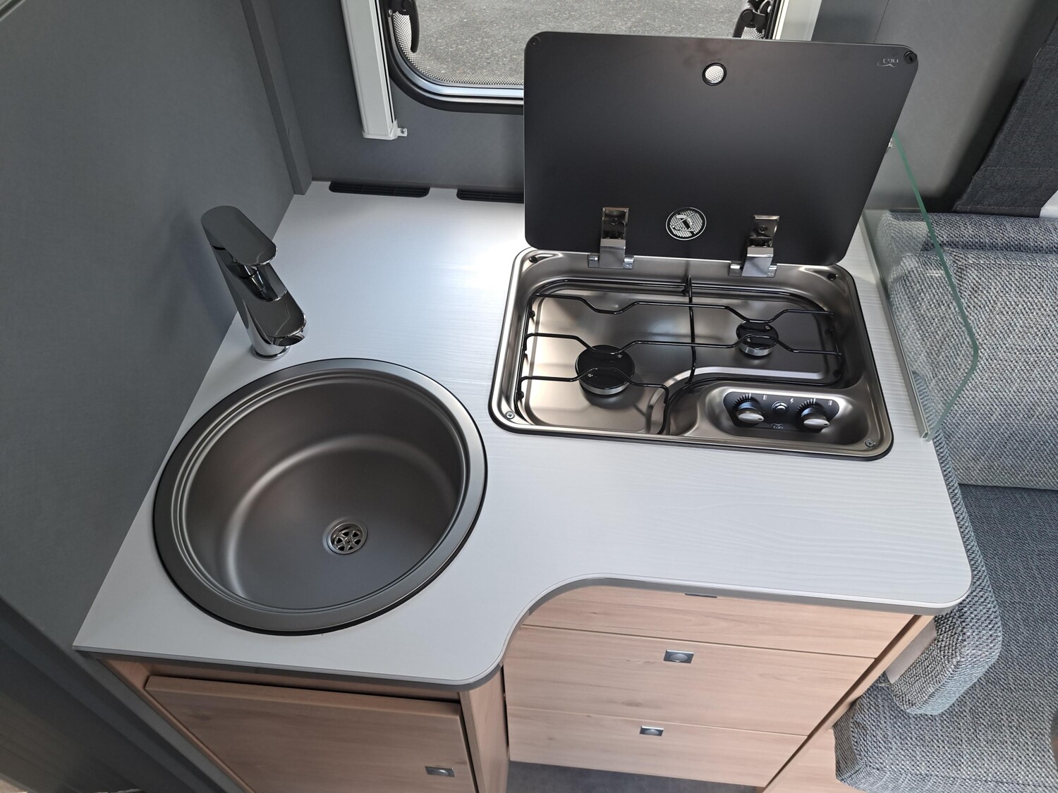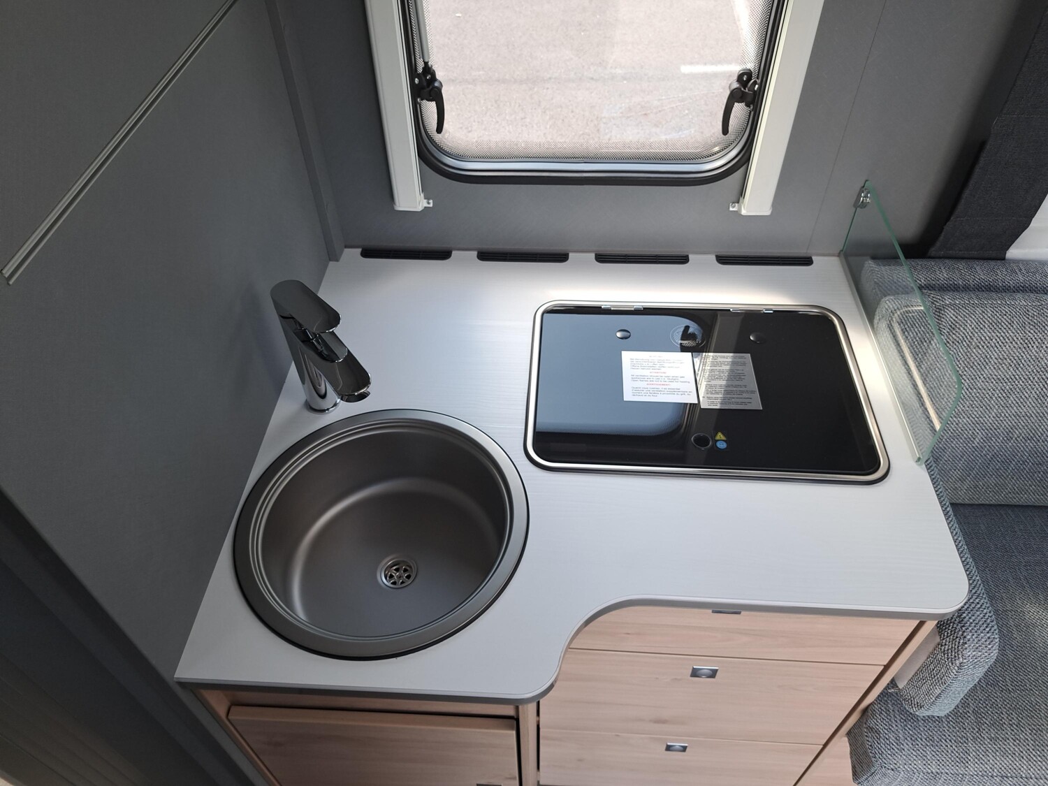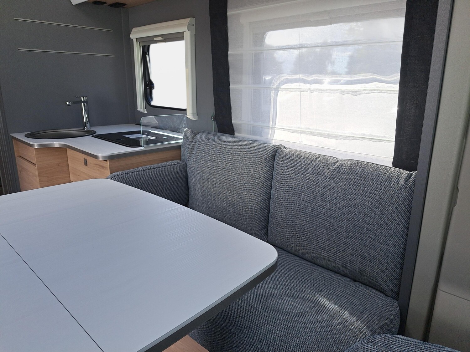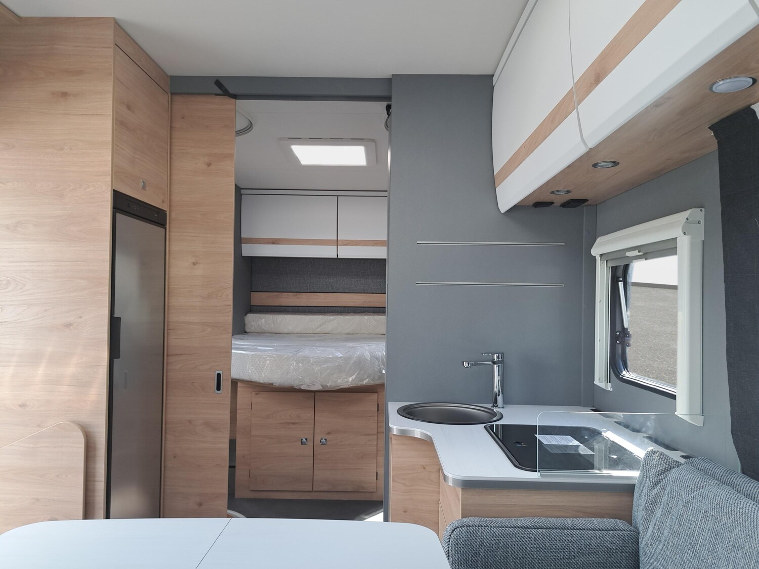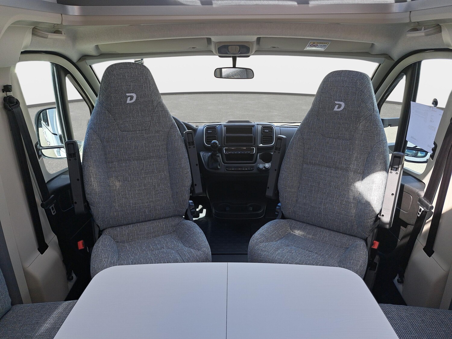 - Family-Paket T 6752 DBL (Ausstellfenster in der T-Haube, Wohnraumtür mit Fenster inkl. Verdunkelung und Zentralverriegelung (inkl. Fahrerhaustür), Verdunklungsjalousien im Fahrerhaus, Panorama-Dachhaube 70 x 50 cm im Wohnraum, Light Moments: Indirekte Ambientebeleuchtung über den Dachstauschränken, Light Moments: Indirekte Wandflächen-Ambientebeleuchtung, Stauraum-Türe links)