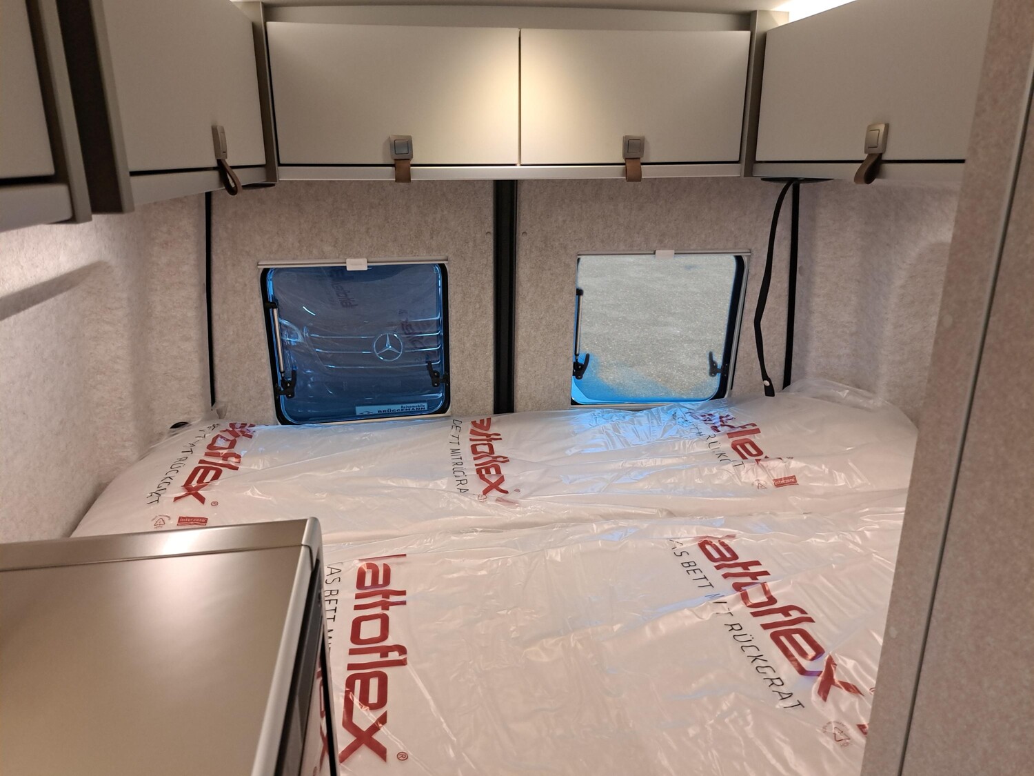 - Wohnkomfort-Paket GCS (Ambient-Light-System: Mehr-Ebenen Lichtsystem mit dynamischer und individueller Steuerung der Beleuchtung (inkl. Lichttemperatur) sowie stimmungsvoller Sockelbeleuchtung, Wohnwelt "HOME" (2 Kissen und Stofftasche), Spannbettlaken nach Maß für Heckbetten individuell an Matratzen angepasst, Einlegeboden mit Korkoberfläche)
