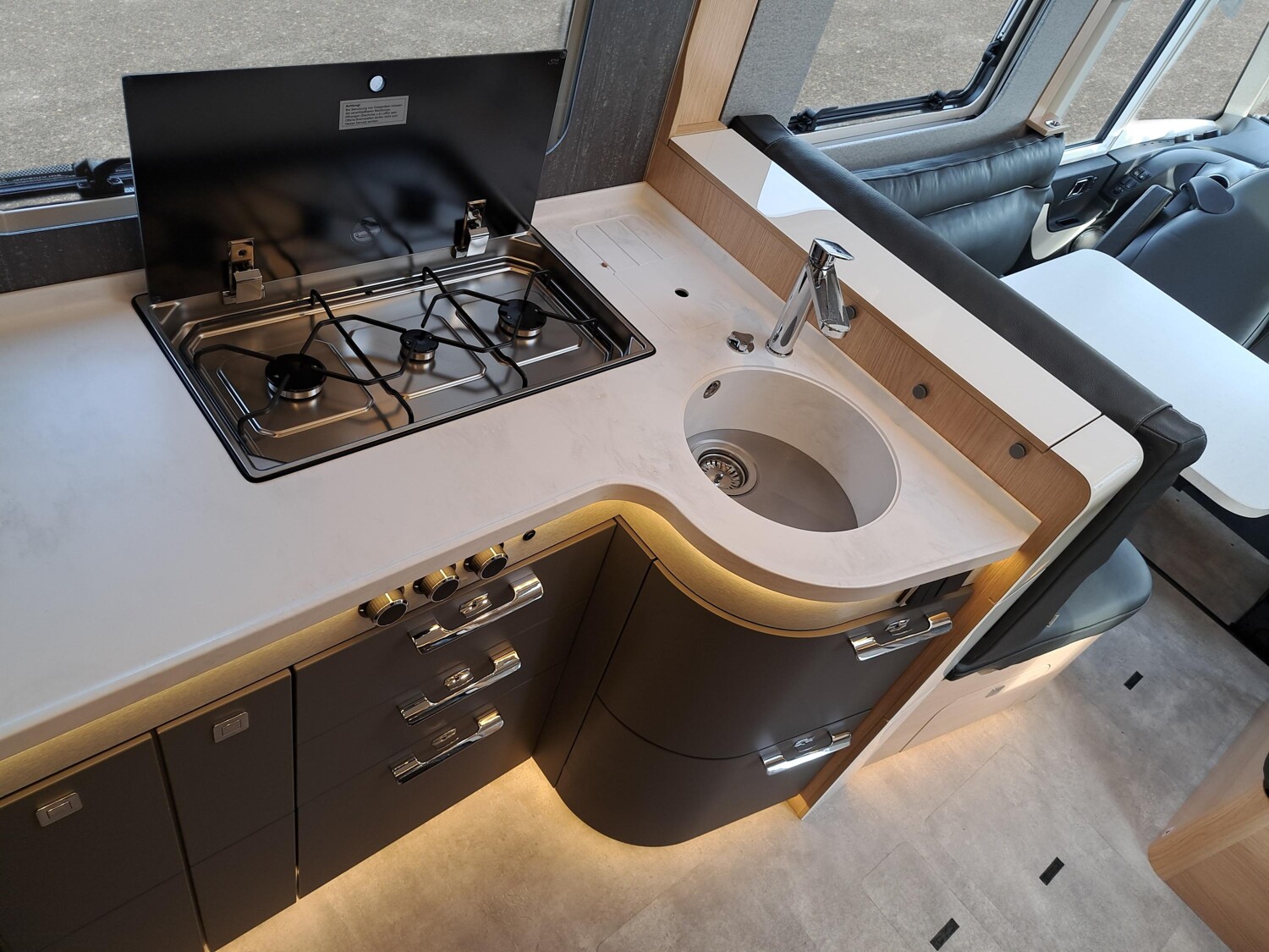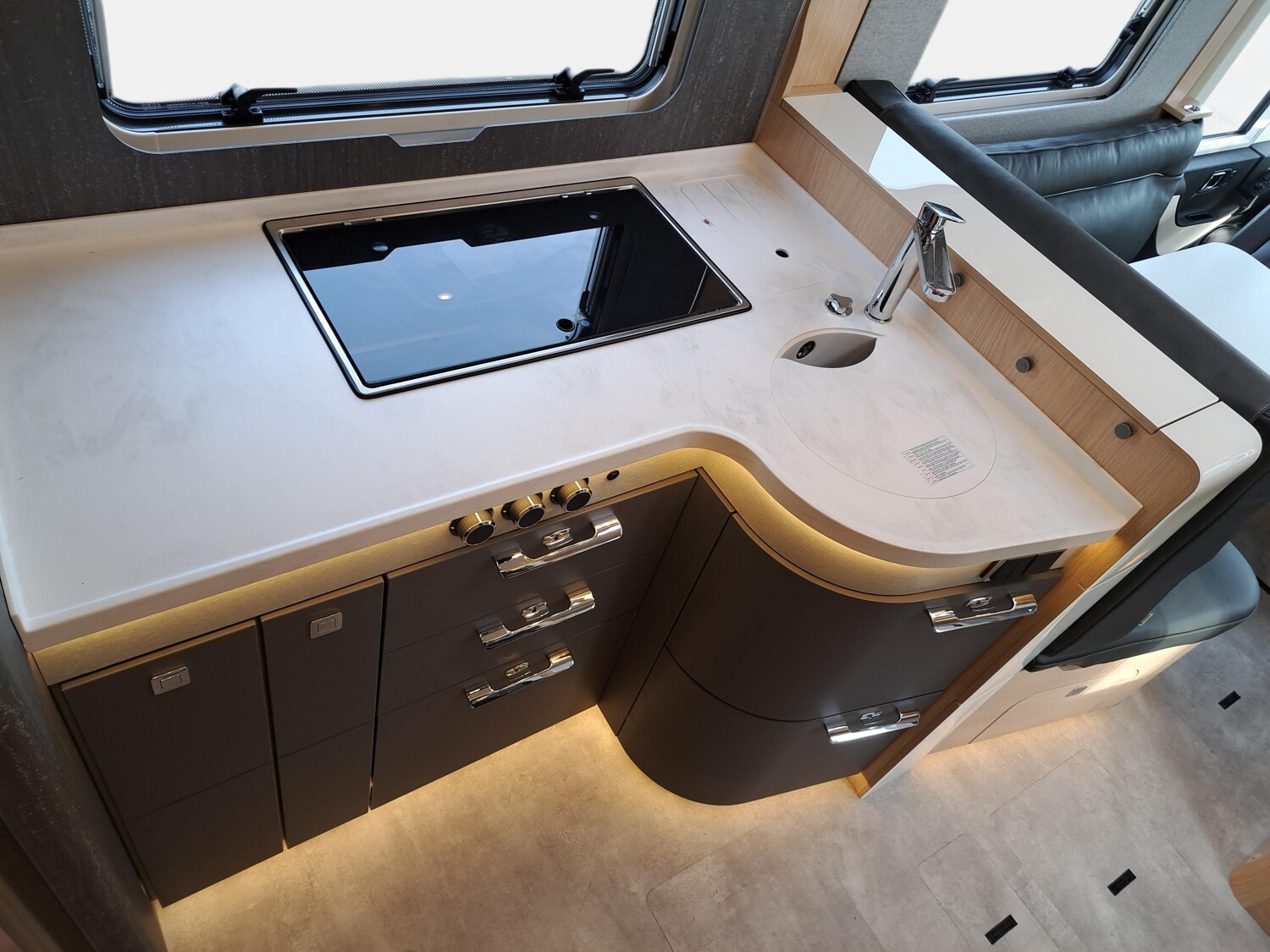 - BlackLine Edition (Mercedes-Benz Sprinter 5,5 t - 417 CDI - 125 KW/170 PS - Euro VI-E, Außenfarbe Crystal-Silver-Metallic, HYMER Premium Voll-LED Scheinwerfer, Außenspiegel abgehängt in Schwarz, elektrisch beheiz- und verstellbar, inkl. Weitwinkelspiegel, Ablage für Smartphones inkl. wireless charging Funktion und Ladestandsanzeige, Ladepaket Instrumententafel mit 2 x USB-C Stecker 5V / 1x 12V-Steckdose, Lederlenkrad, vollautomatische Klimaanlage THERMOTRONIC, aktiver Abstands-Assistent DISTRONIC PLUS inkl. LenkradMultifunktionstasten, Verkehrszeichen-Assistent, Navigation & Smartphone-Integration für MBUX-System, Designbeklebung BlackLine, elektrische Dachmarkise inkl. dimmbarer LED-Beleuchtung, Gehäuse schwarz, 600 x 300 cm, elektrischer Rollladen im Bug inkl. Sichtschutzrollo für Frontschreibe (von unten nach oben zuziehbar) und Sonnenblendenfunktion, Schublade und Einlegewanne als Stauraum in der Sitzgruppe, Einlegeboden mit Holzoberfläche, 4 x 230 V / 1 x 12 V / 1 x Doppel-USB Zusatzsteckdosen sowie Wohnkomfortleuchten, HYMER Connect Sensoren-Paket inkl. 1x Gasfüllstandssensor, 1x Temperatursensor und 2x Kontaktsensor, Solaranlage 3 x 95 Watt mit Solarladeregler (MPPT) und Anzeige, Spannbettlaken nach Maß für Heckbetten individuell an Matratzen angepasst, automatische Gasflaschenumschaltanlage mit Crash Sensor und EisEx, Fußboden in Betonoptik, 4 Kissen mit Bezug, Gasfilter für automatische Gasflaschenumschaltanlage, Wasserfilter für Frischwassersystem, Smart Connect Wasserfüllstandsanzeige (in 1%-Schritten), 32" Smart LED-TV mit integrierten Lautsprechern, Fernbedienung, HYMER Smart-Multimedia-System mit Bluetooth (DVB-T/C, DVB-S2) und elektrischem Halter inkl. Receiver, 5G-WLAN-Router mit Außenantenne und Dual-SIM-Slot (SIM-Karte nicht inbegriffen))
