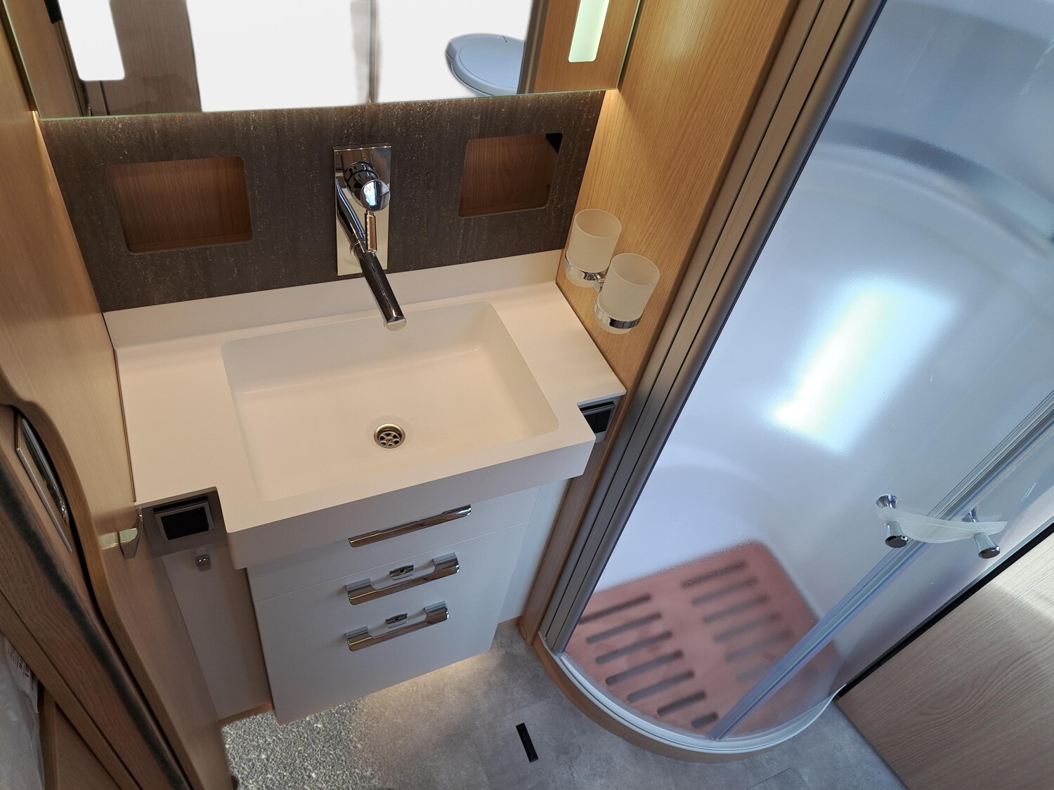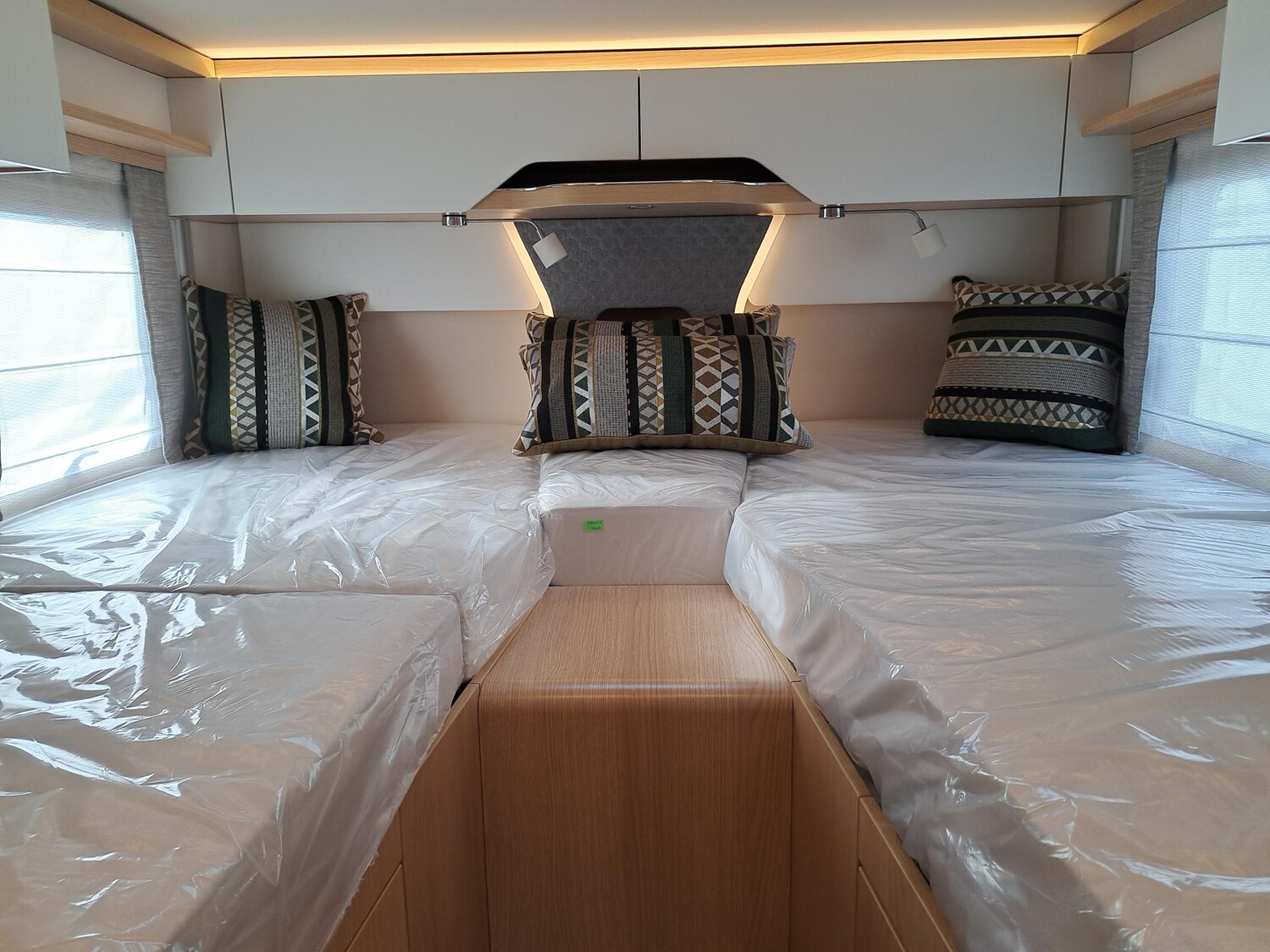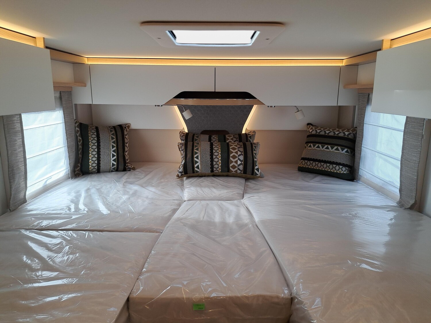 AusstattungFahrzeugABS Abstand-Assistent Notbrems-Assistent Verkehrszeichen-Assistent ESP Lichtsensor Multifunktionslenkrad Navigationssystem Radio DAB-Radio Russpartikelfilter Servolenkung Tempomat Zentralverriegelung InnenBackofen Doppelboden Leder Lederlenkrad Rollrost Sitzheizung WC Doppelbett Einzelbetten Hubbett Separate Dusche L-Sitzgruppe AussenAutark GFK Heckgarage Markise Solaranlage ExtrasSAT-Antenne TV Beschreibung