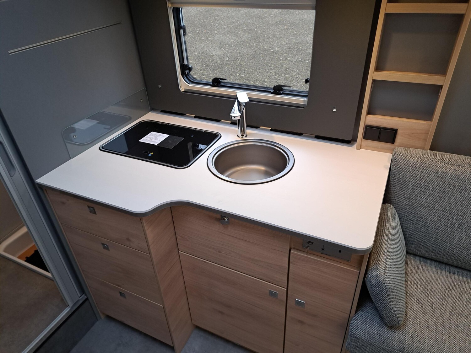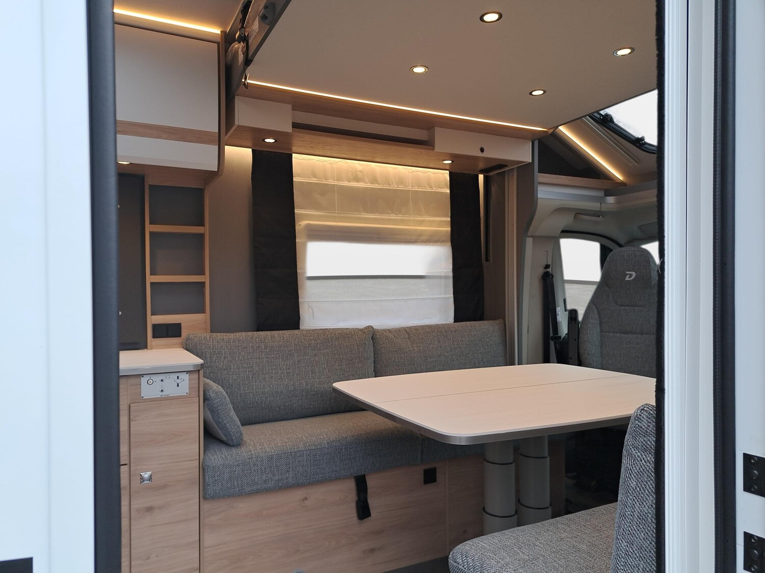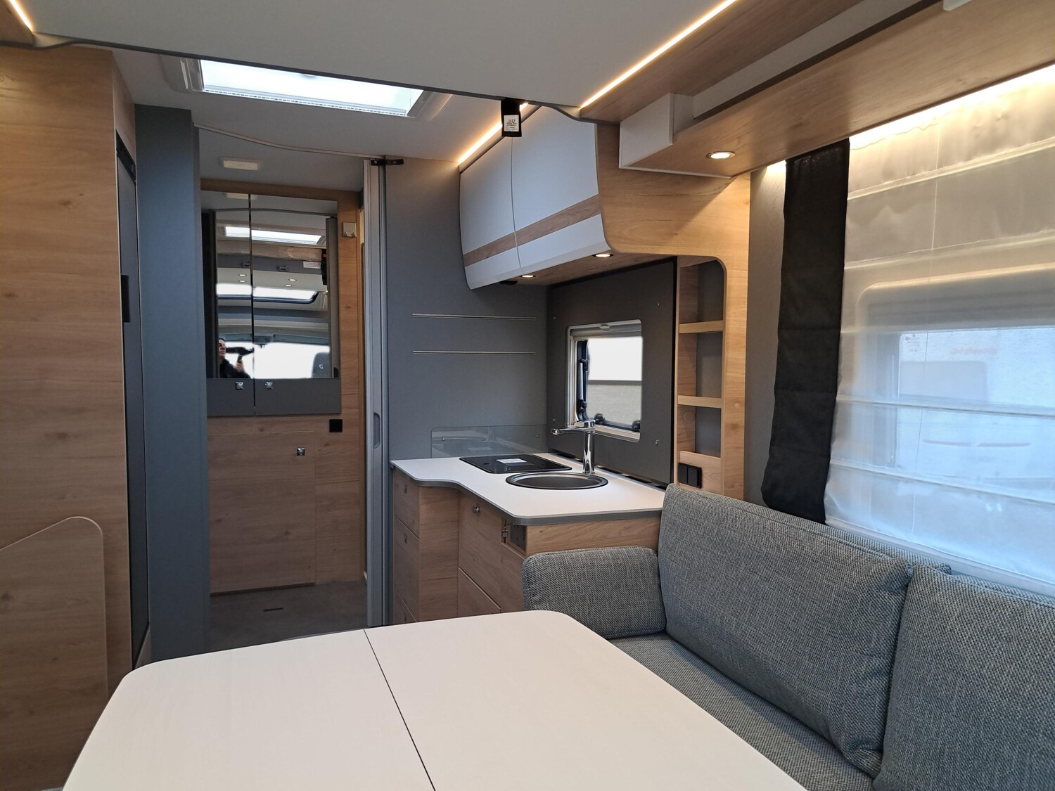 - Family-Paket T 6762 (Ausstellfenster in der T-Haube, Wohnraumtür mit Fenster inkl. Verdunkelung und Zentralverriegelung (inkl. Fahrerhaustür), Verdunklungsjalousien im Fahrerhaus, Panorama-Dachhaube 70 x 50 cm im Wohnraum, Light Moments: Indirekte Ambientebeleuchtung über den Dachstauschränken, Light Moments: Indirekte Wandflächen-Ambientebeleuchtung)