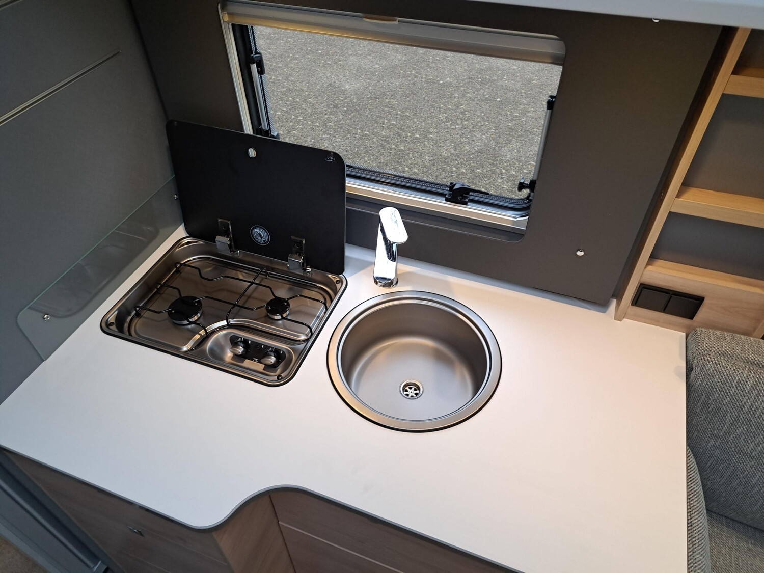 - Doppelverglaste Rahmenfenster mit Verdunklung & Mückenschutz inkl. verkleidete Küchenrückwand
