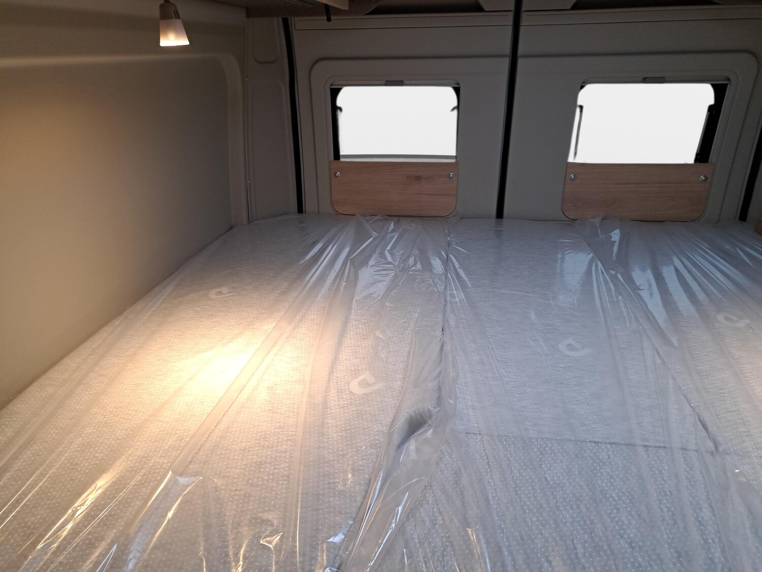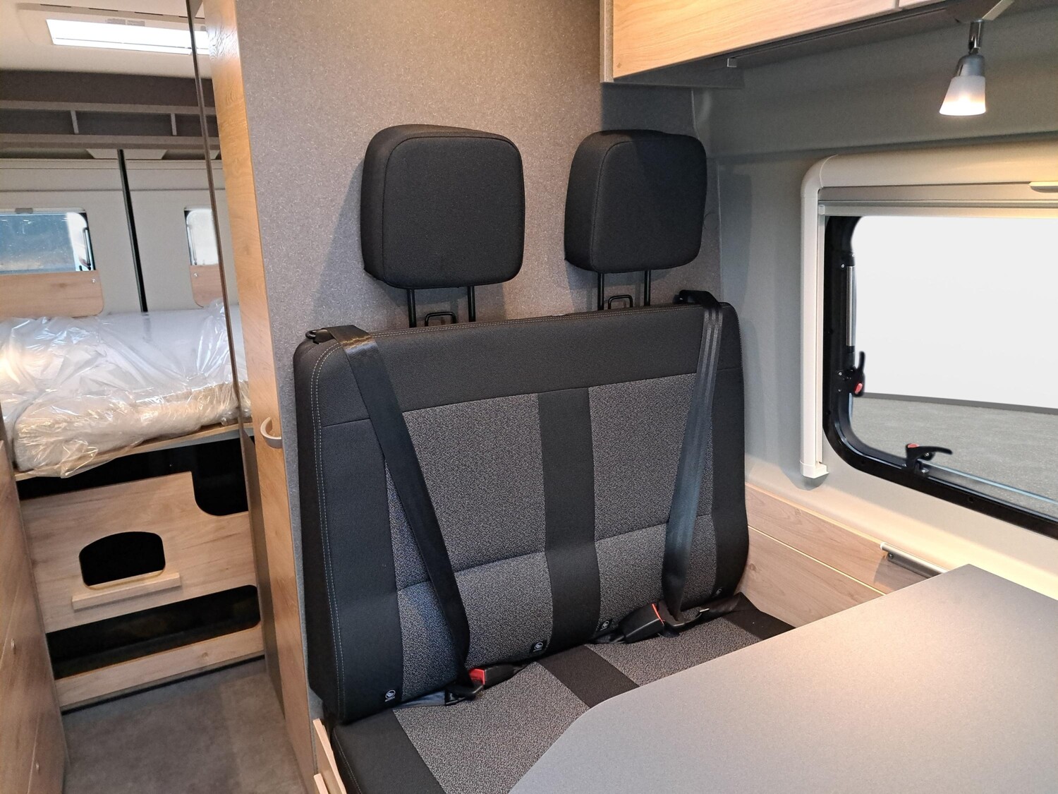 - Fenster mit Fliegenschutz und Verdunklungsrollo im Heck links