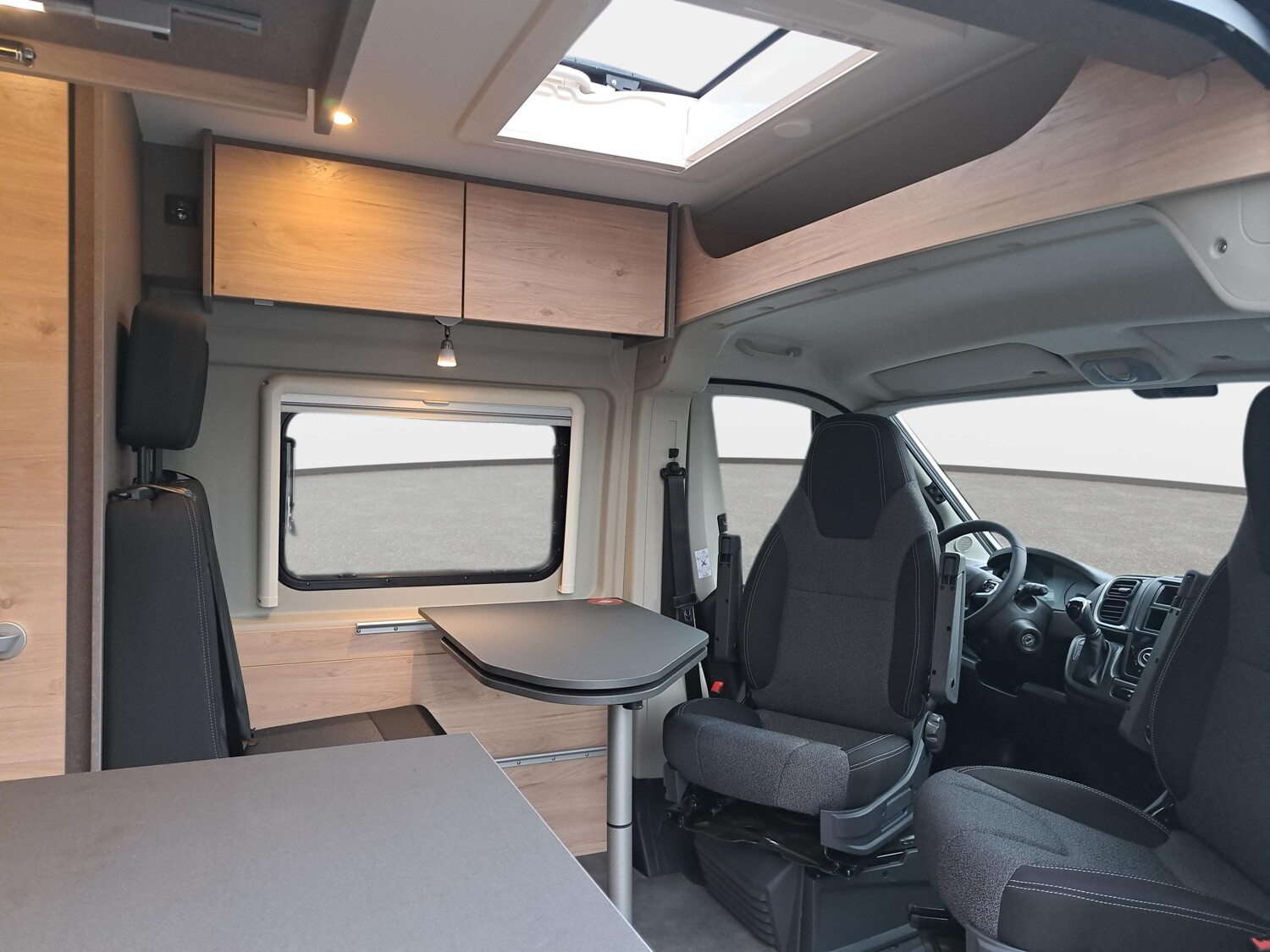 - Active Paket (Fiat) (Alufelge 16 Zoll (Manuelles Getriebe: Felgen Schwarz, Automatik/ Maxi: Felgen Bicolor), Lenkrad und Schaltknauf in Lederausführung, Techno Trim, Tablet Holder, DAB Antenne im Spiegel, Lautsprecher, Lenkradbedienung Radio, Falt-Sichtschutz in Fahrerhaus: Frontscheibe, Falt-Sichtschutz in Fahrerhaus: Seitenscheiben, Fliegengittertür, Elektrische Einstiegsstufe, Fenster im Bad, Dachhaube Midi-Heki 70 x 50 cm über der Sitzgruppe mit Fliegenschutz und Verdunklungsrollo, Drehplatte für Tischerweiterung, Kabelvorbereitung für Rückfahrkamera, Vorbereitung Solarmodule, TV-Vorbereitung 12 V und TV-Steckdose, SAT-Anschluss, LED-Lichtröhre in der Küche, 230-V-Steckdose im Oberschrank Bug links (Sitzgruppe), 12-V-Steckdose im Heckbereich links unten, Zusätzliche Doppel-USB-Steckdose im Bug links)