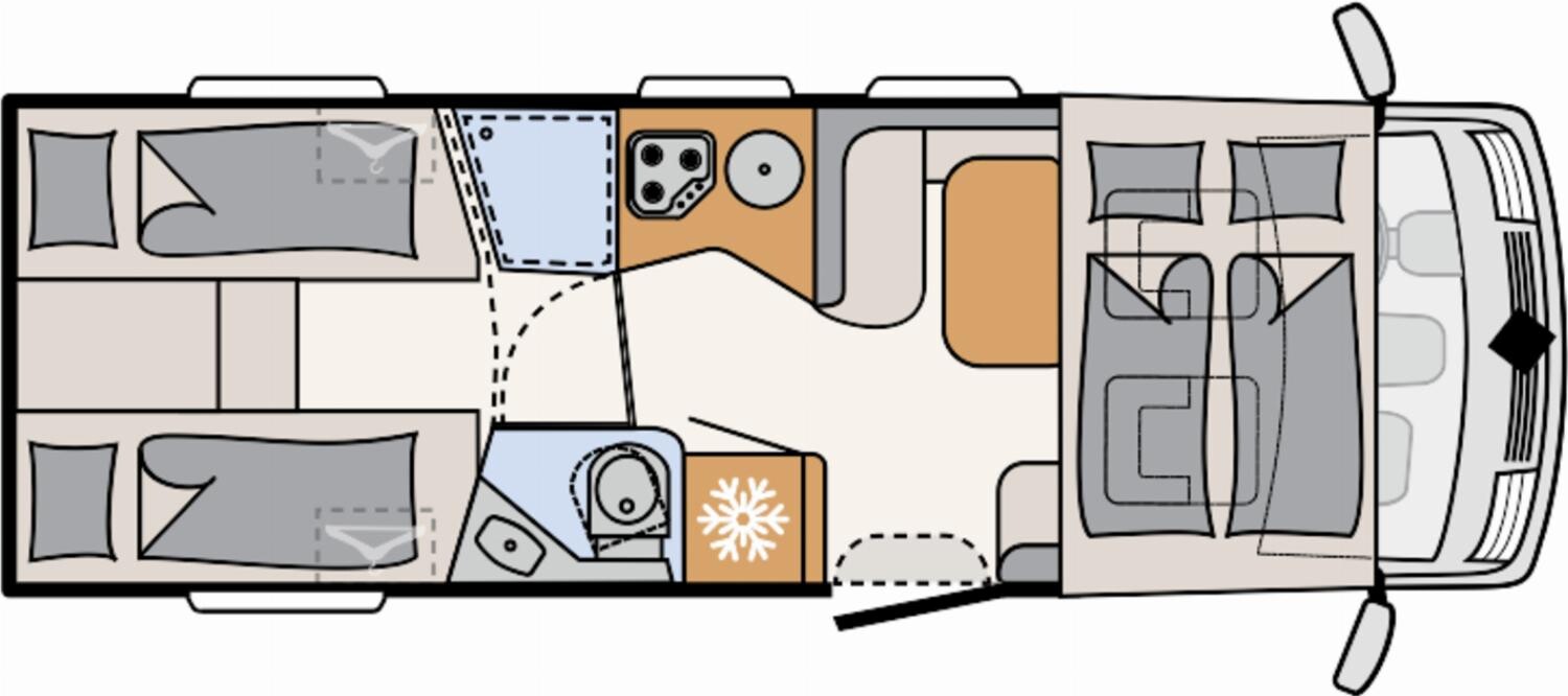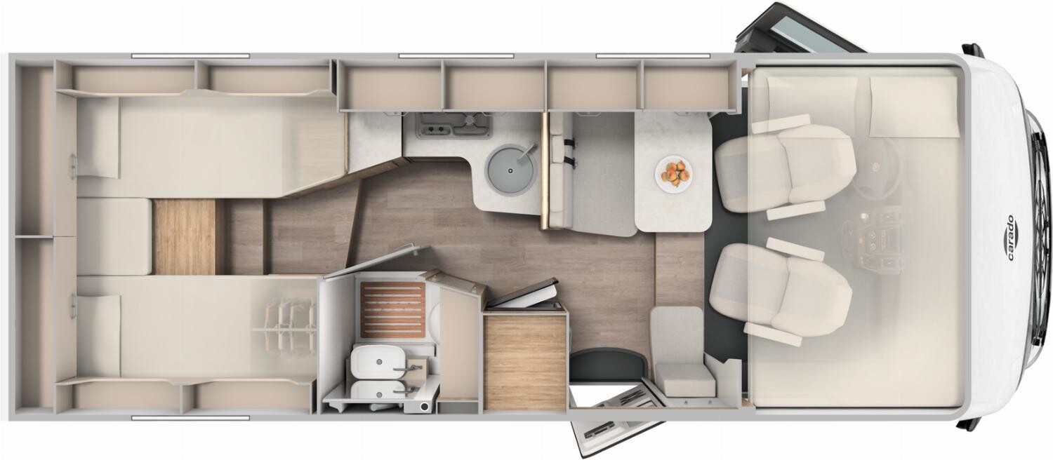 - Großzügigen Wohnraum dank durchgehender Bauweise ohne separates Fahrerhaus